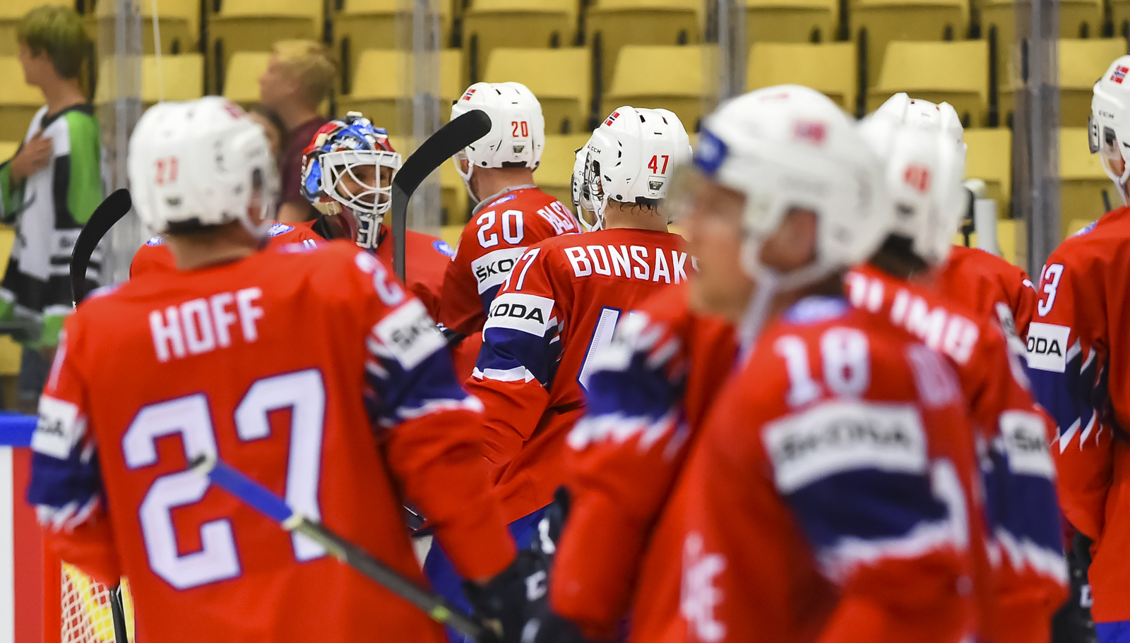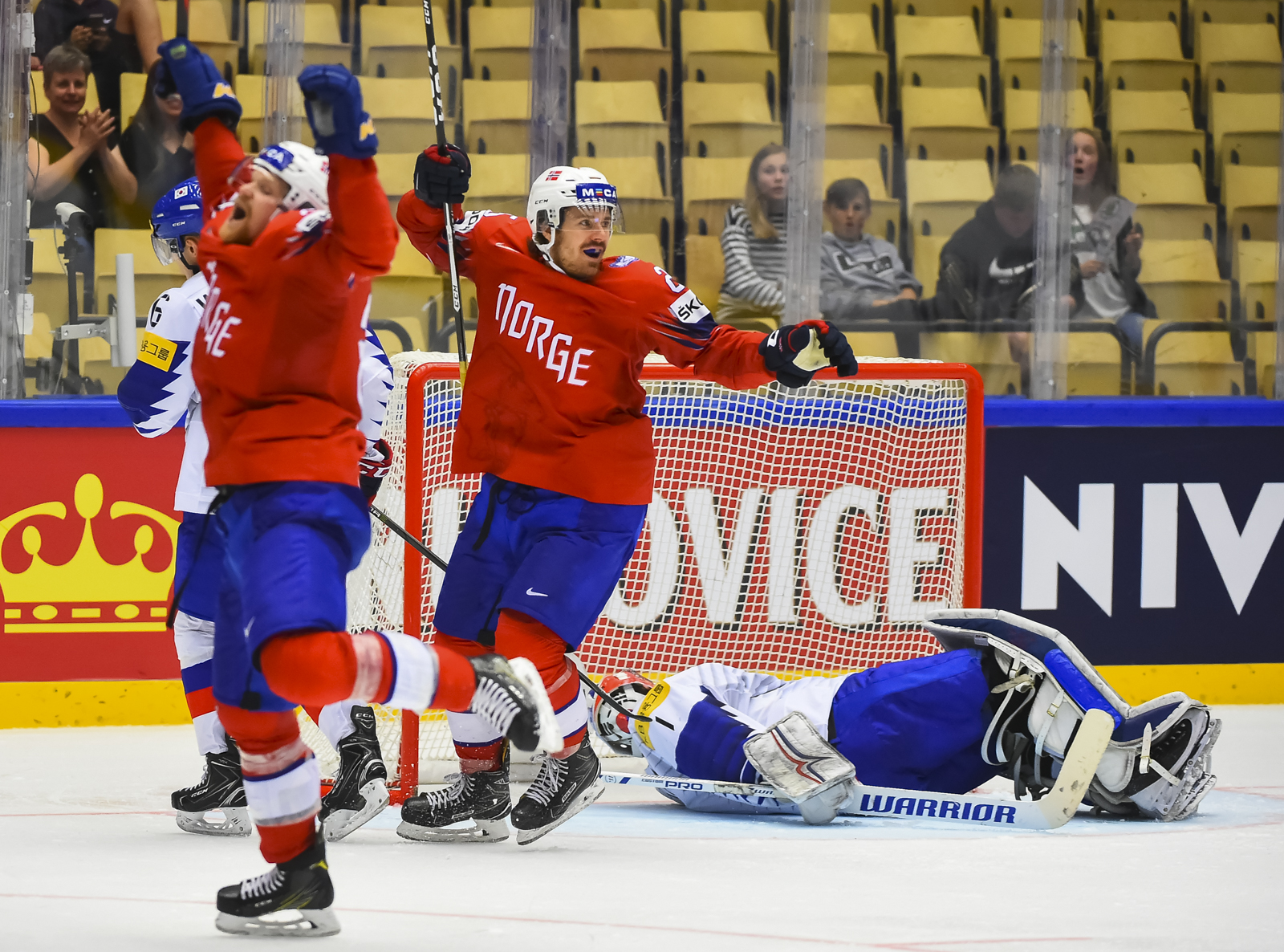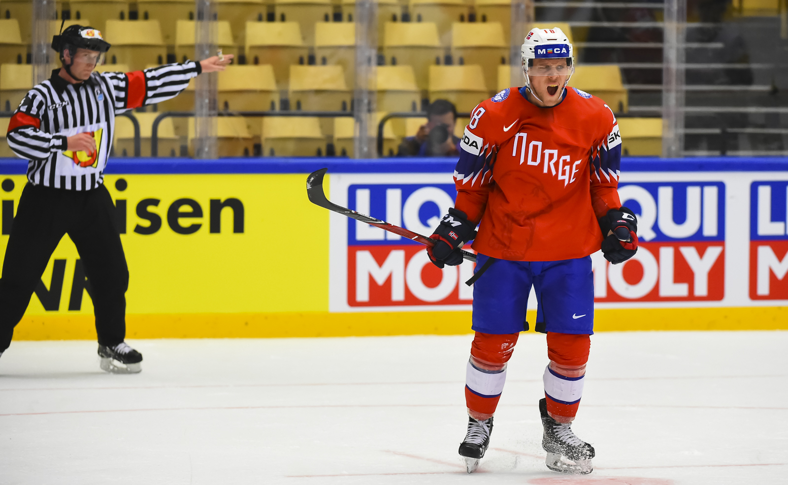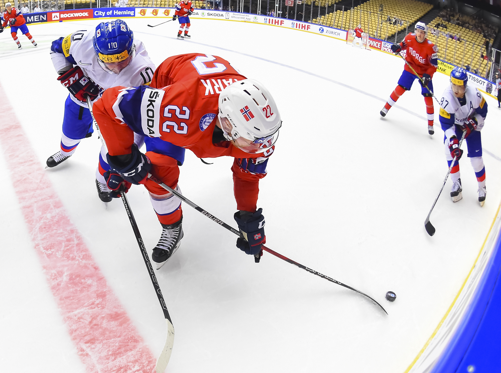 Norge lukkede og slukkede kampen på et powerplay. Kaptajn Jonas Holos scorede målet til 3-0.