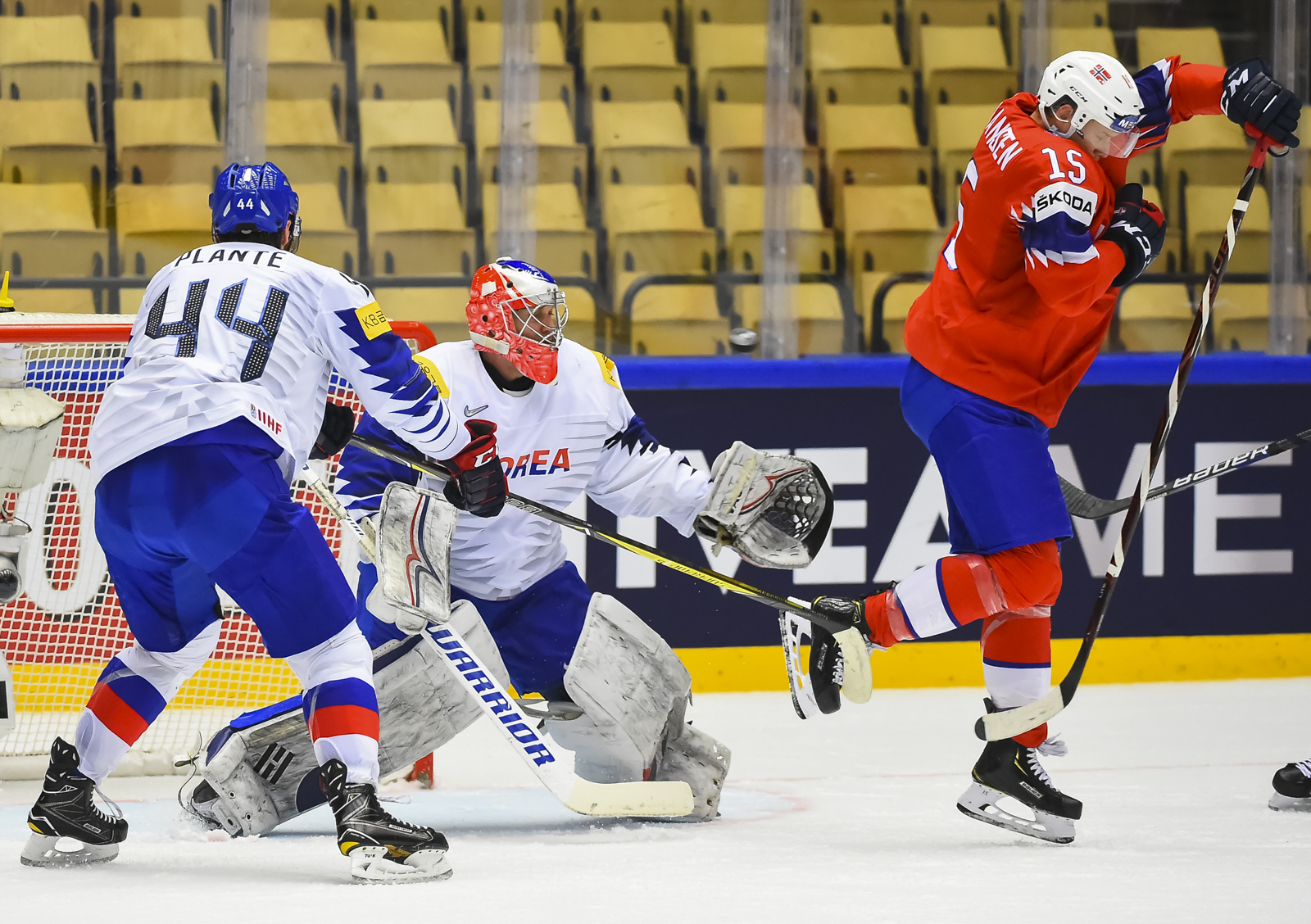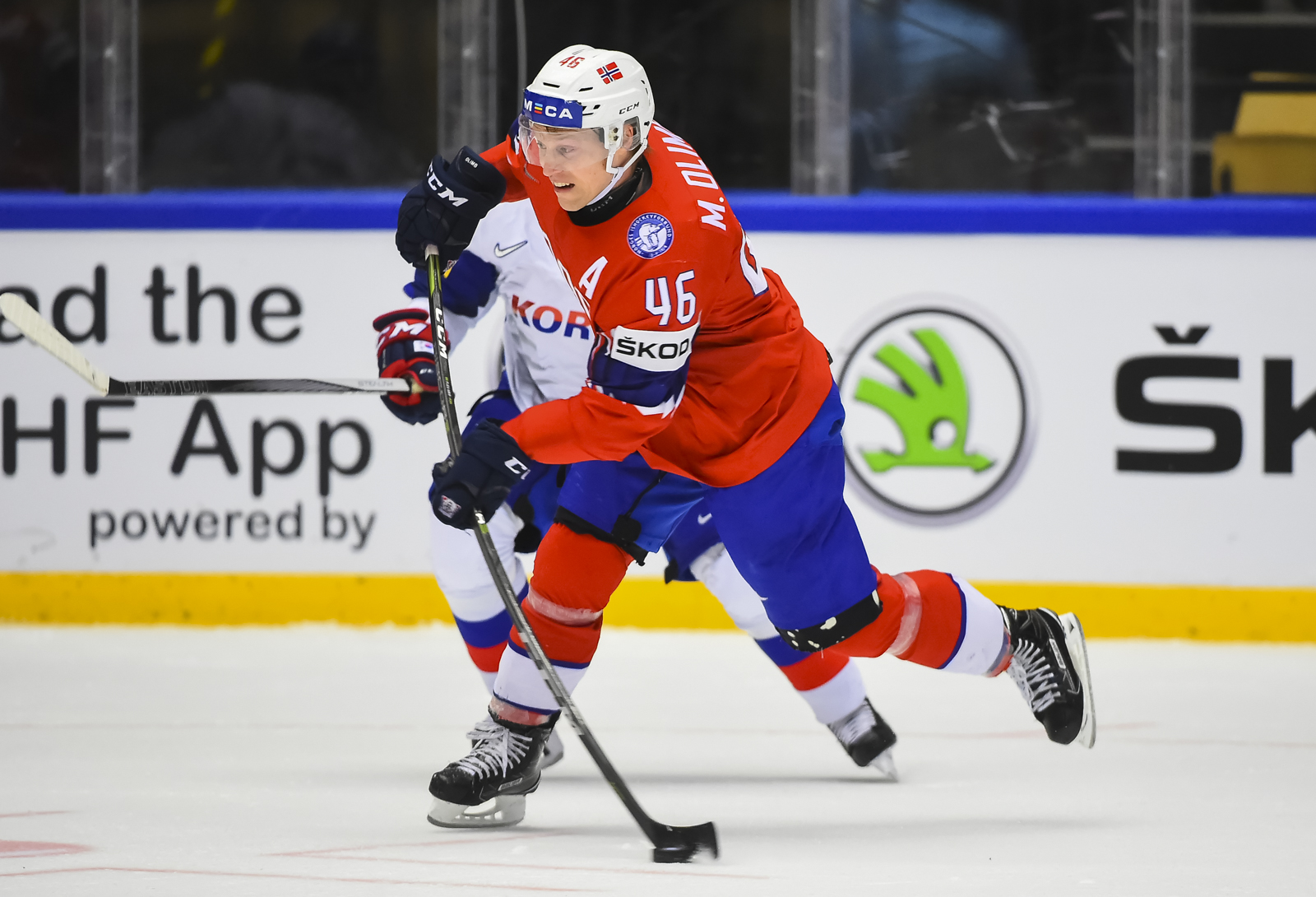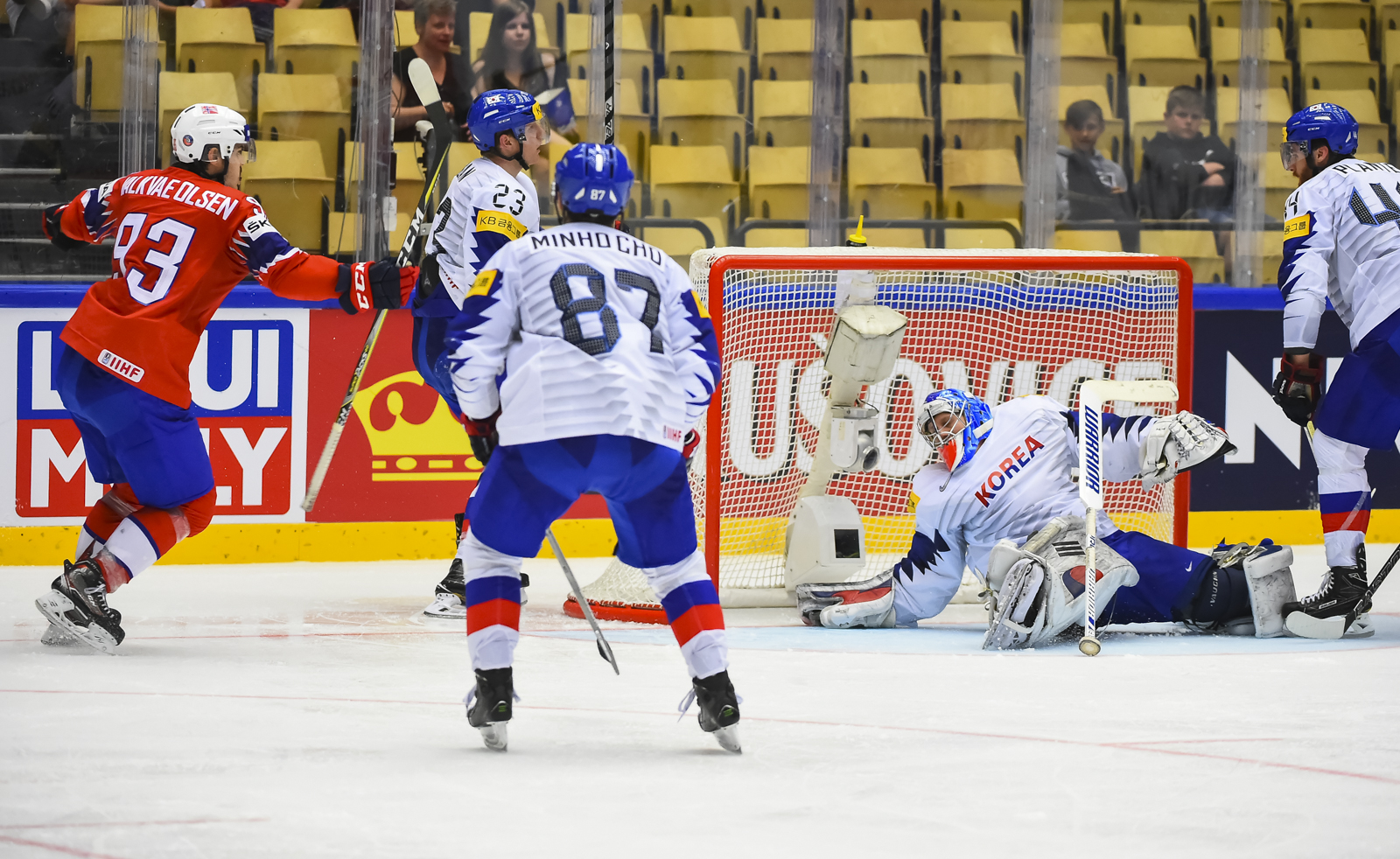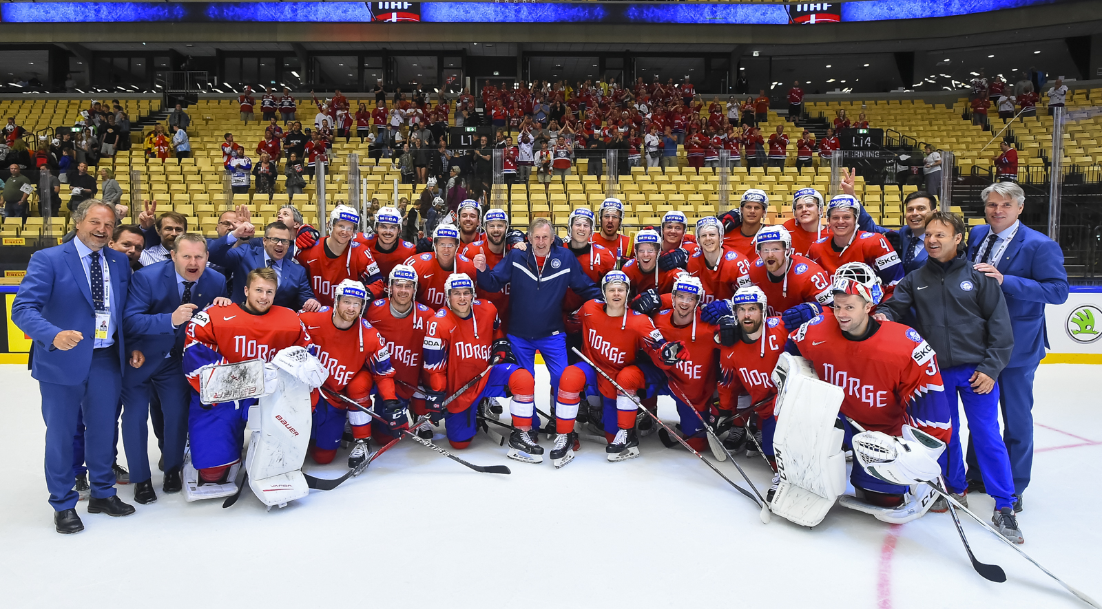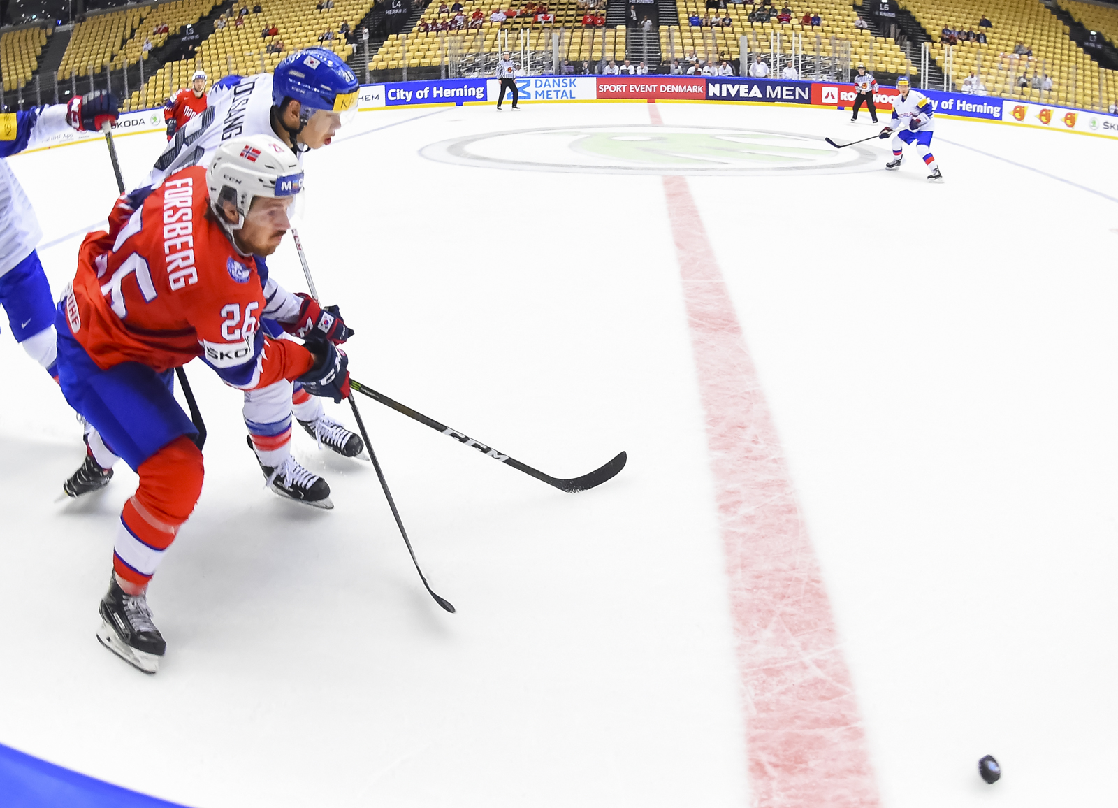 Norge lukkede og slukkede kampen på et powerplay. Kaptajn Jonas Holos scorede målet til 3-0.