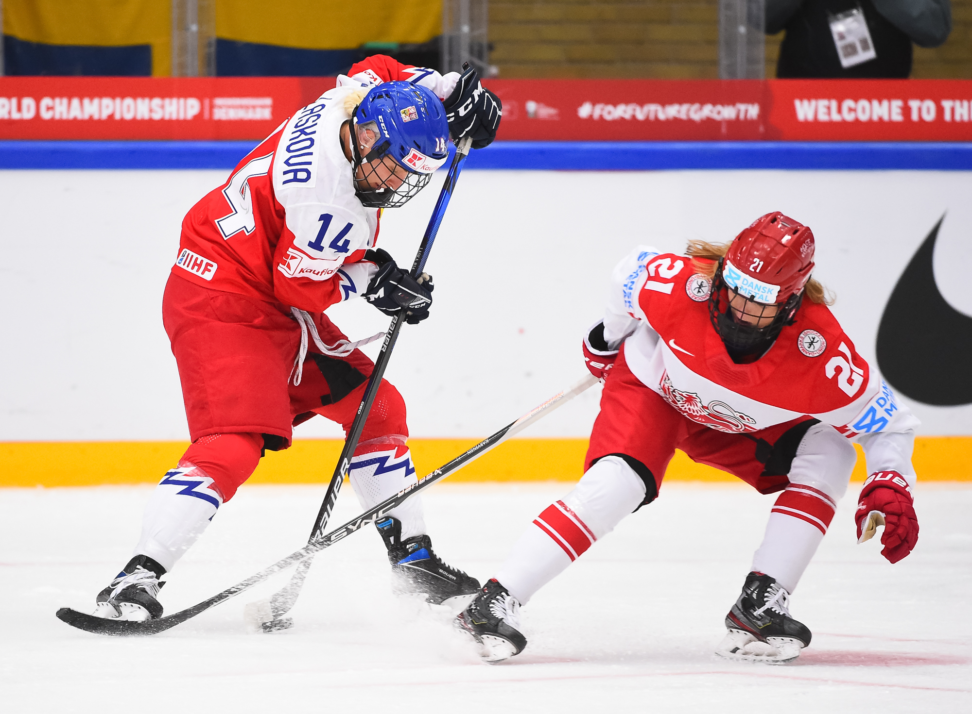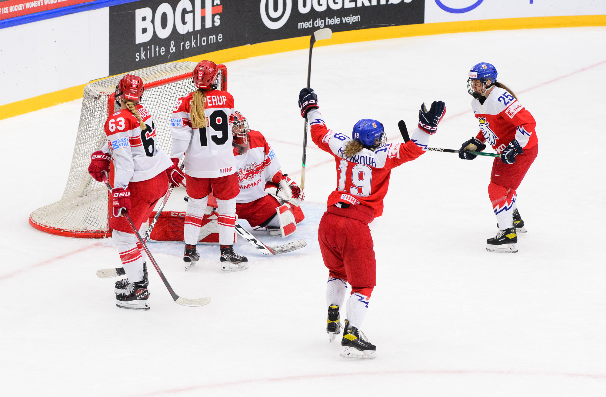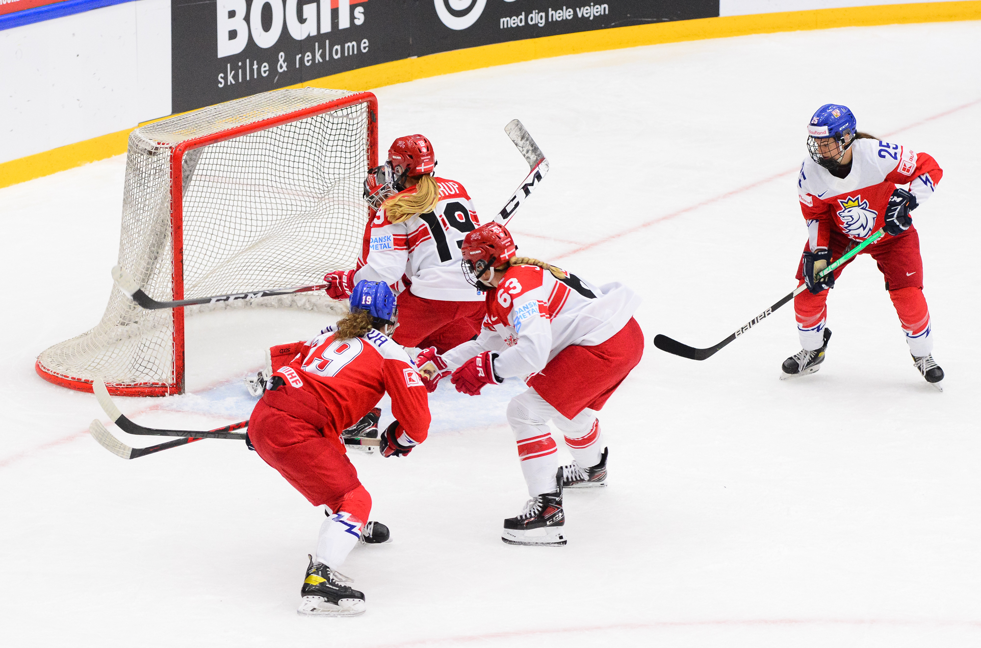 Det startede ellers så godt foran en hal der bakkede solidt op om det danske hold. Det bar frugt da Michelle Weis gentog kunststykket fra OL, og scorede bag den tjekkiske målvogter Klara Peslarova. Fra isens midte sendte Weis en puck med mål, Peslarova mistimede den totalt, og så gyngede Iscenter Nord. 1-0 til Danmark.