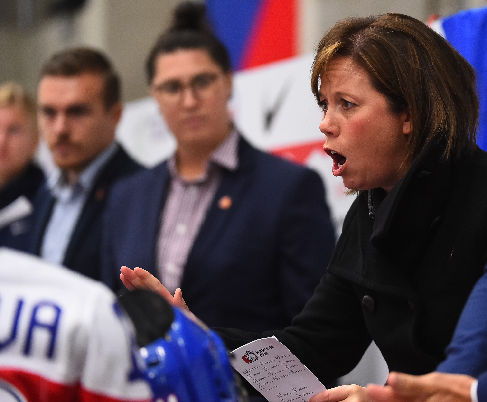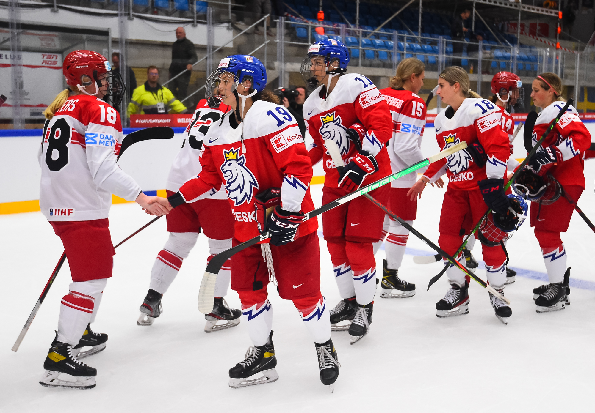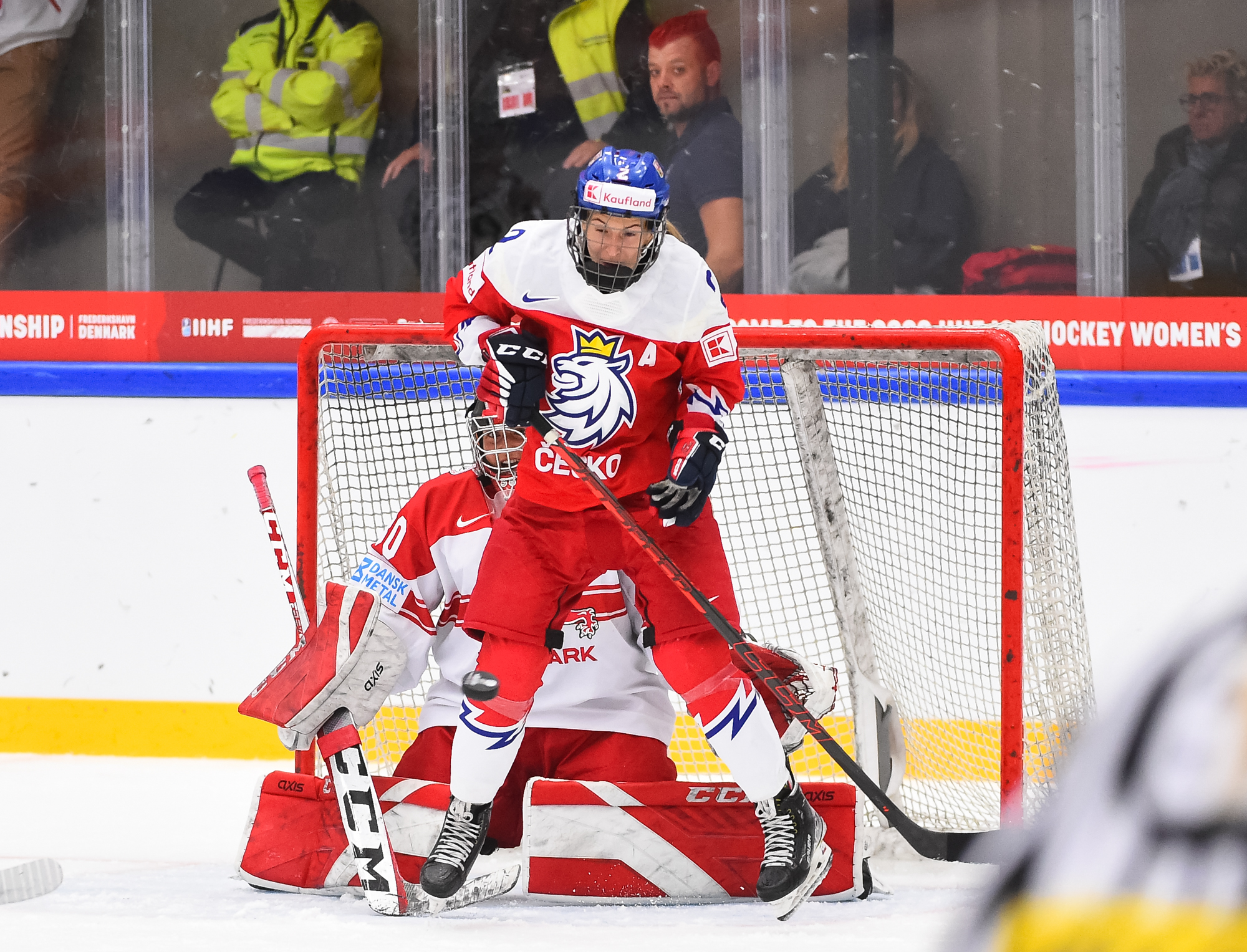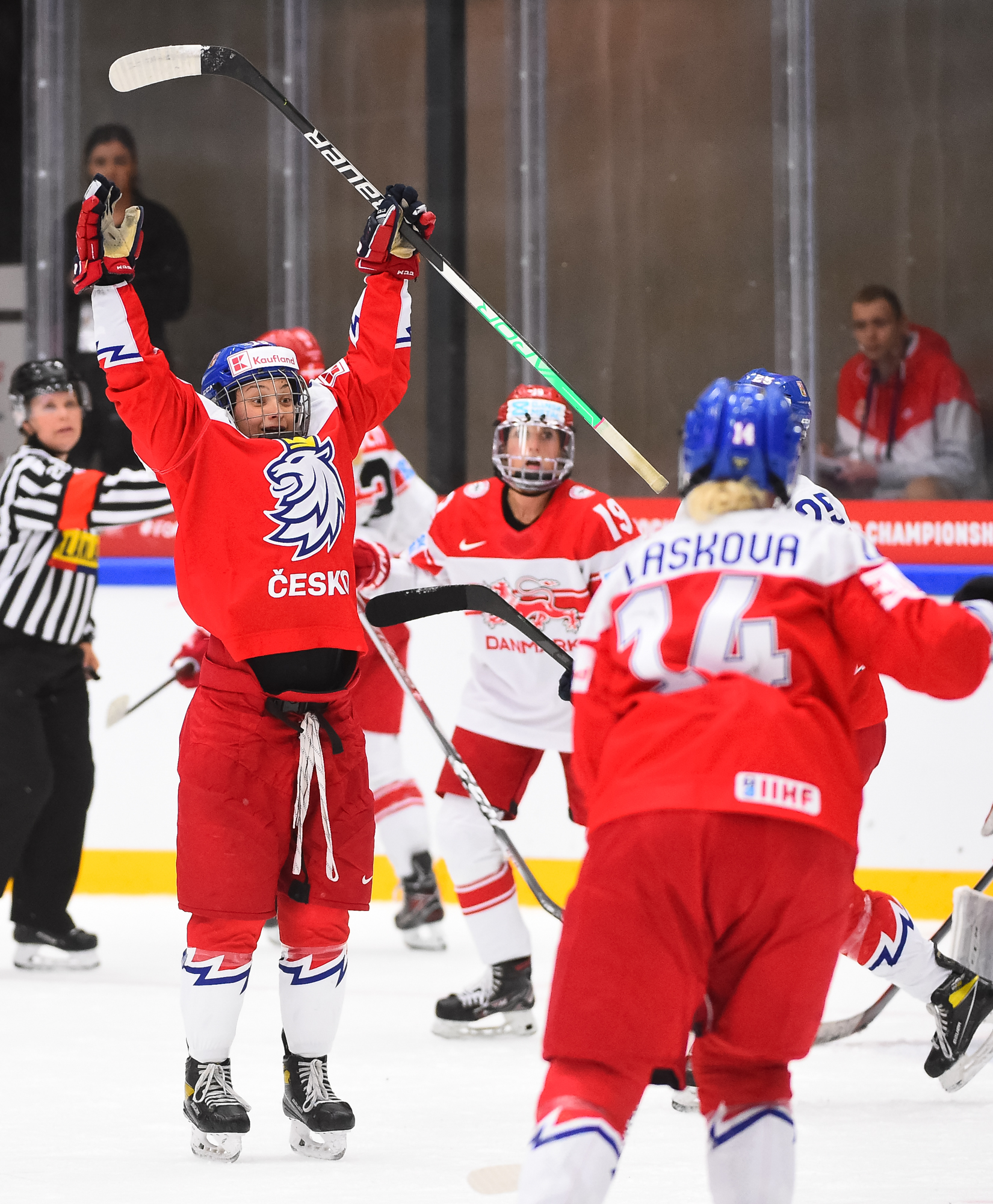 Danmark trak i alt 18 udvisningsminutter, og to af dem udnyttede Katerina Mrazova til at danse igennem den danske defensiv, og score bag Lisa Jensen der var blevet valgt til opgøret. Jensen blev kampen igennem udsat for 49 skud mod mål. 1-1 efter første periode.