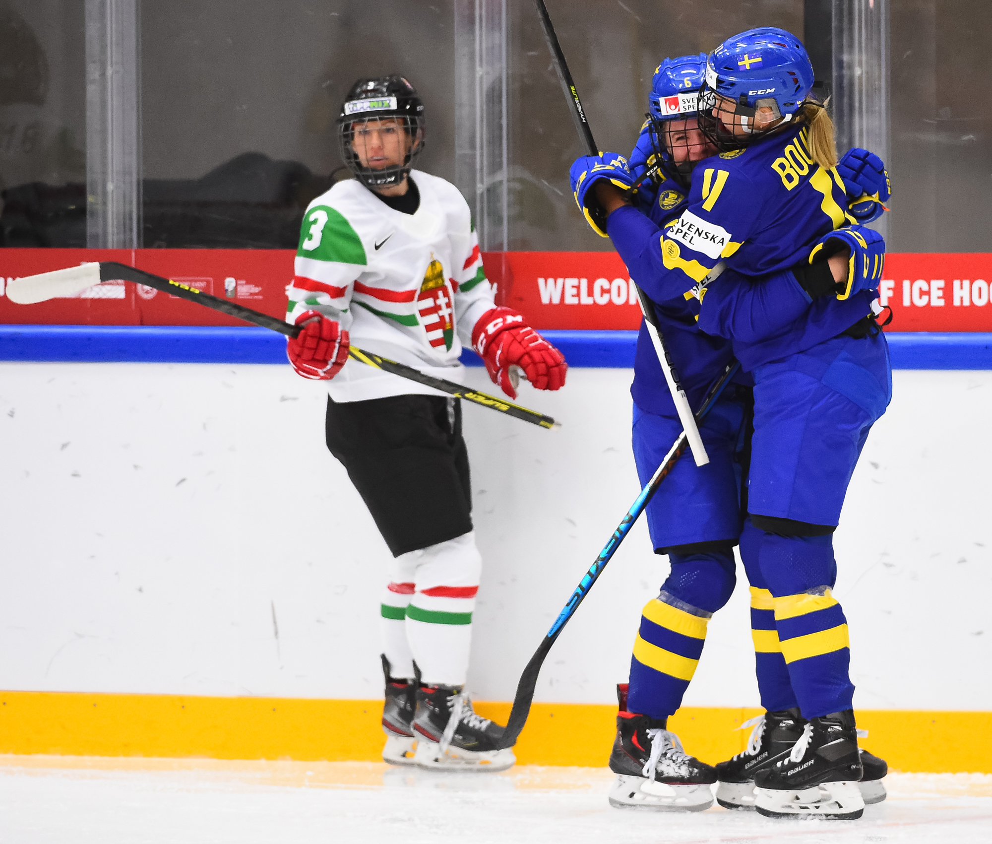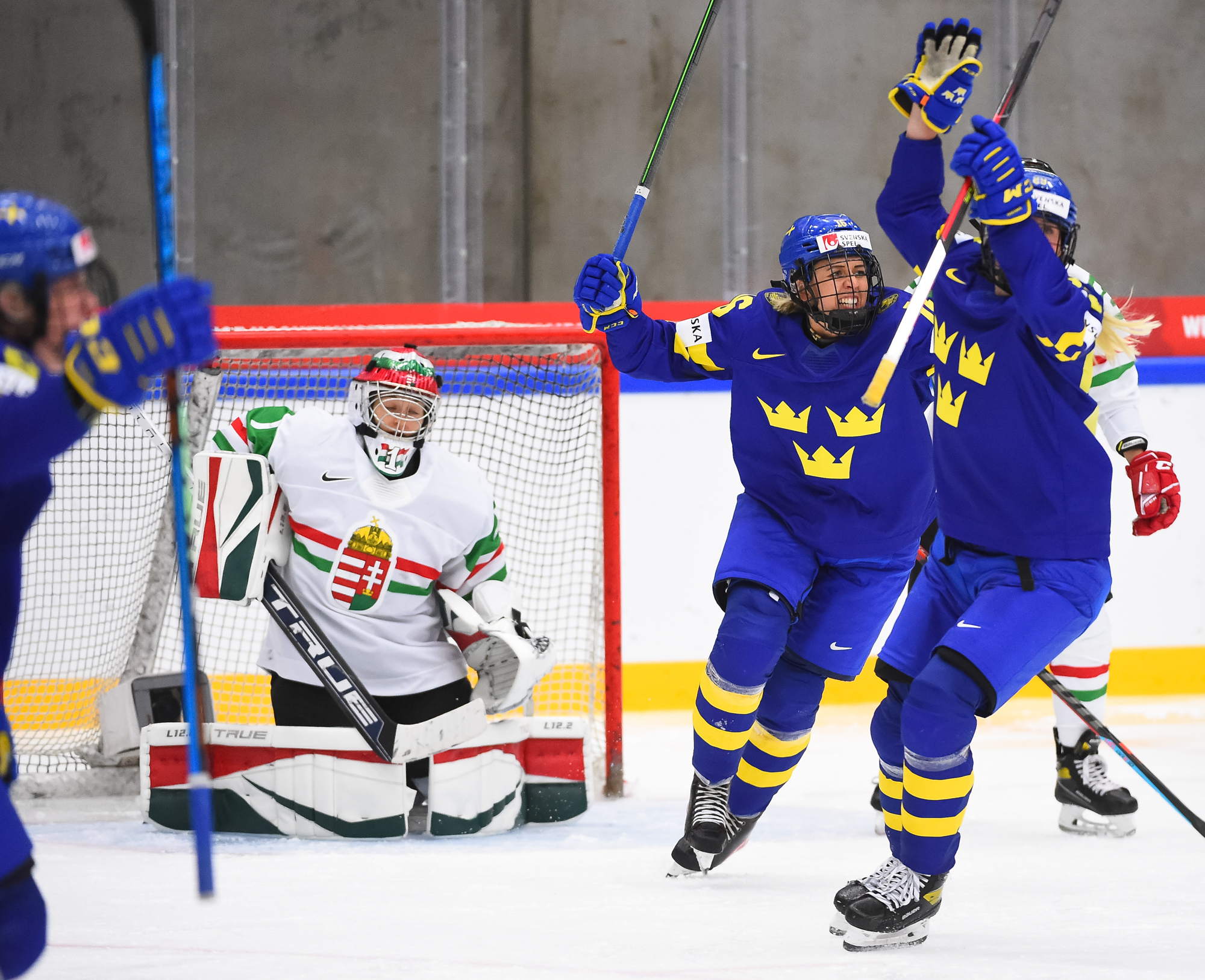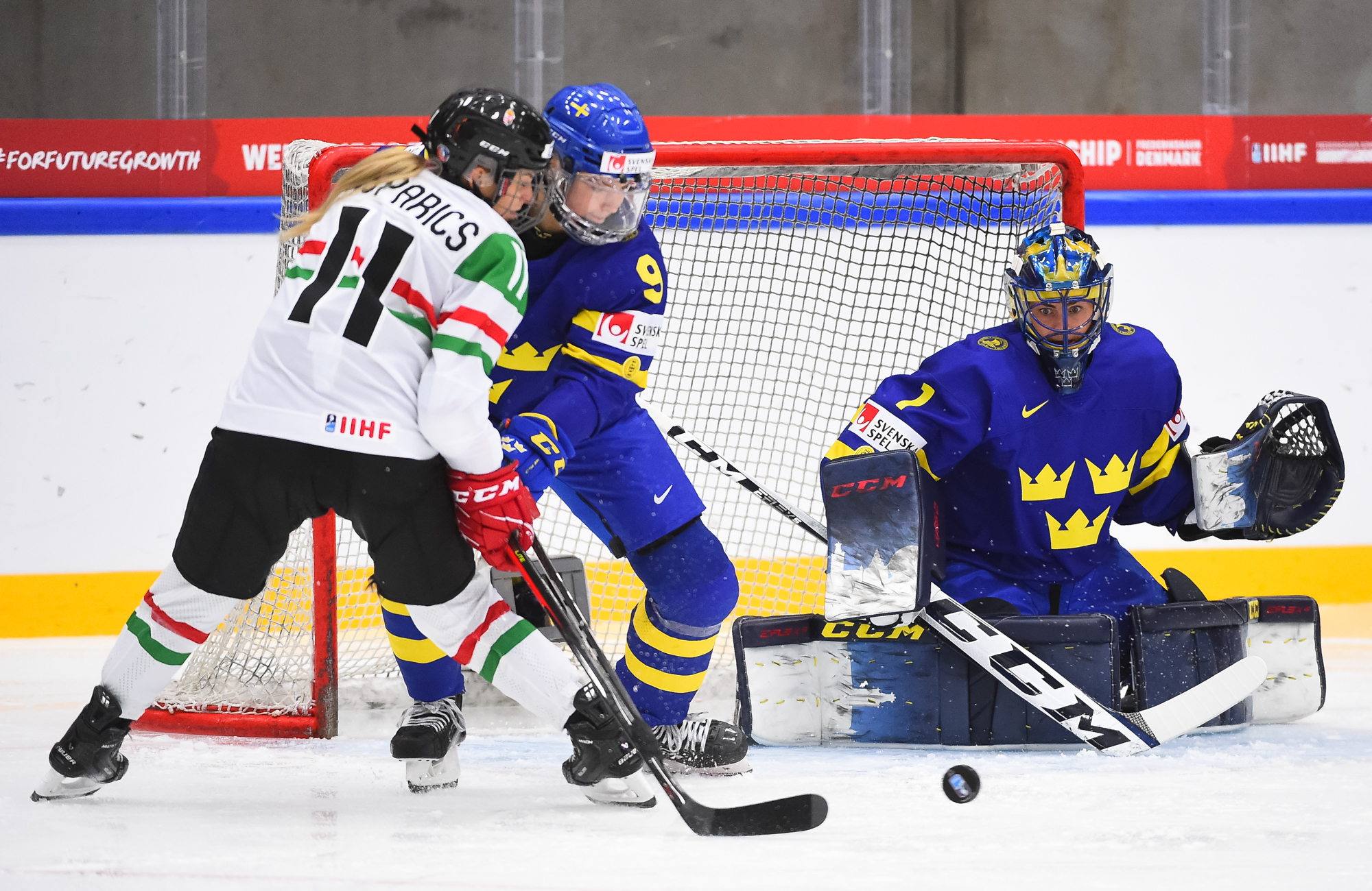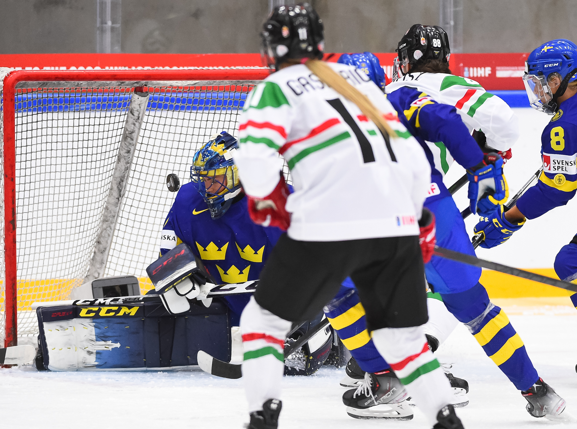 Sverige havde foretrukket Ida Boman til kampen og hun fik en travl aften med 40 redninger på 42 skud fra Ungarn. Helten i første periode for Sverige var Mira Jungaker. Den 17-årige back lavede sin første VM scoring, i en situation hvor Aniko Nemeth i Ungarns mål så lidt uheldig ud. Jungaker havde en fin aften, og lavede også en assist på Linnea Johanssons scoring i 2. periode.