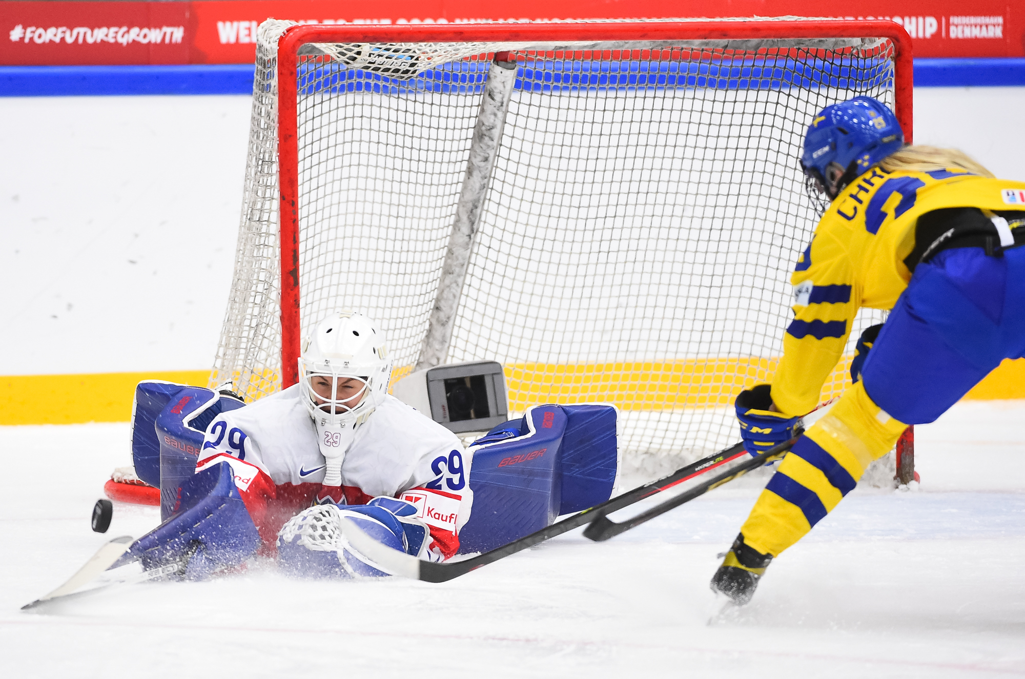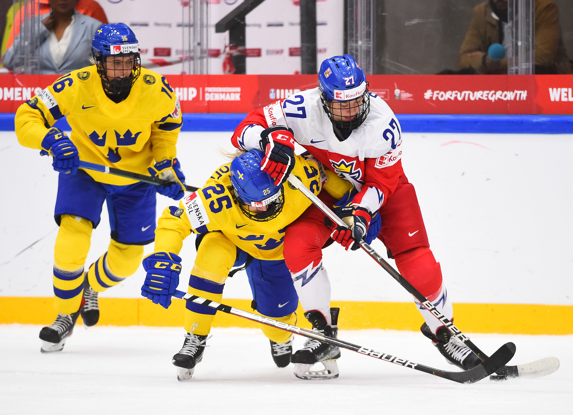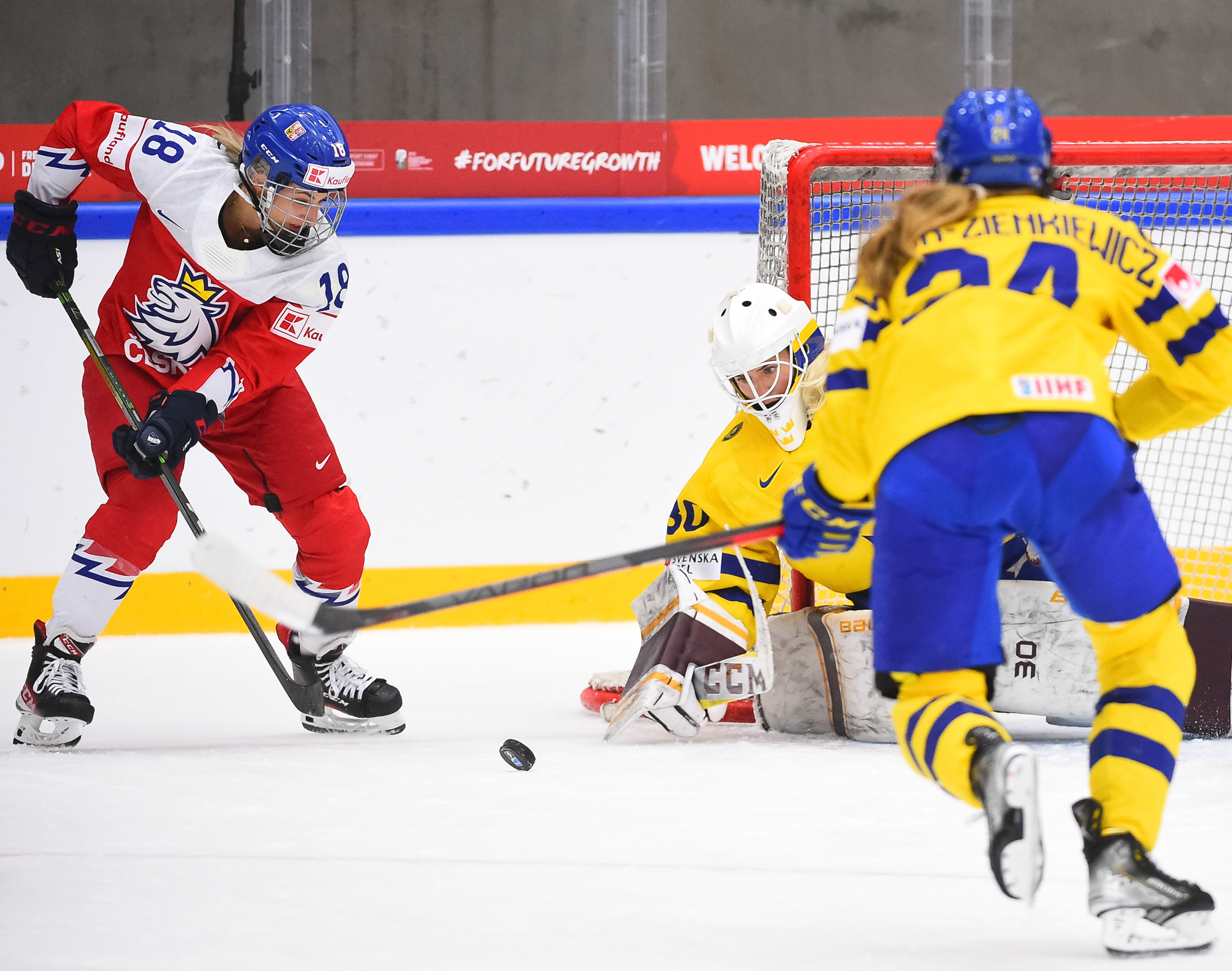 3-0 stod der på tavlen efter opgøret mellem de to bedste mandskaber i gruppe B. Tjekkiet afgjorde reelt opgøret i midten af 3. periode, med to scoringer på under tre minutter. Det skal dog med at Sverige havde trukket målvogter Emma Söderberg ud for at satse alt på en sejr i regulær tid.