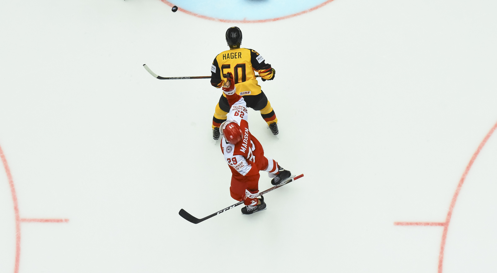 A second Danish power play in the middle period was highlighted by quick puck movement and shots on goal. Denmark charged the net again as Jesper Jensen had two chances to get his second goal of the game. Then as time was winding down on the penalty, Nichlas Hardt beat two German defenders to the puck sending a blind backhand pass in front. Frederik Storm the puck and scored an uncontested goal.