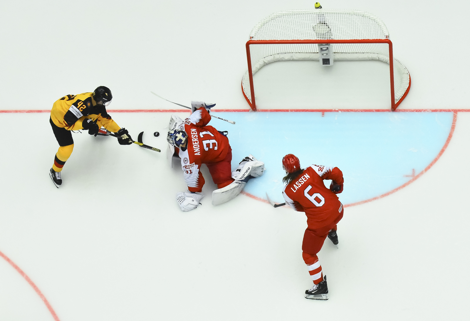 Early in the period, German goaltender Tino Pielmeier misplayed a puck behind his net that allowed Denmark to gain control. Julian Jakobson was able to get off a shot but Pielmeier redeemed himself by making a clutch save.On the other end, Frederik Andersen was holding his own. Frederik Tiffels raced in and sent a shot on net that struck Anderson’s shoulder and over the net.