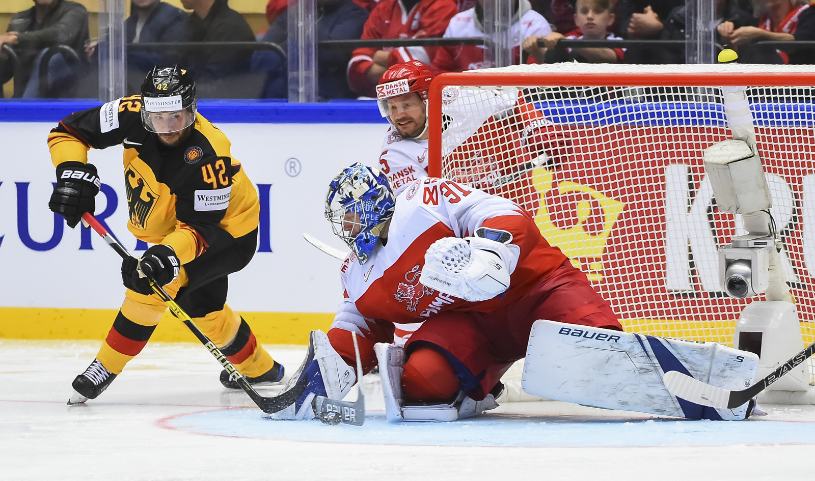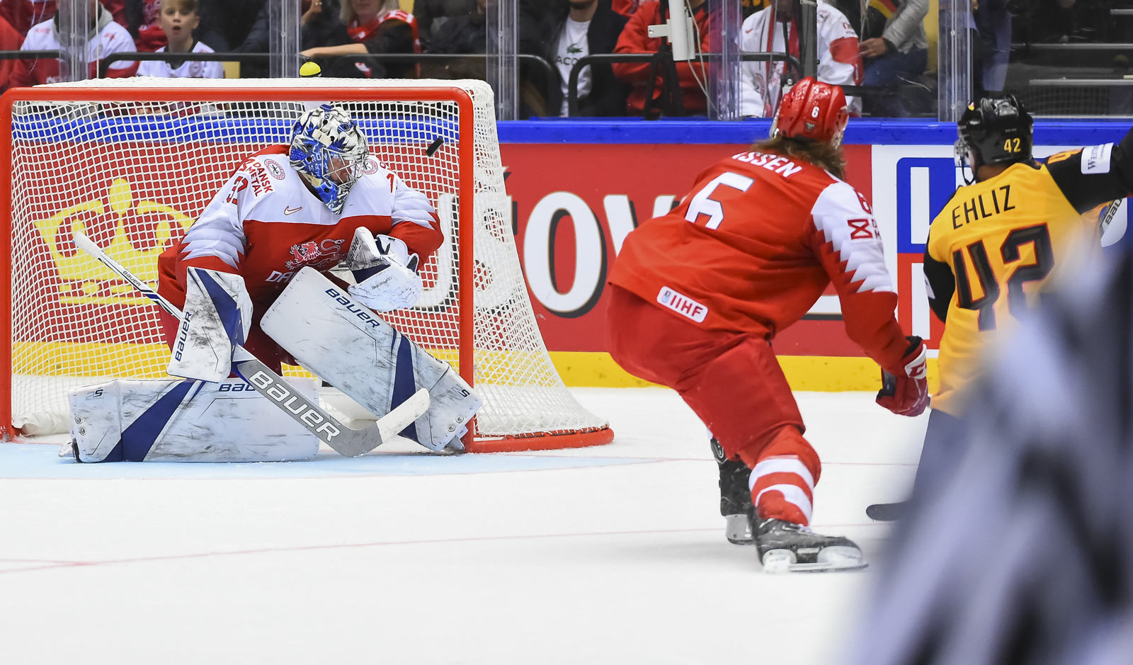 For Denmark tonight marks its first ever IIHF World Championship game on home ice and against a formidable opponent in the 2018 Winter Olympic silver medalist, Germany. On this historic occasion, Denmark began its World Championship quest in front of a capacity crowd that was very supportive of everything their national team was doing on the ice.