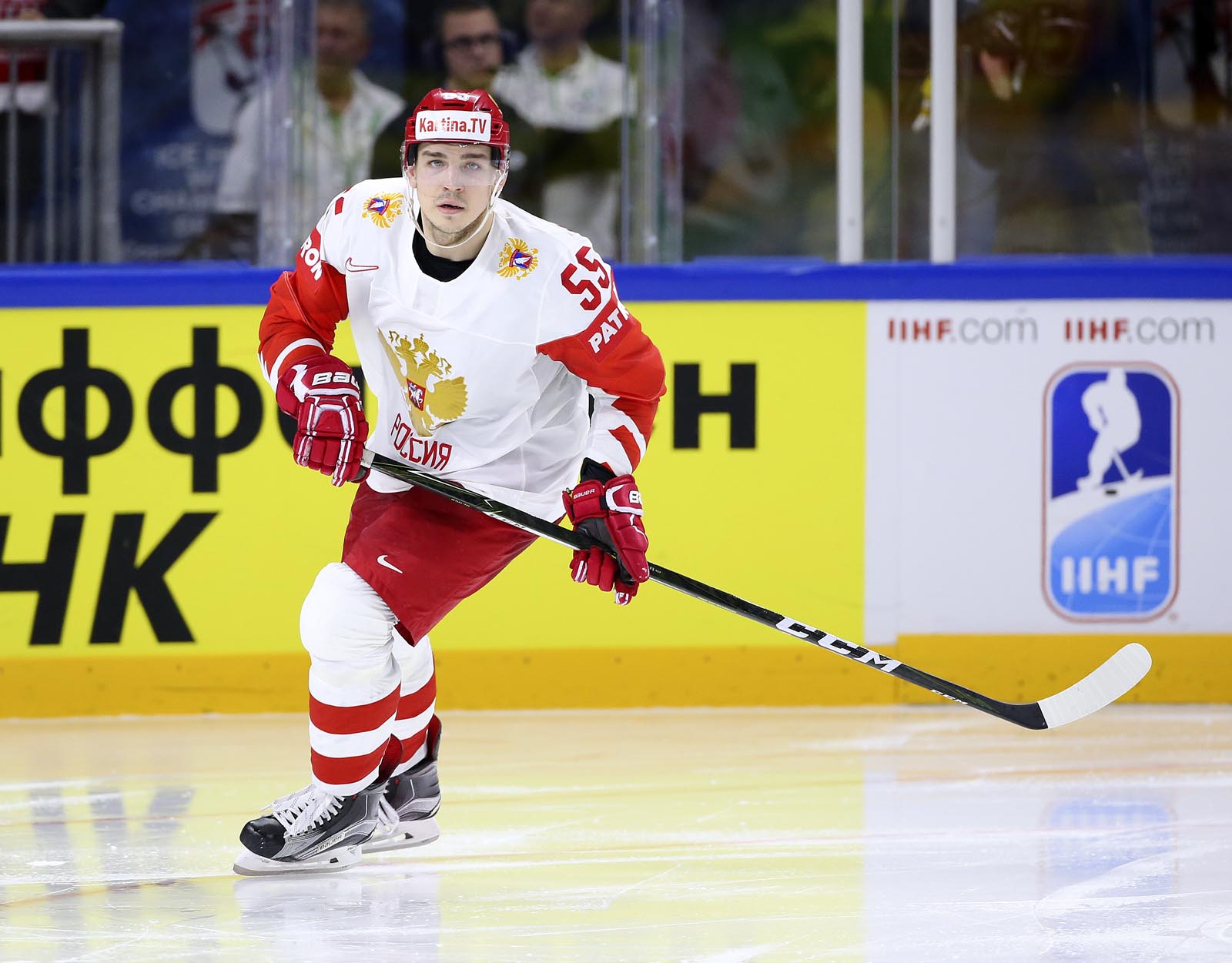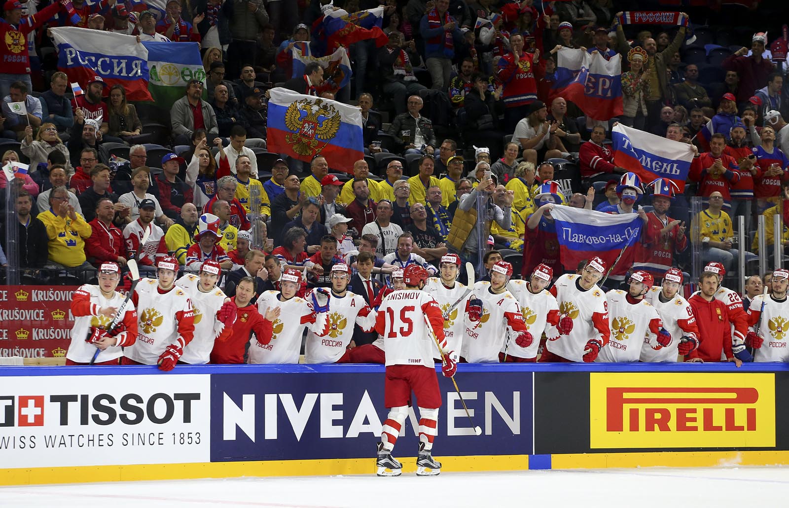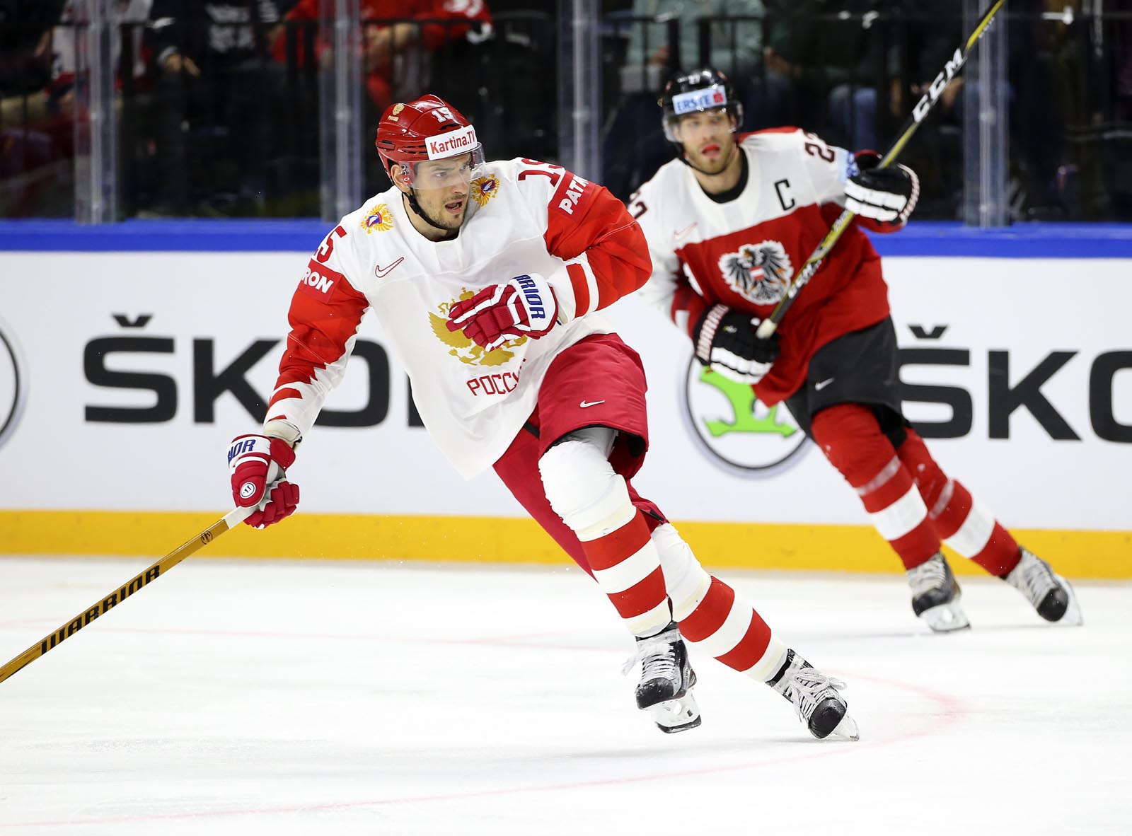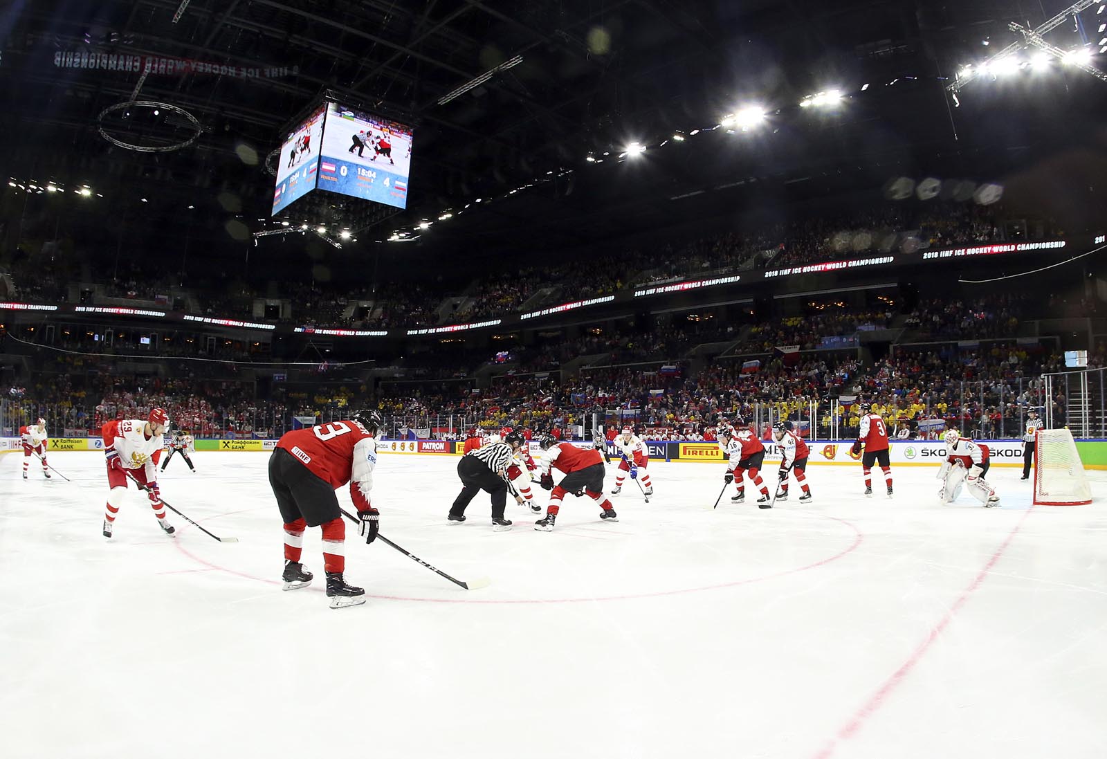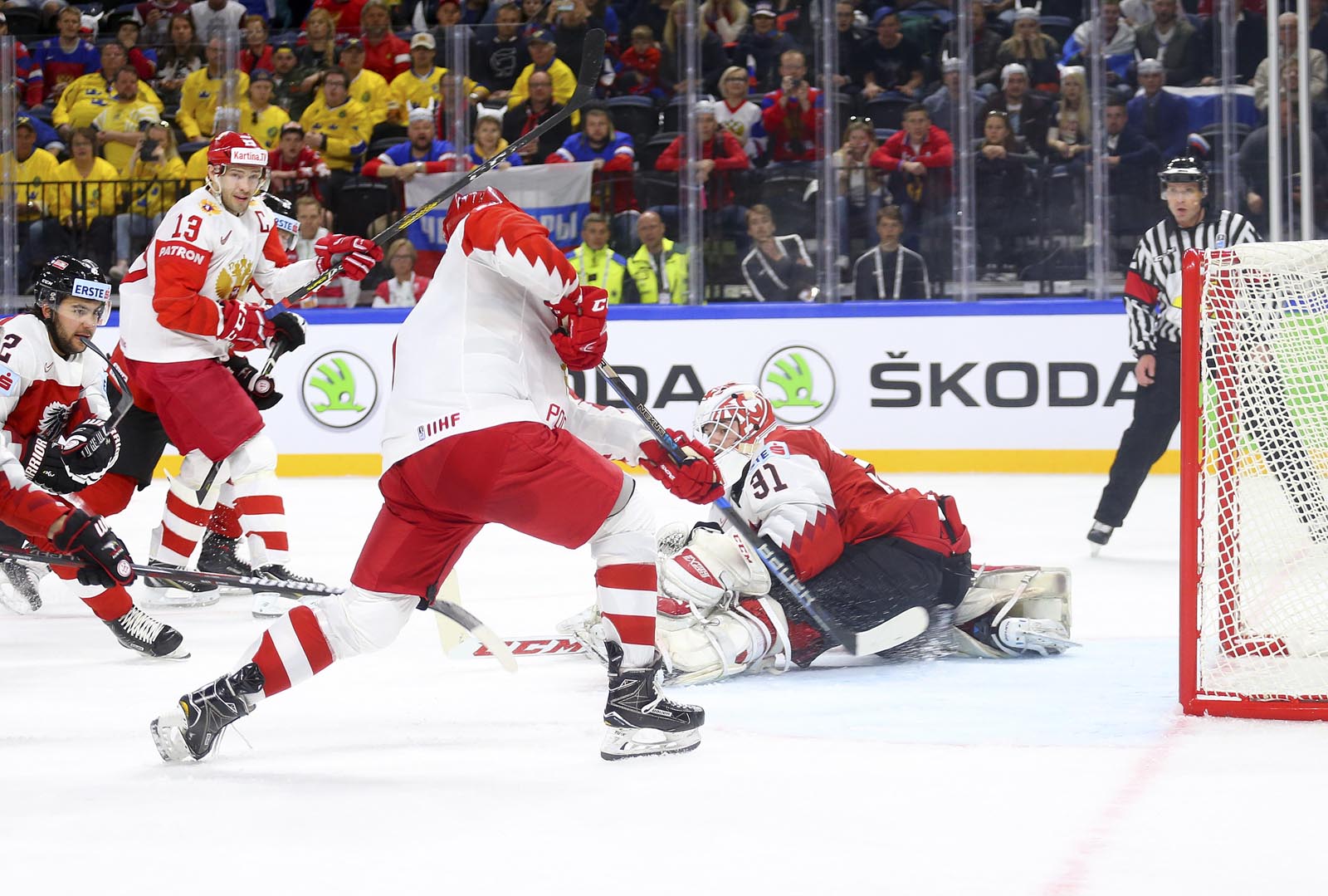 Against the French, Russia opened the scoring midway through the opening frame and quickly jumped into a 3-0 lead. Here, recent history repeated itself. Anisimov, one of just two players to skate for Russia when the countries last met in 2013, soon added a second when he gobbled up the rebound after Pavel Buchnevich got up close with Madlener. Now the Russians could relax into their natural game: a fine passage of tic-tac-toe drew an appreciative reaction from the FHR’s vice-president Roman Rotenberg as the bemused Austrians looked on.