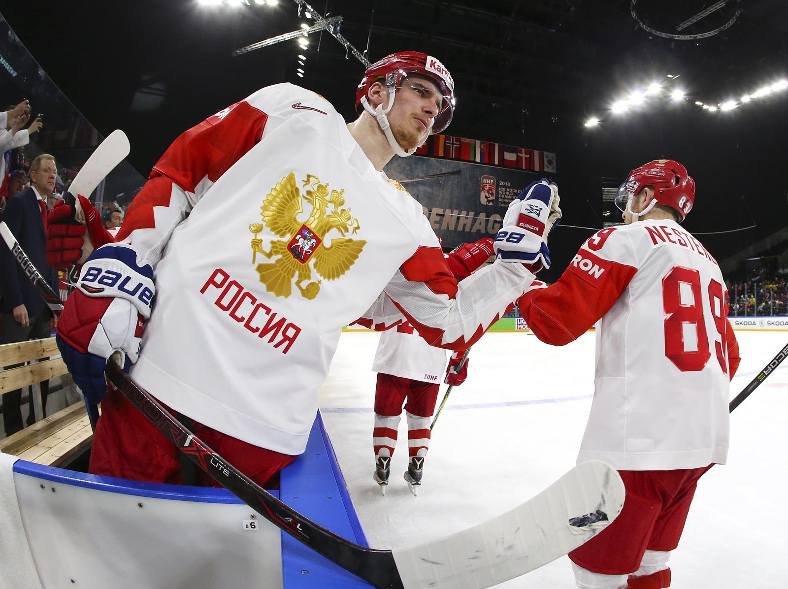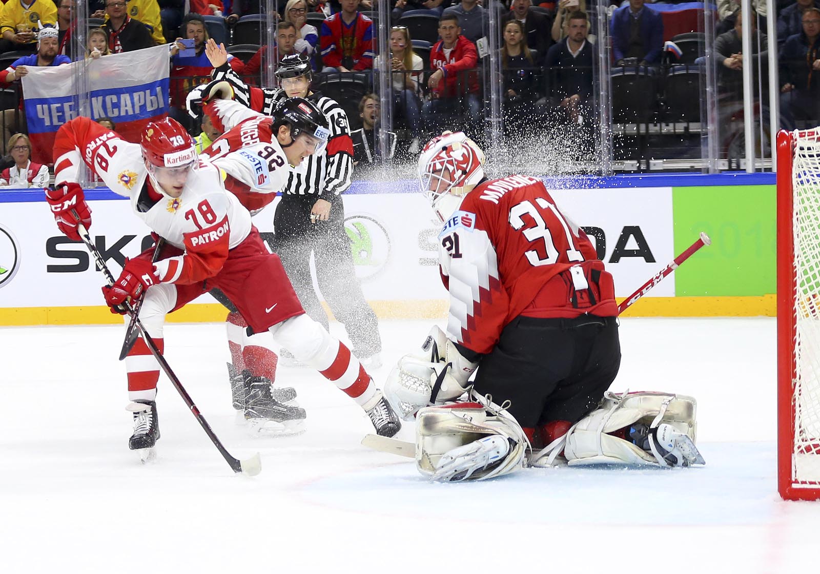 Russia replaced goalie Koshechkin at the second intermission – the Metallurg Magnitogorsk netminder has now gone 100 minutes without allowing a goal here in Copenhagen – and gave SKA’s Igor Shestyorkin a taste of action. Shestyorkin, Russia’s unused third choice goalie at the Olympics in February, saw his first World Championship action after making the roster in the previous two tournaments.