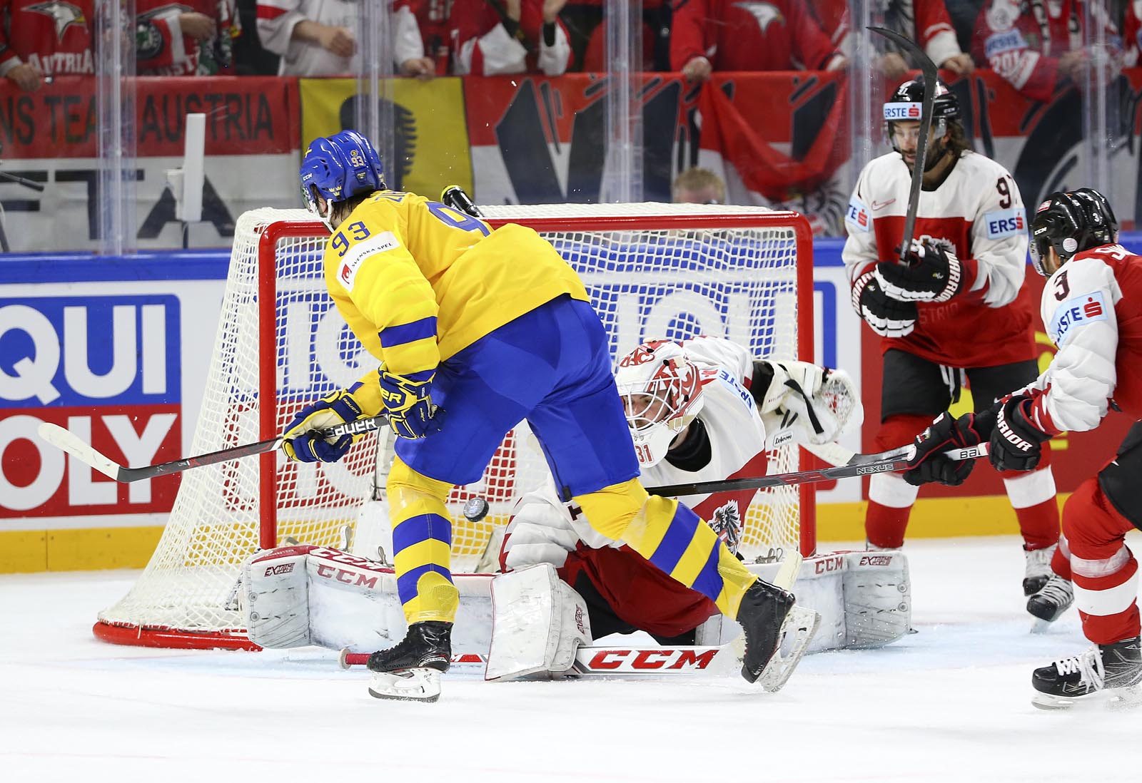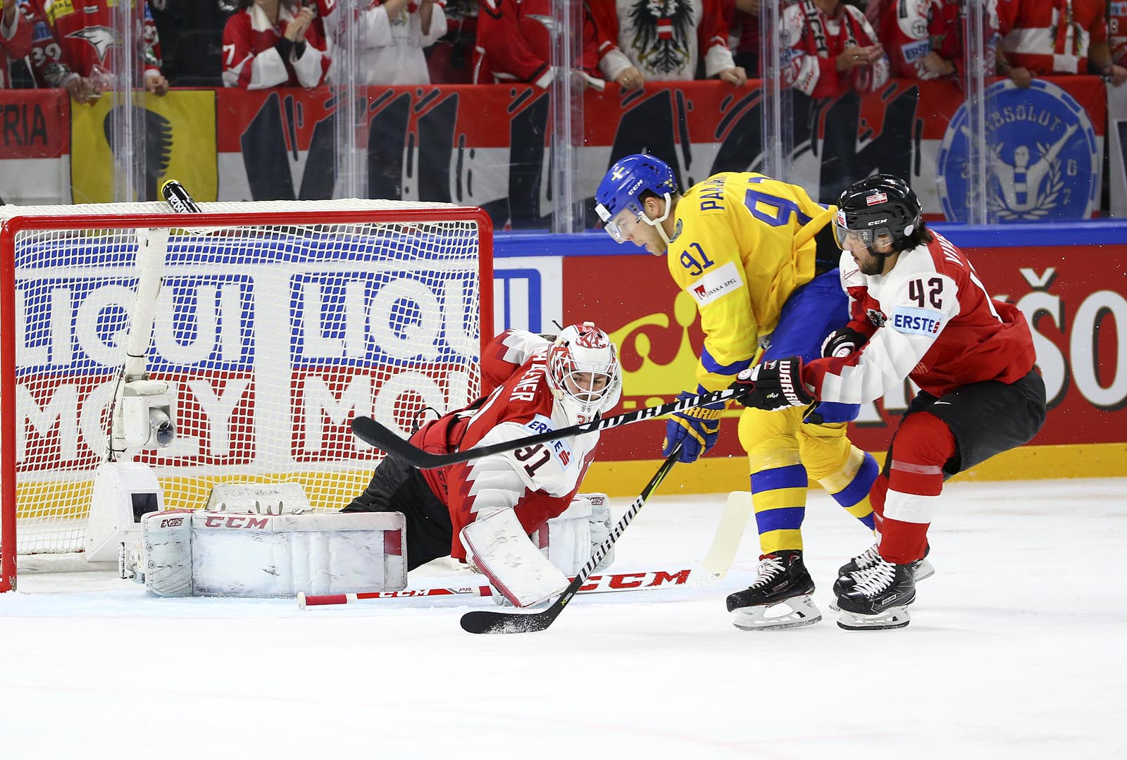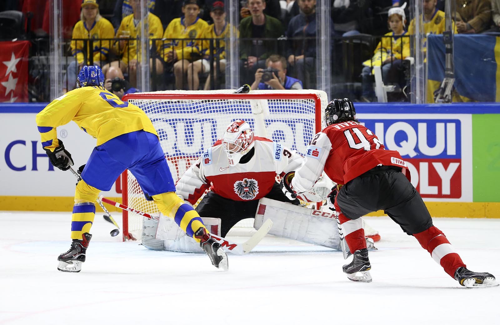 Another penalty early in the middle frame gave Sweden’s top line yet another goal – and it could have come straight out of the coaches’ play book. The puck emerged from a scrum on the left boards and the Swedes sprang into action. Two passes later and Rakell was slotting the puck into a wide open net with the Austrians unable to get close. The play was deceptively simple, the execution clinical.