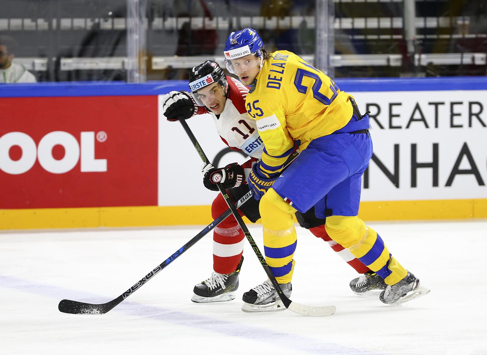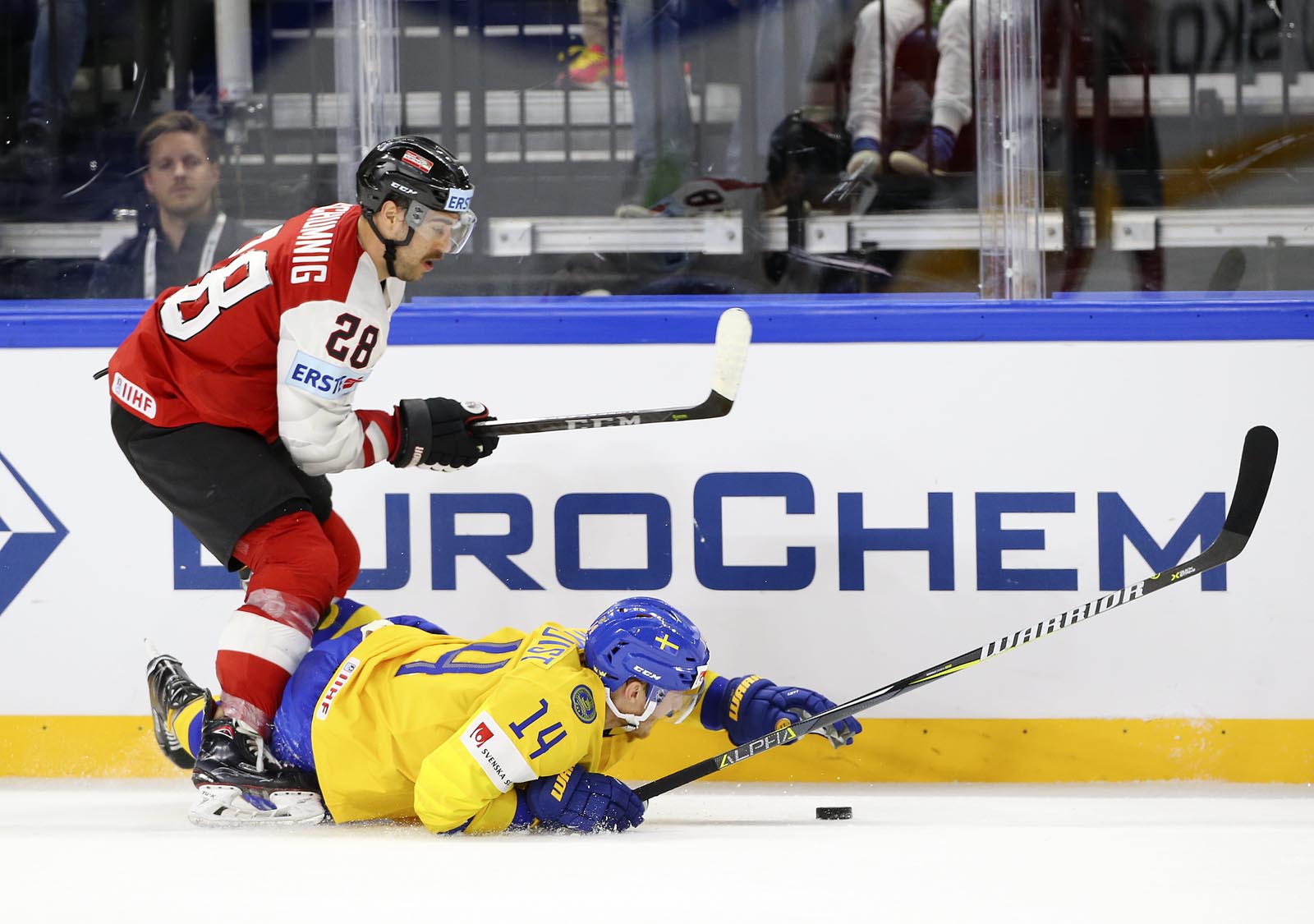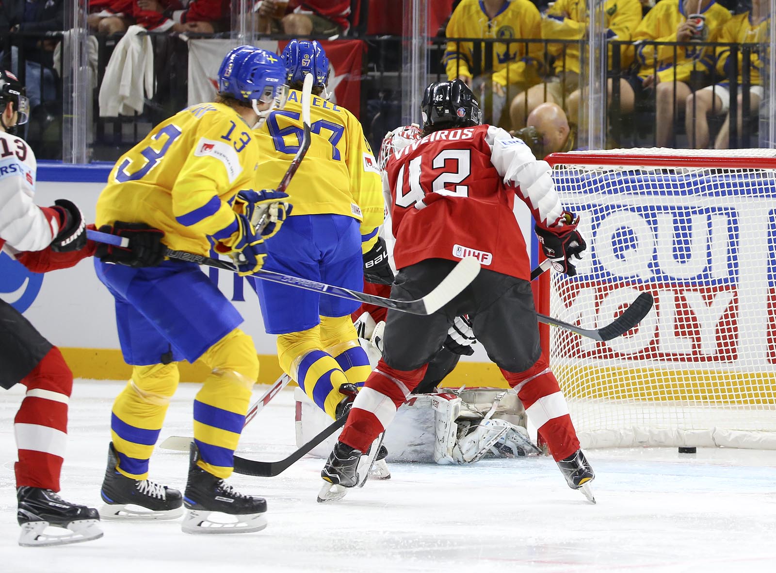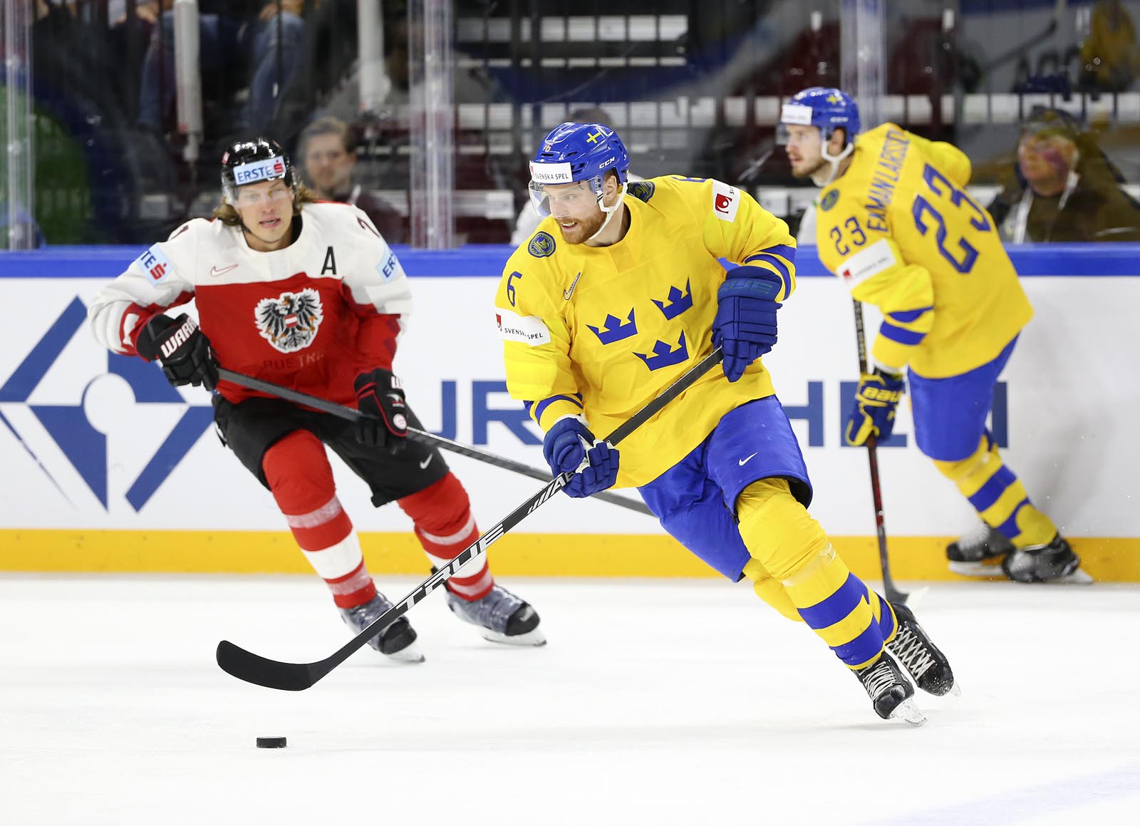 While Sweden looked good from start to finish, Austria’s problems at this level were apparent at both ends of the ice. The newly-promoted nation has found it tough among the elite and tonight it did not help itself by missing the chances that came its way. In the first period, Lukas Haudum got clear for a good look at Anders Nilsson’s net but his shot was well wide. In the second, Peter Schneider capitalised on a turnover on the red line to sprint through for a one-on-one rendezvous with the Swedish goalie. On arrival, though, he could only find Nilsson’s pads. Where Sweden was clinical, Austria was profligate.