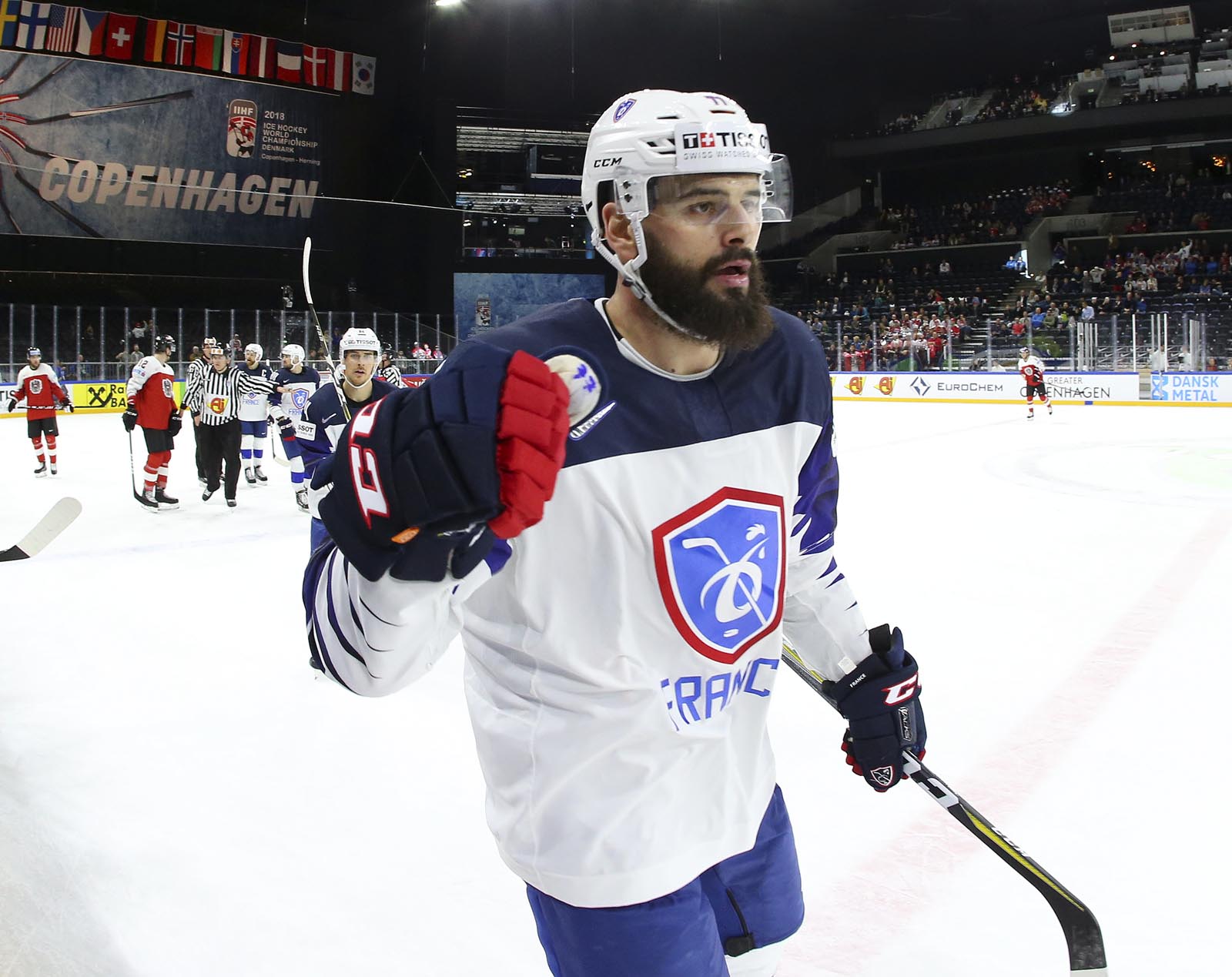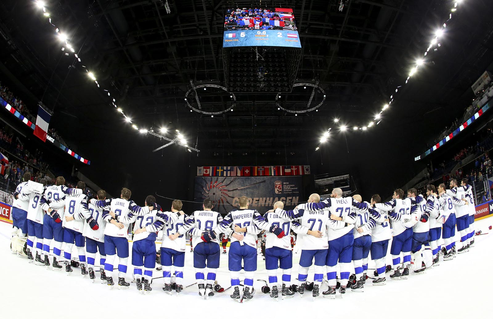 Damien Fleury and Sacha Treille led the way with two goals apiece, and Teddy Da Costa also scored for France. Eighteen-year-old Worlds rookie Alexandre Texier added three assists, while captain Stephane Da Costa and Kevin Hecquefeuille had two apiece.