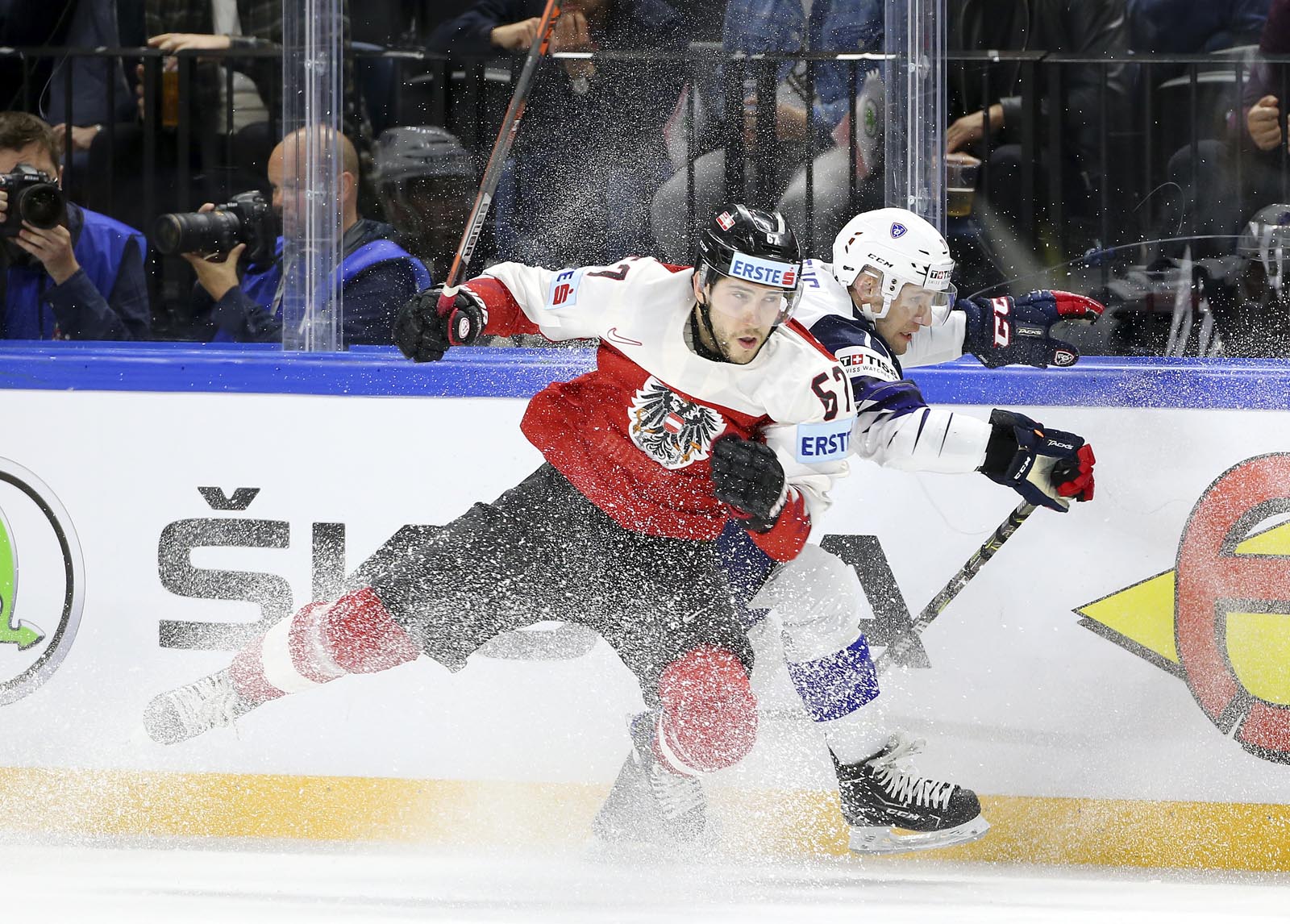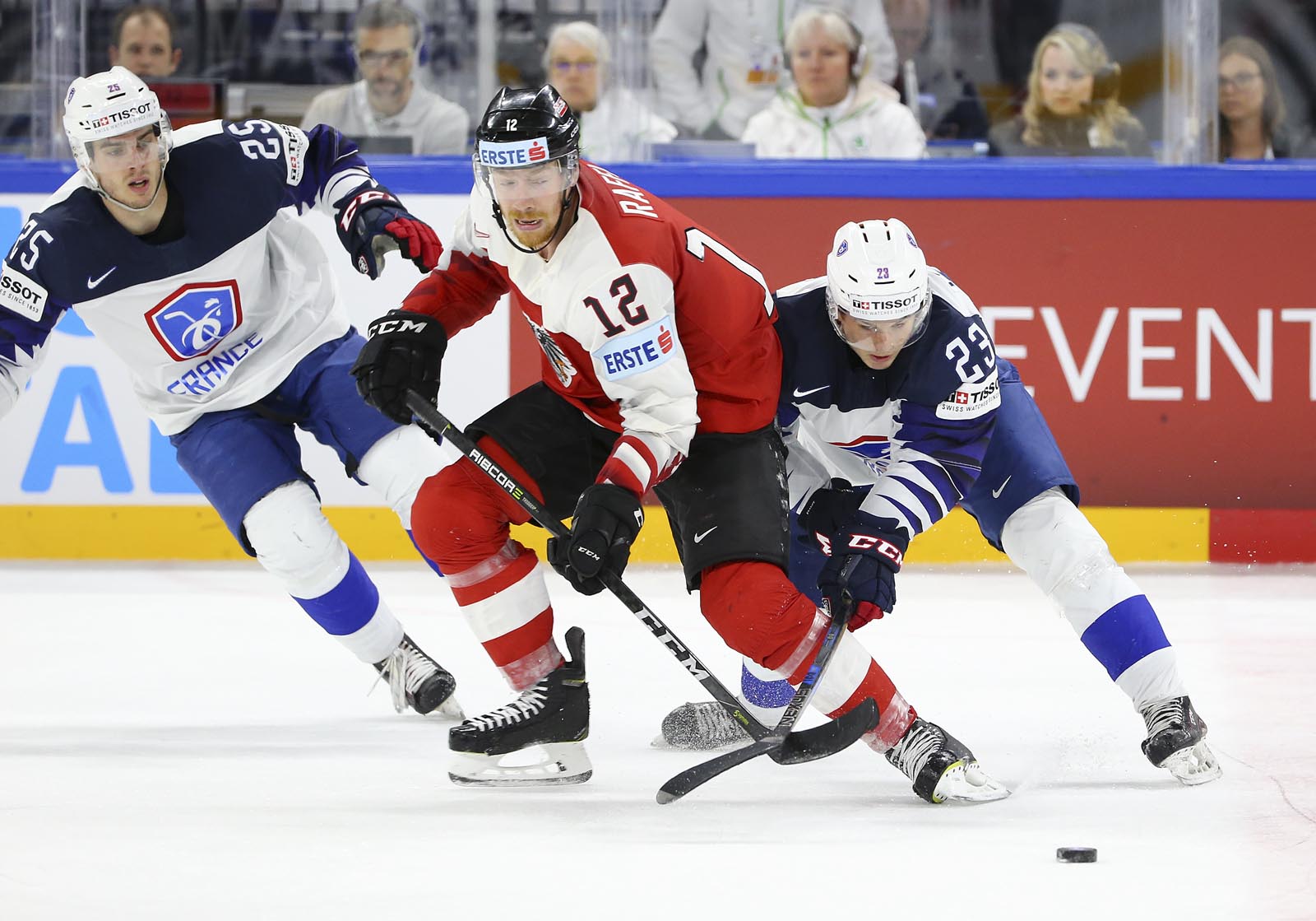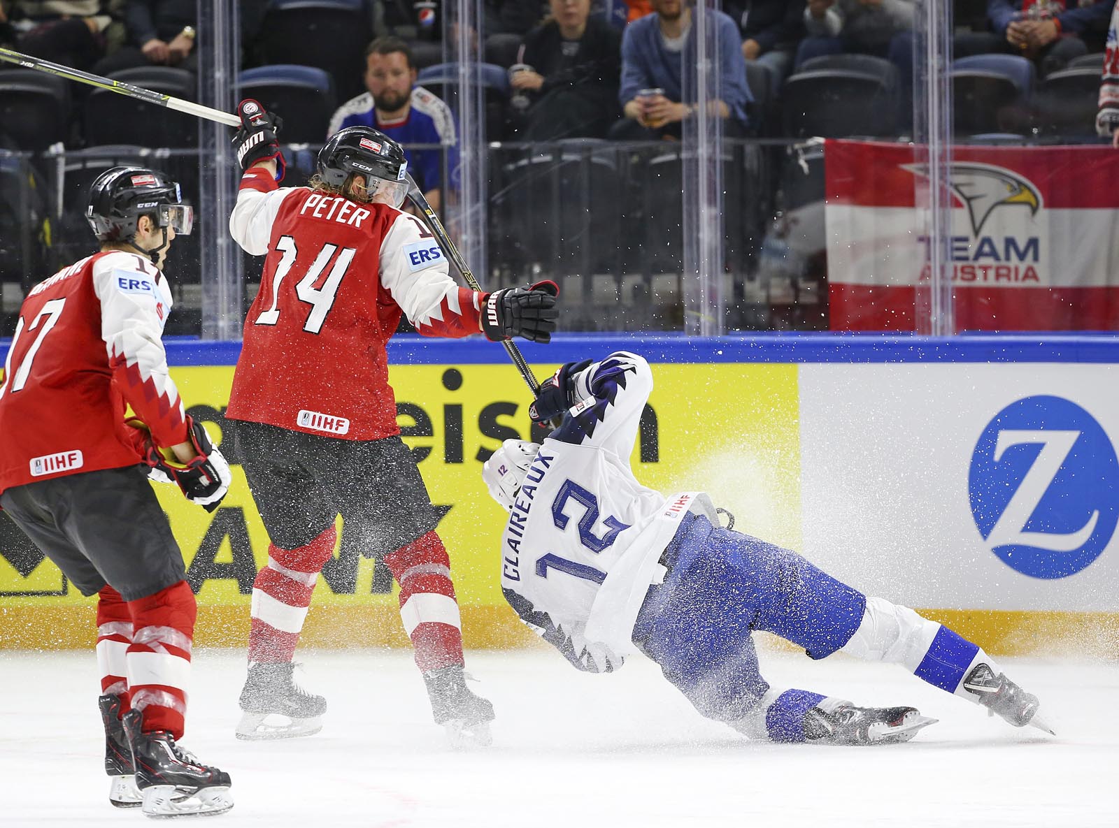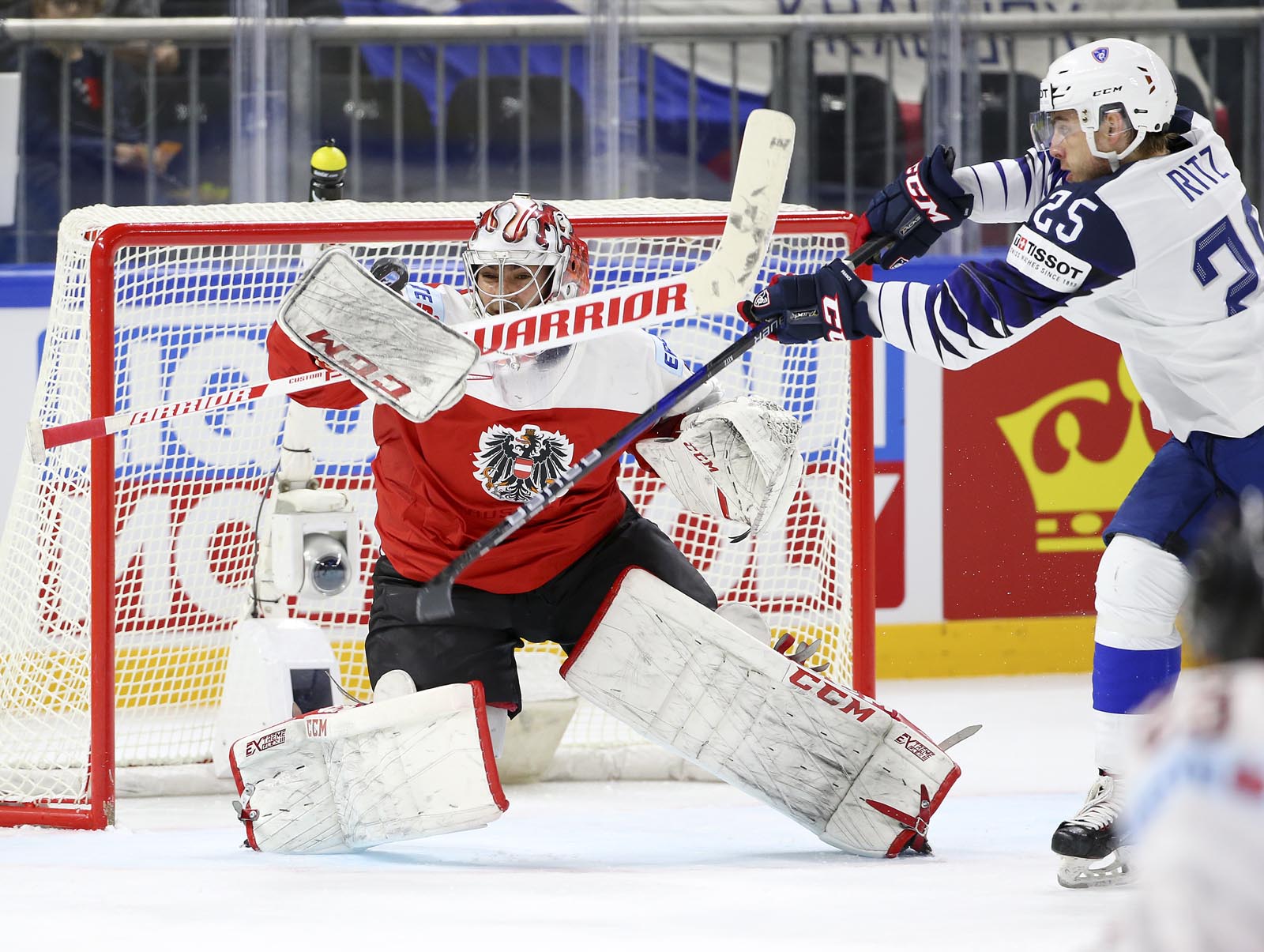 It was pure frustration for the Austrians, who outshot France 19-5 in the final stanza. Hardy slid across to foil Hundertpfund on a 2-on-1 with 12 minutes remaining. And later, French forward Floran Douay got mixed up with Starkbaum during an ineffective Austrian power play and knocked his mask off.
