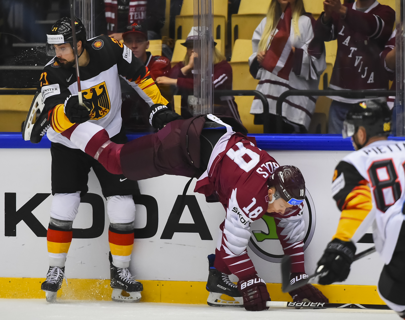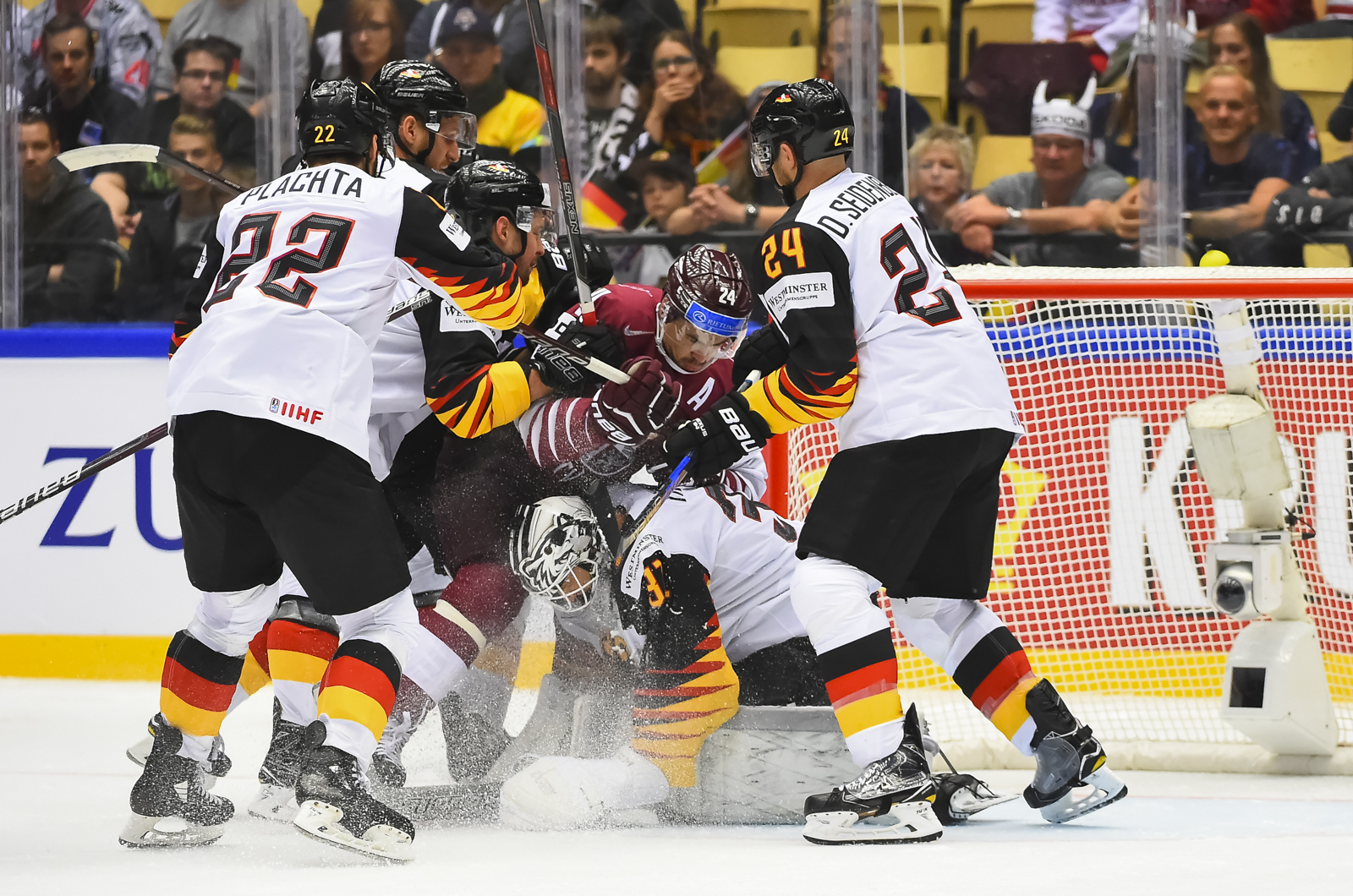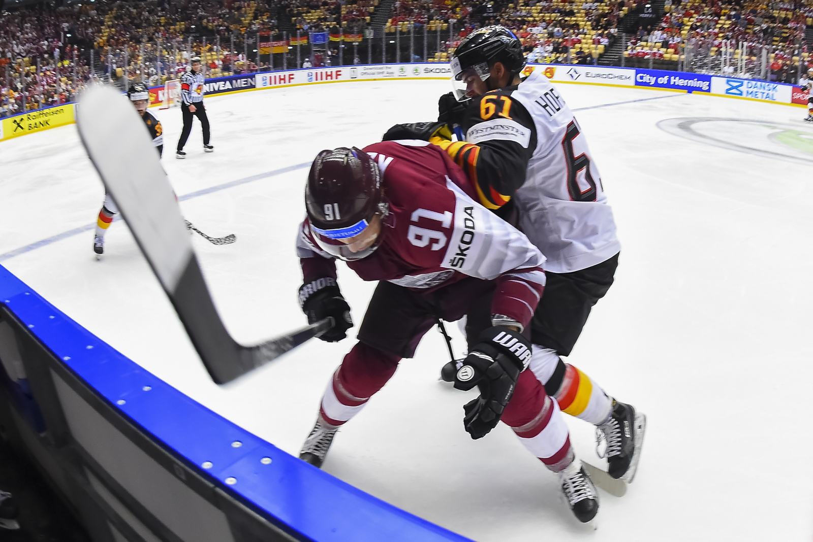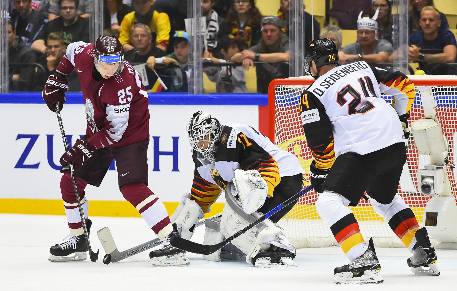 Latvia won a tight and close-checking game this afternoon in Herning, defeating Germany by a 3-1 score and making a race for the fourth and final playoff spot in Group B even tighter.