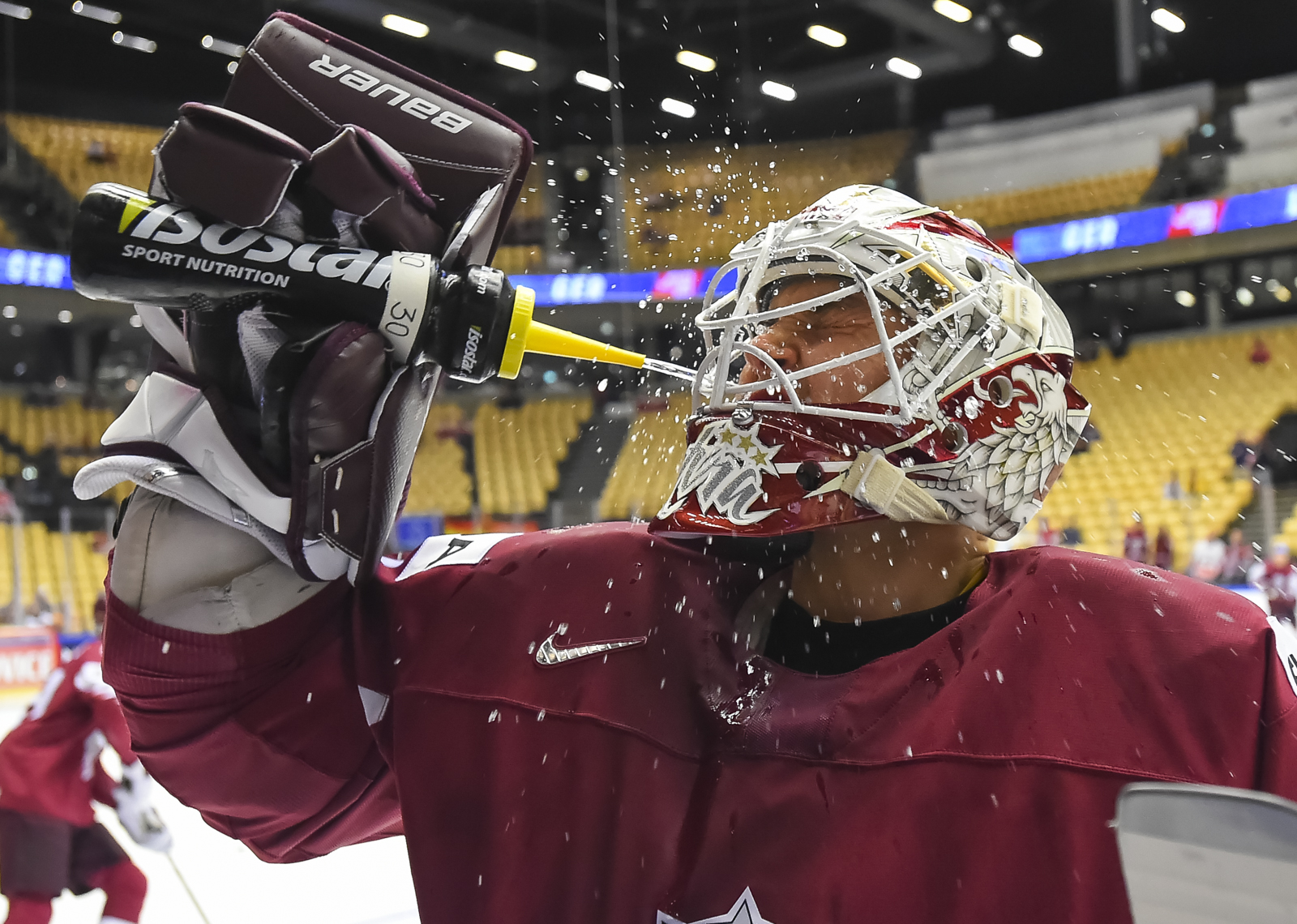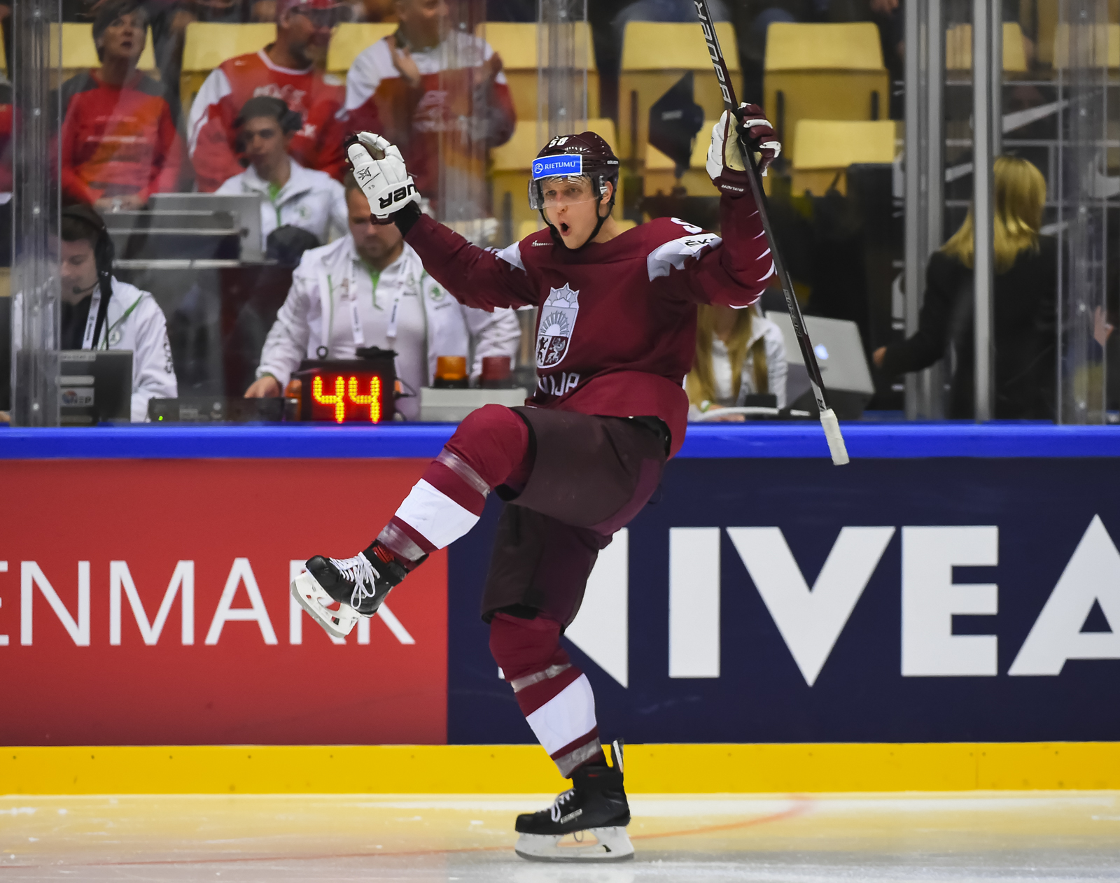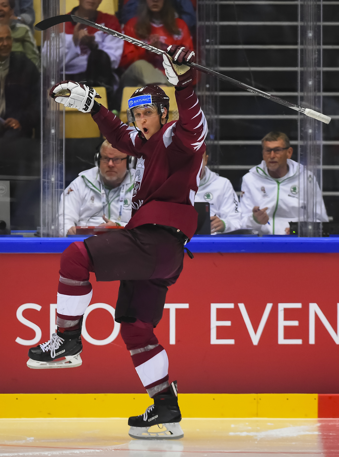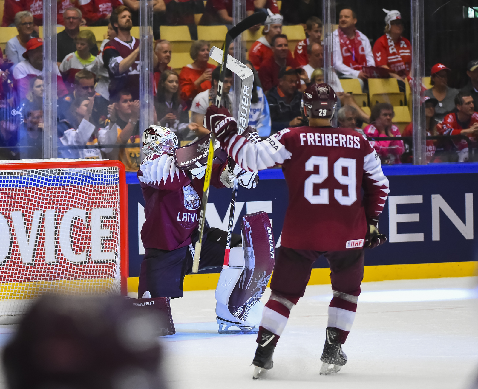 Goalie Elvis Merzlikins was Latvia's best player, stopping 33 or 34 shots and playig with rock-solid confidence. Andris Dzerins had a goal and assist for the winners.