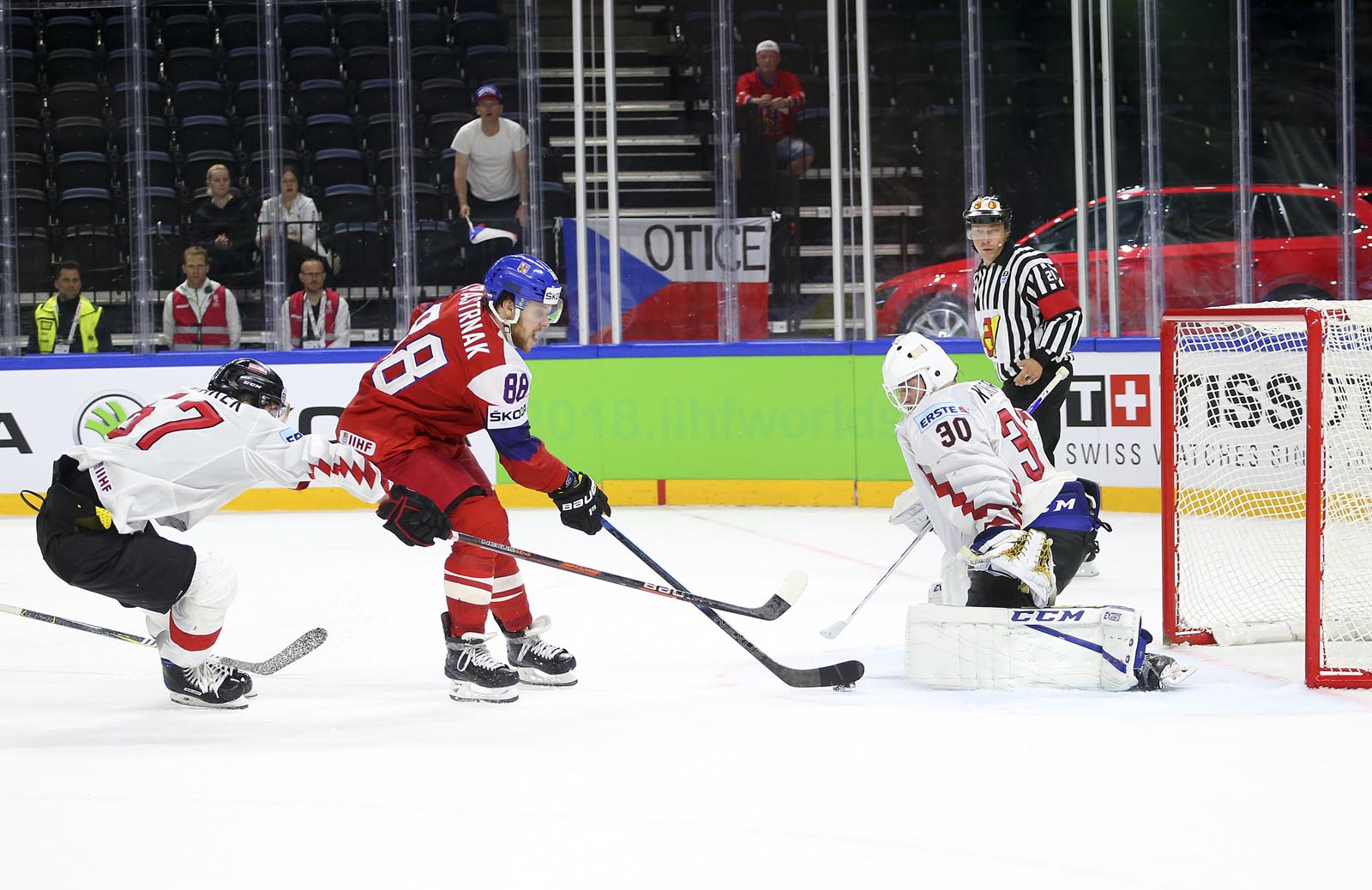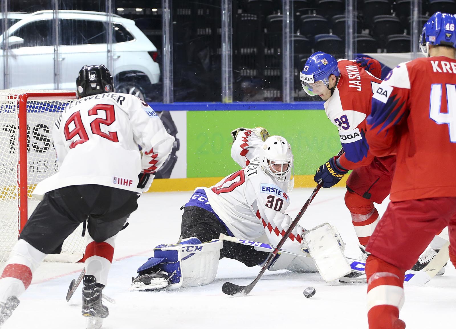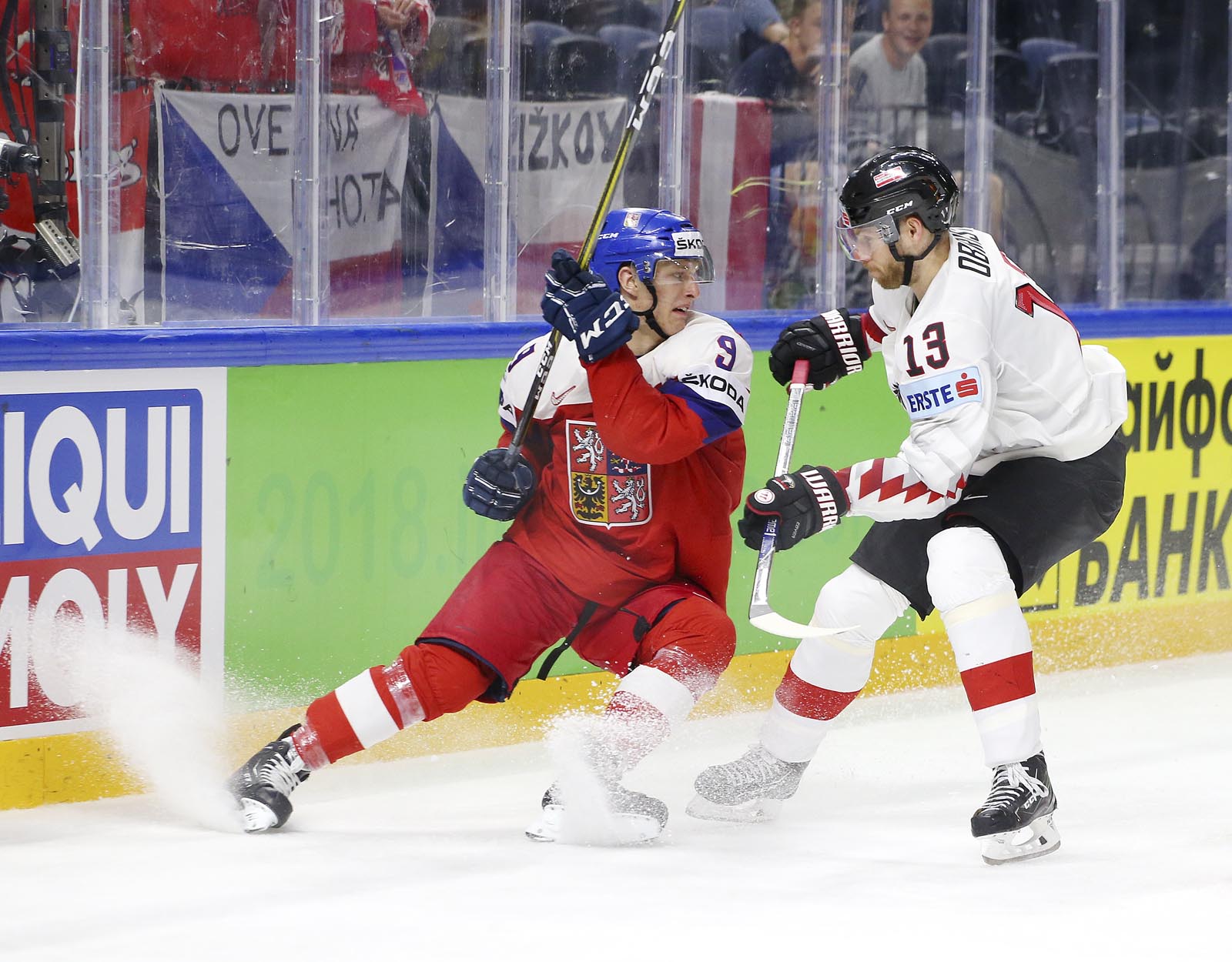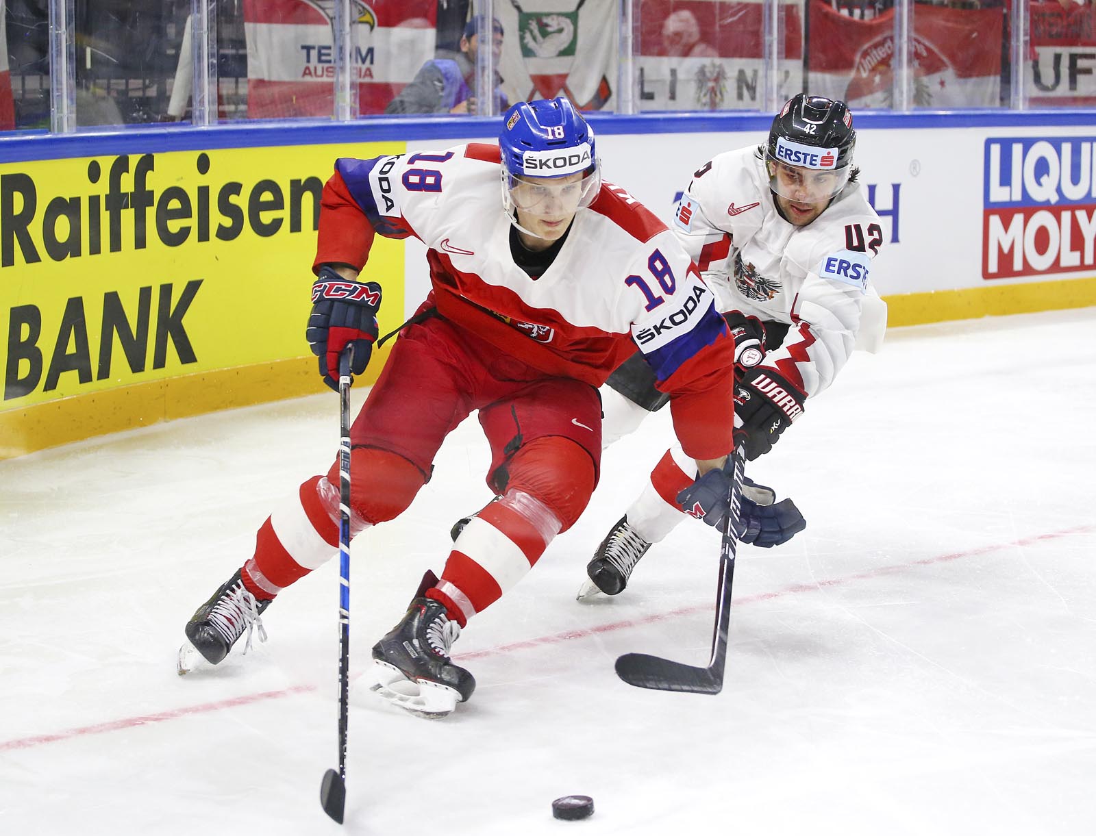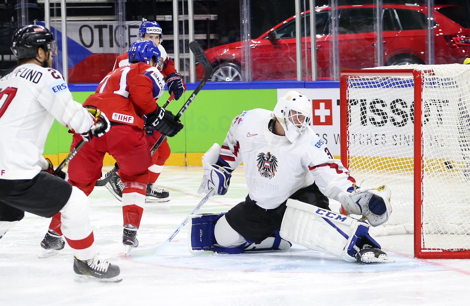 The Czech top line might have generated all the pre-game excitement but it was the bottom six that lit the fuse for this game. Just 31 seconds into the game, Dominik Kubalik’s shot pinballed off two Austrian players. The rebound dropped kindly: the forward flashed out a stick to slide the puck into Hyka’s path and the Chicago Wolves man duly put away the early opener.