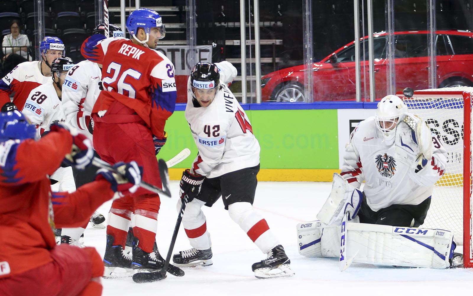 Then Raffl produced a fine goal, collecting the puck in centre ice and dancing around Tomas Repik before beating Francouz to set up an anxious couple of minutes for the Czechs. Manuel Ganahl clipped the outside of Francouz's post, Kickert shut the door on Pastrnak one last time and Josef Jandac saw his team close out the win.