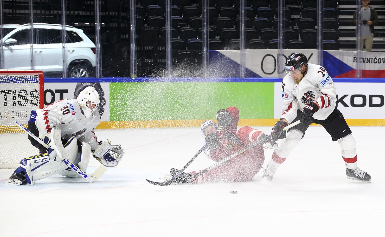 The Austrians still managed to give their fans one last hurrah in Copenhagen. Raffl grabbed two goals in the closing stages as an unlikely comeback suddenly became a possibility. First, the team’s best-known player was sent across the blue line by Clemens Unterweger’s long pass. He manoeuvred around David Sklenicka before putting a backhand finish onto the top shelf in front of the bulk of the Austrian supporters in the Royal Arena.