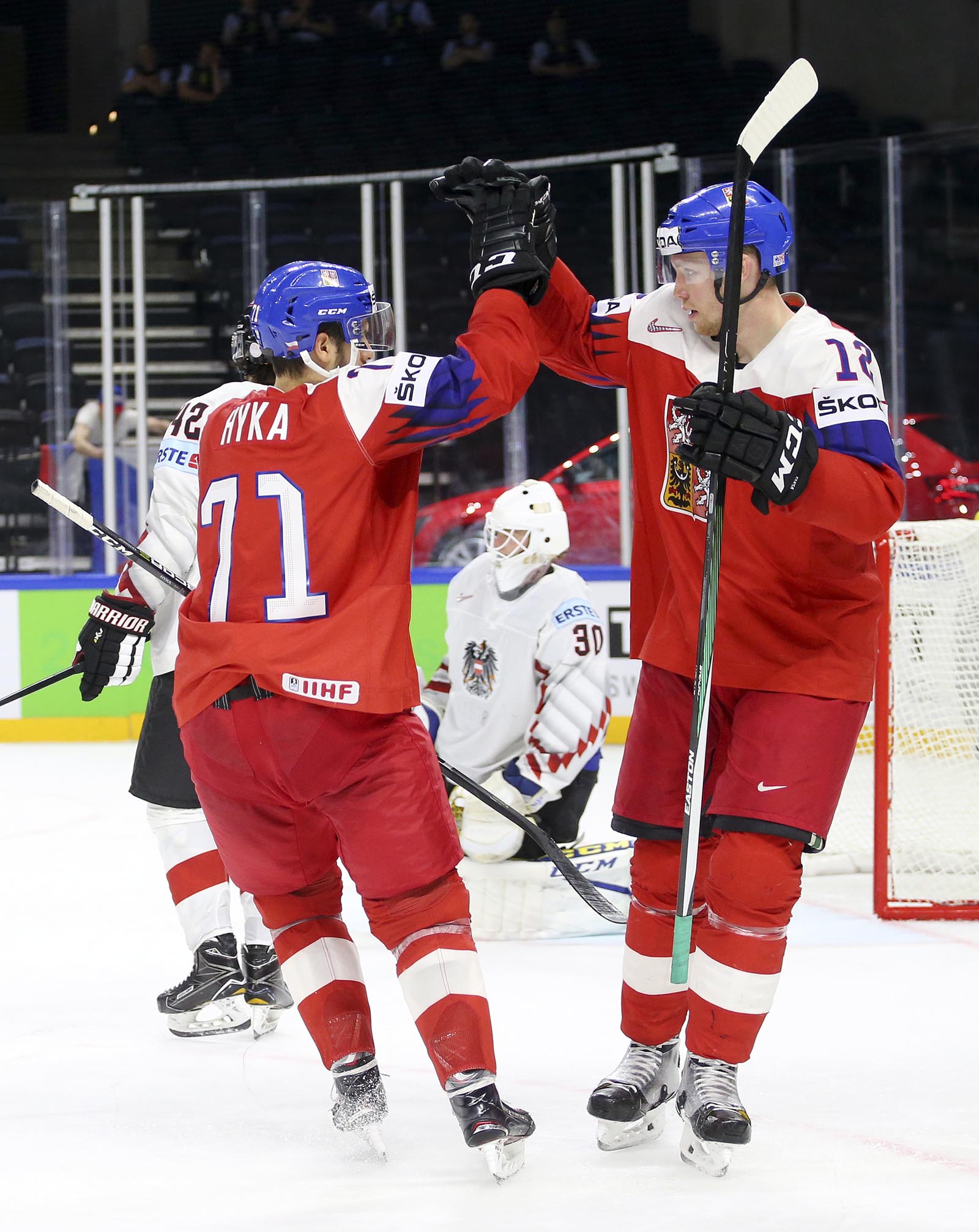 The Czech Republic rounded off its Group A campaign with a win against Austria, with Tomas Hyka contributing three points in a 4-3 victory.