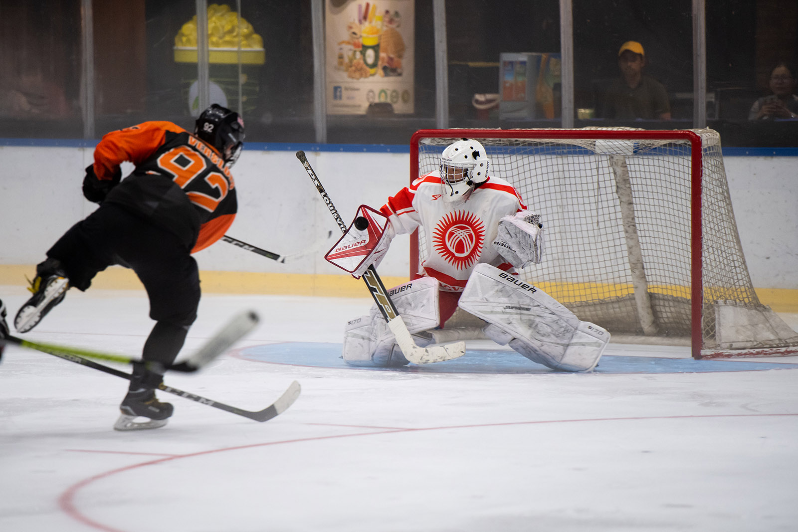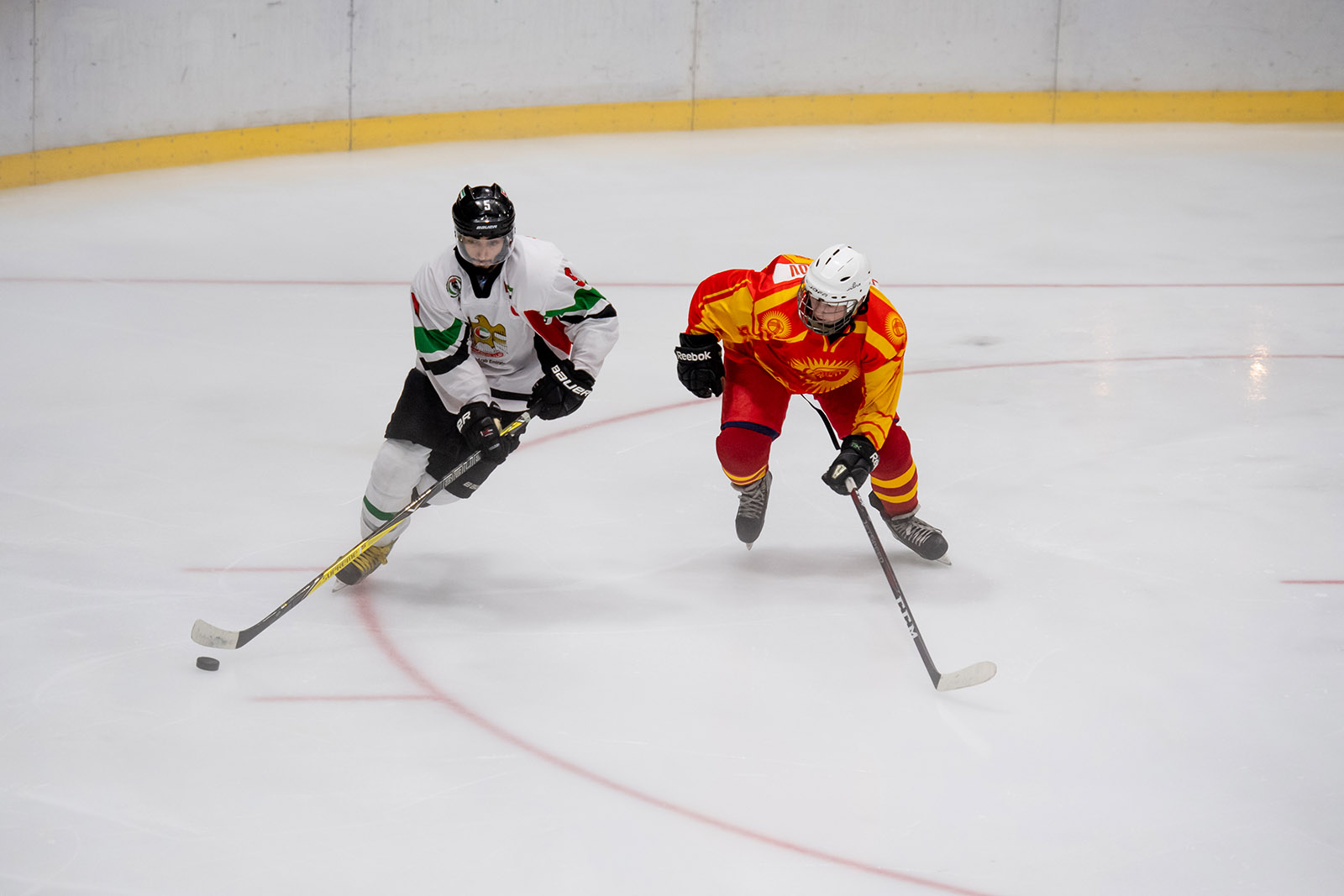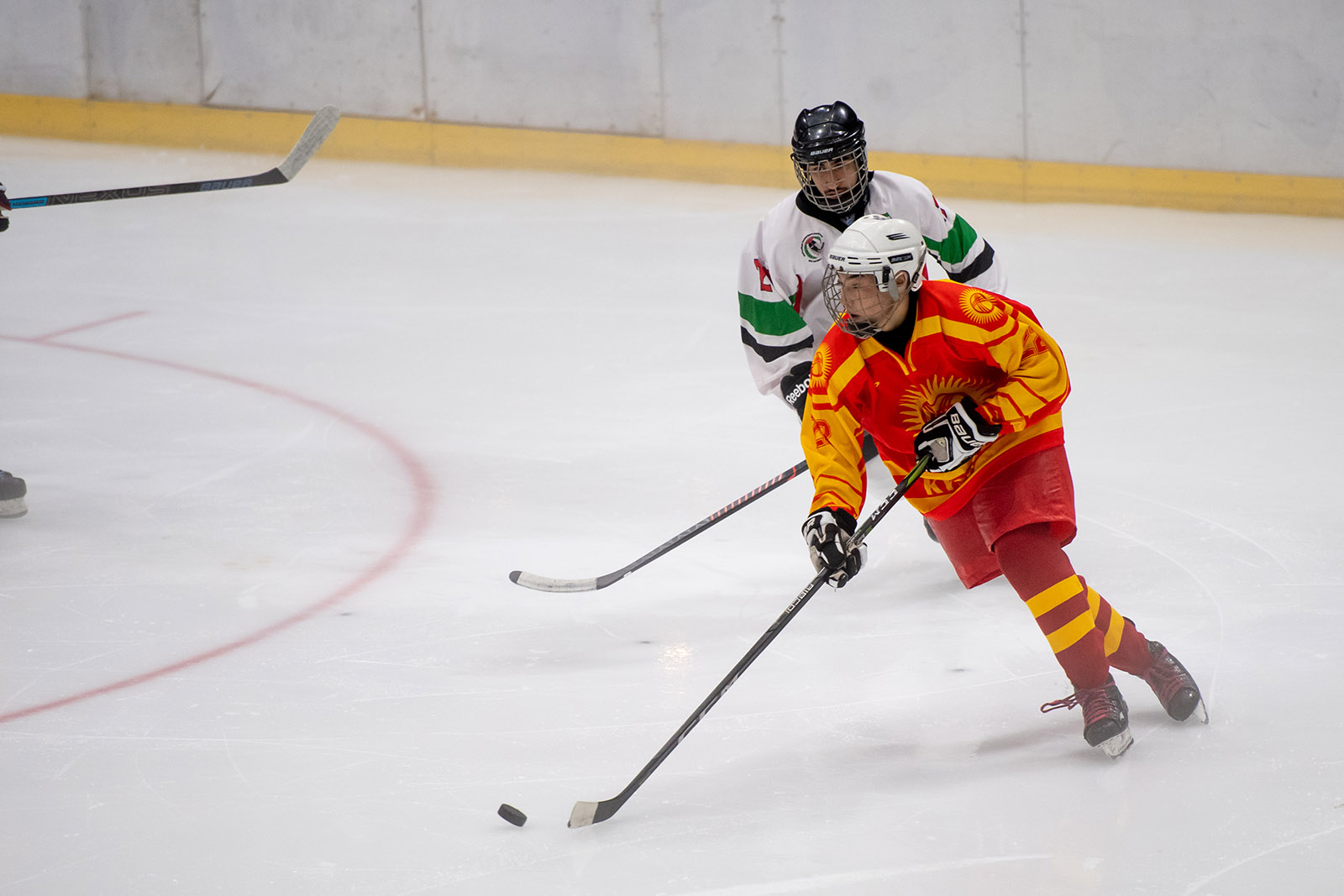 Kyrgyzstan didn’t give up and cut the deficit in the first period with a Andrei Triskhin goal. And had the chance to tie it up early in the third period. Zhanbolot Tagayev missed out on a penalty shot at 1:13 when Vinodraj Sundram blocked the puck with his hands but 46 seconds later Ernazar Isamatov tied it up.
