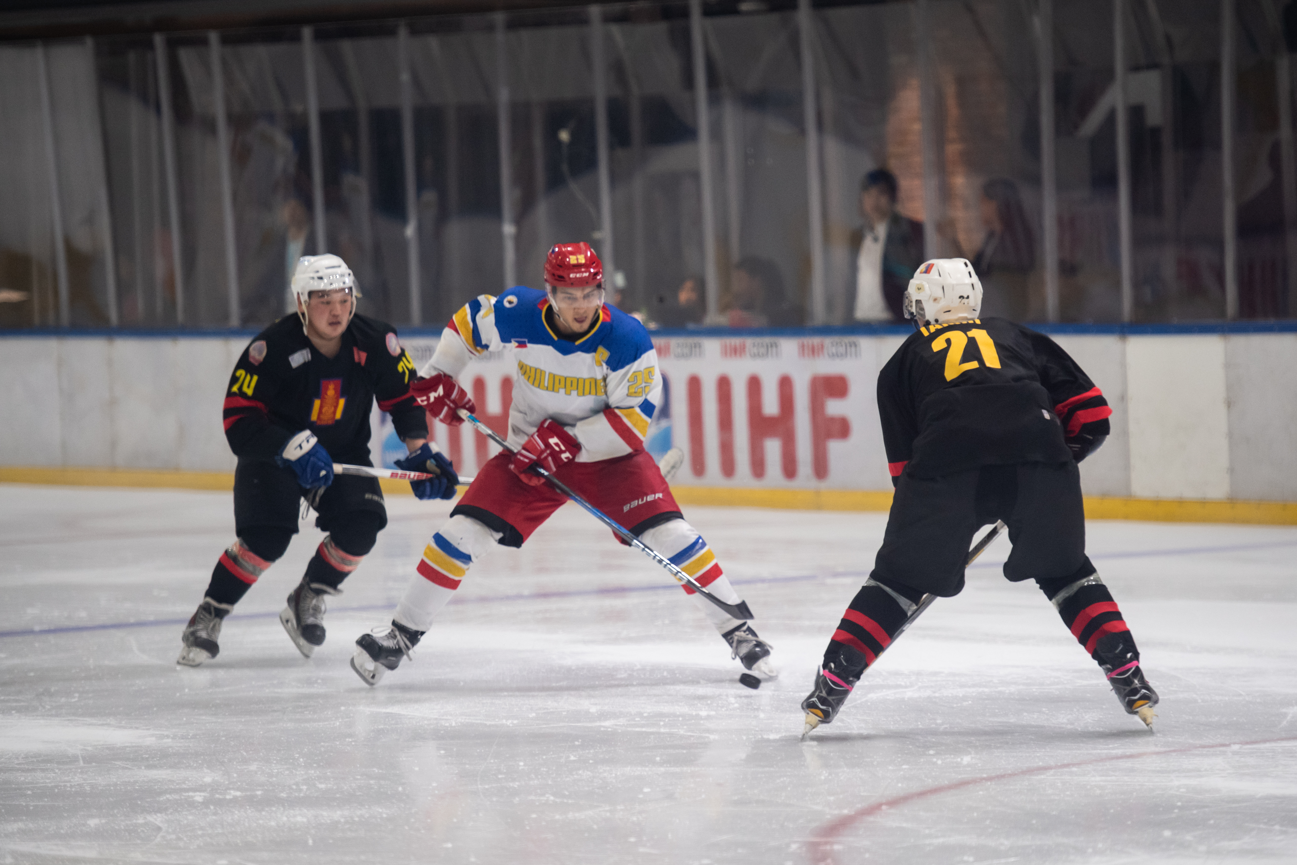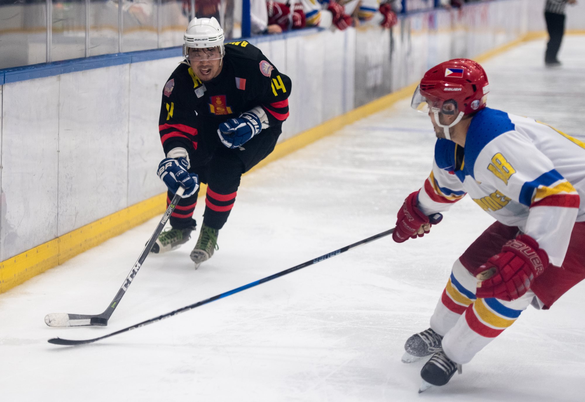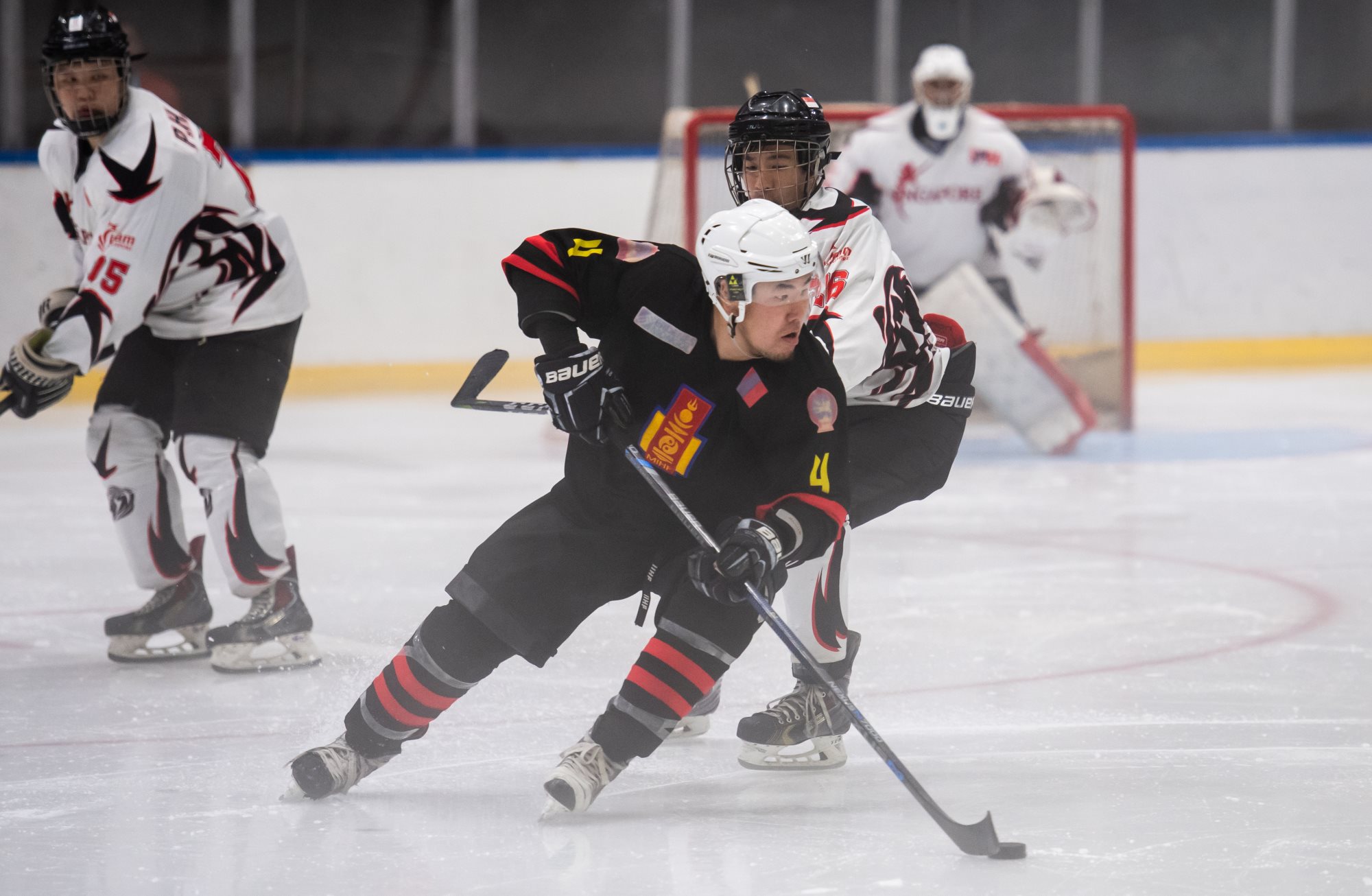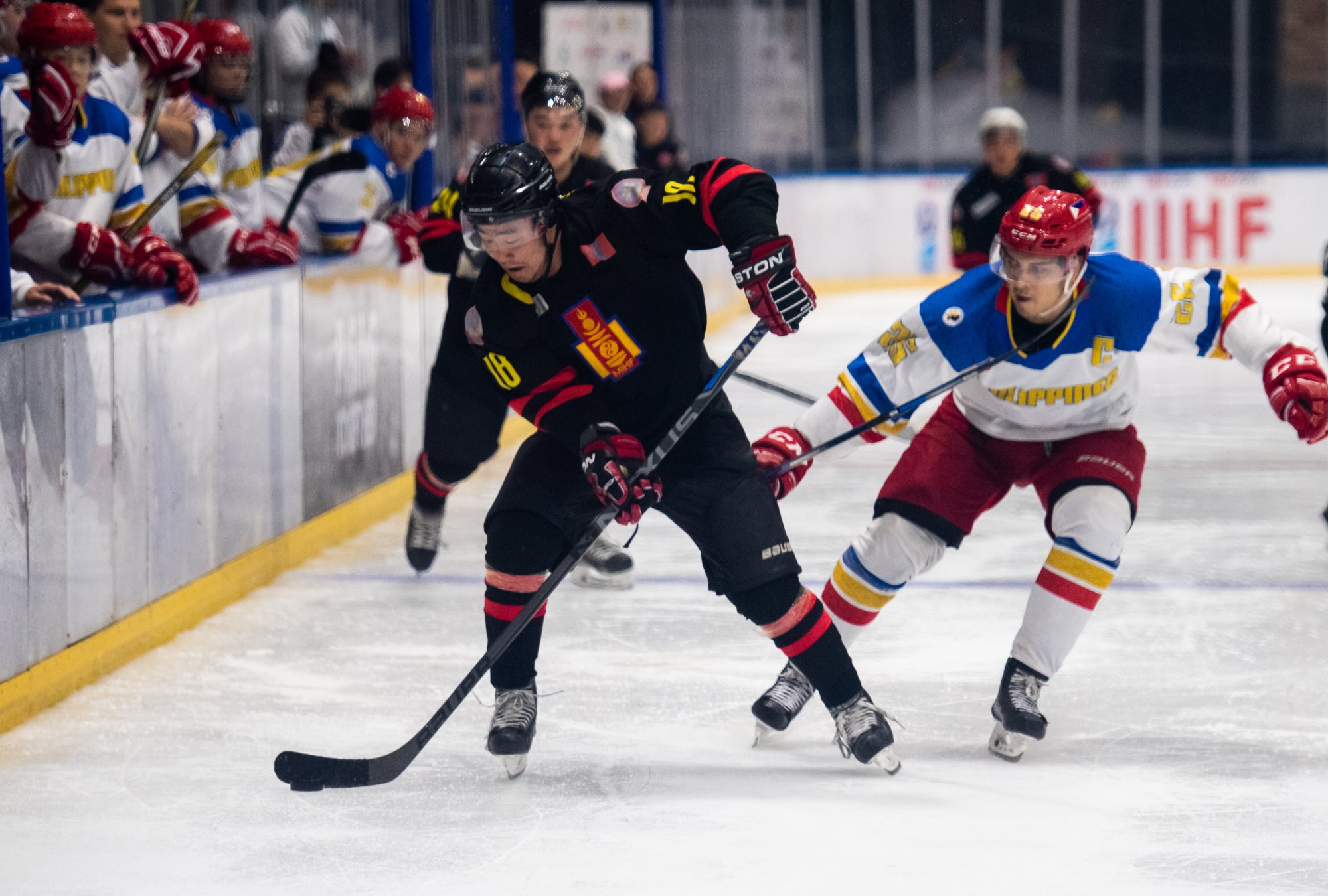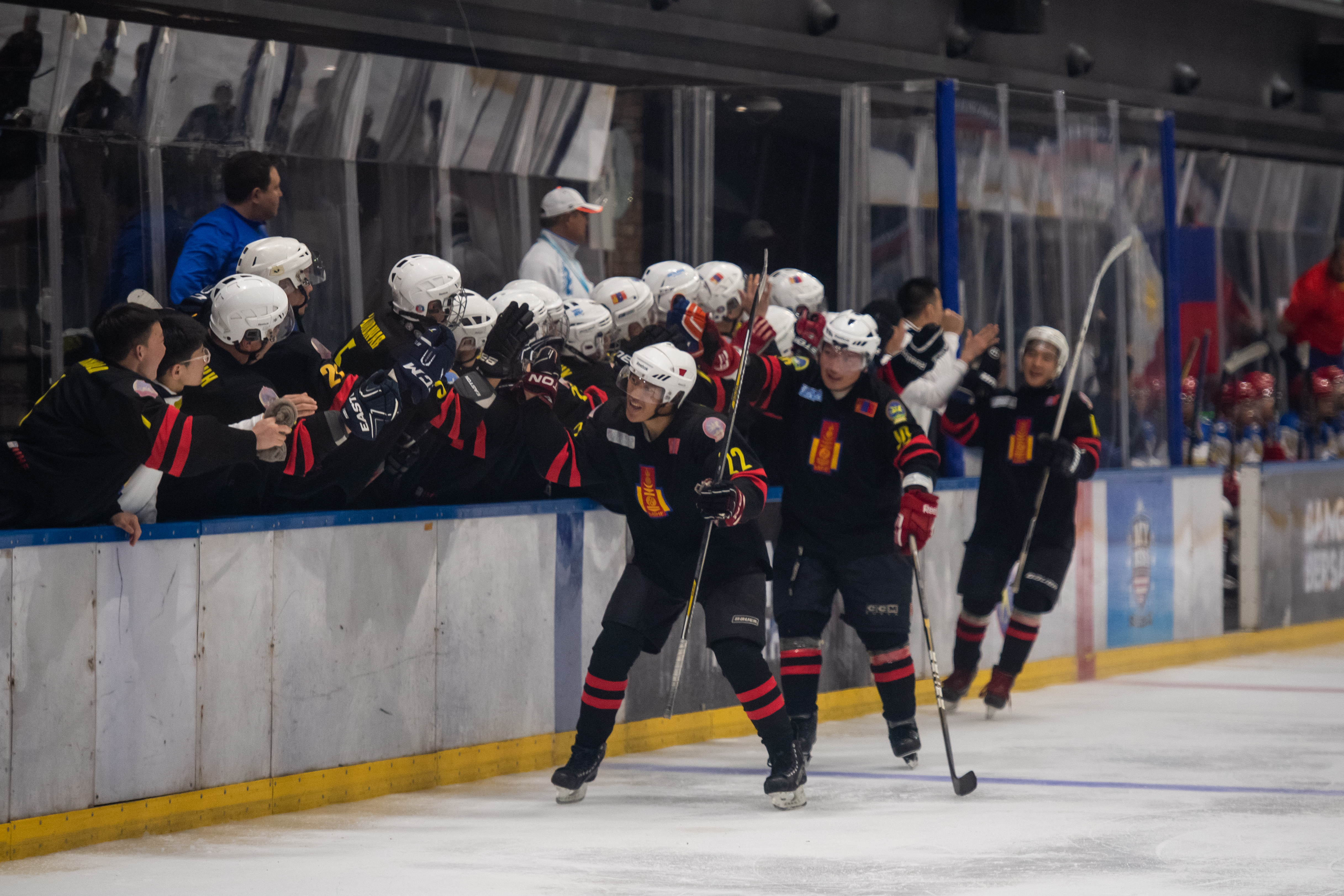 That title defence got off to an assured start with Mongolia jumping into an early lead. Jargalsaikhan opened the scoring in the eighth minute after a solo rush from #22 opened up the Filipino defence. Just 30 seconds later, Mongolia had a second: Erdenesekh Bold took the puck out of the corner, fed it to Enkhsukh Erdenetogtokh at the point and moved to the slot to convert the rebound from the defenceman’s shot. Ider made it 3-0 late in the opening frame with a one-timer from in front of Paolo Spafford’s net off a Jargalsaikhan feed.