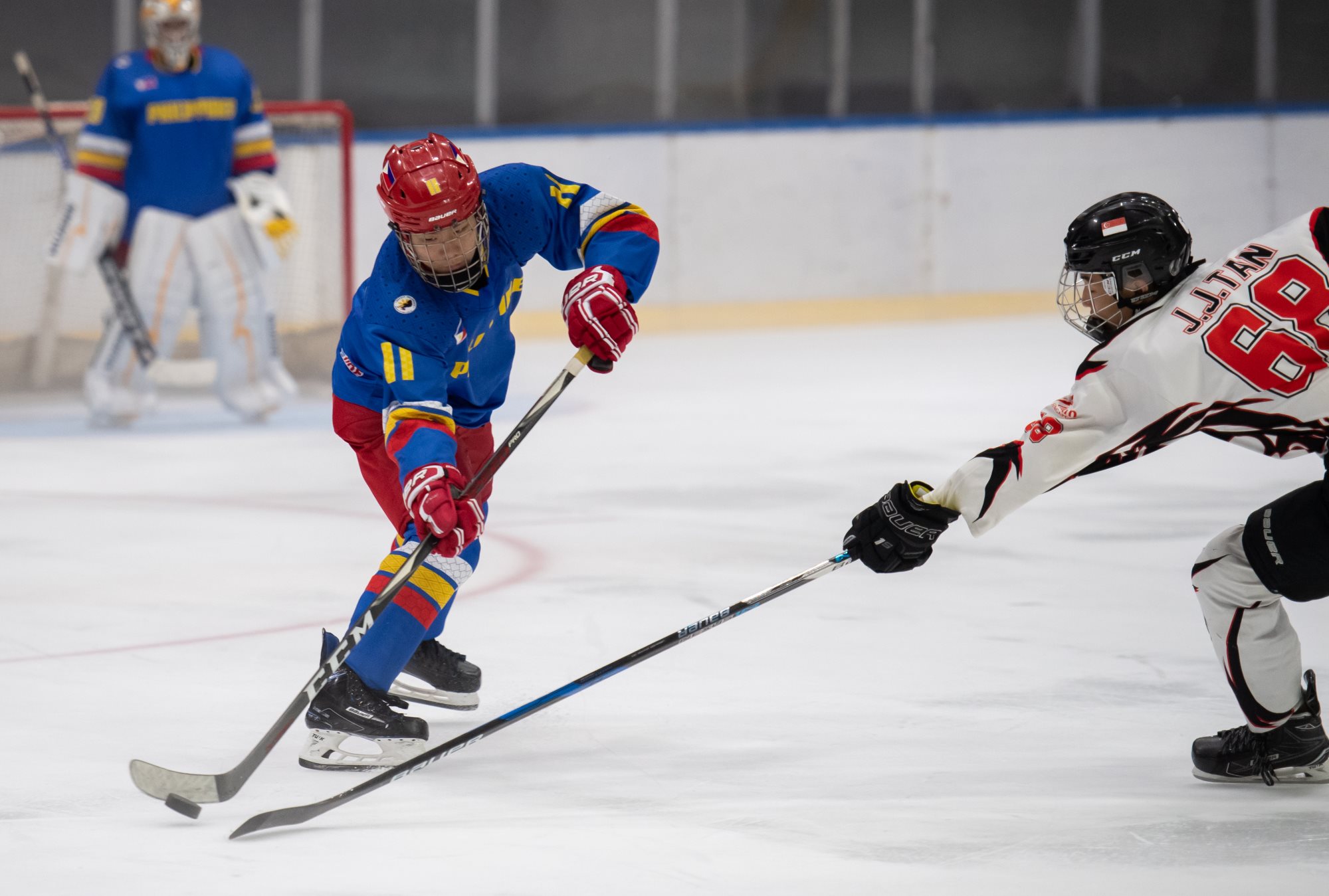 But the Philippines hit back. Julius Santiago’s 22nd-minute effort was the only marker in the second period; two goals in a minute at the start of the third tied the game up at 3-3. First, Carl Montano’s pass from behind the net was gobbled up by Jose Cadiz, then Jan Regencia stuffed home the rebound from a Benjamin Imperial shot. Montano and Regencia both had previous against this opponent, having scored two apiece in the group game; now they had thrown the final wide open once again.
