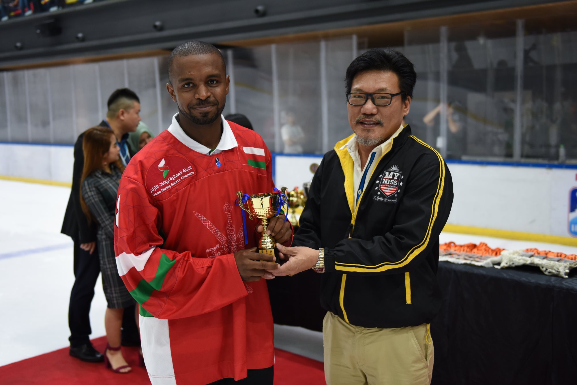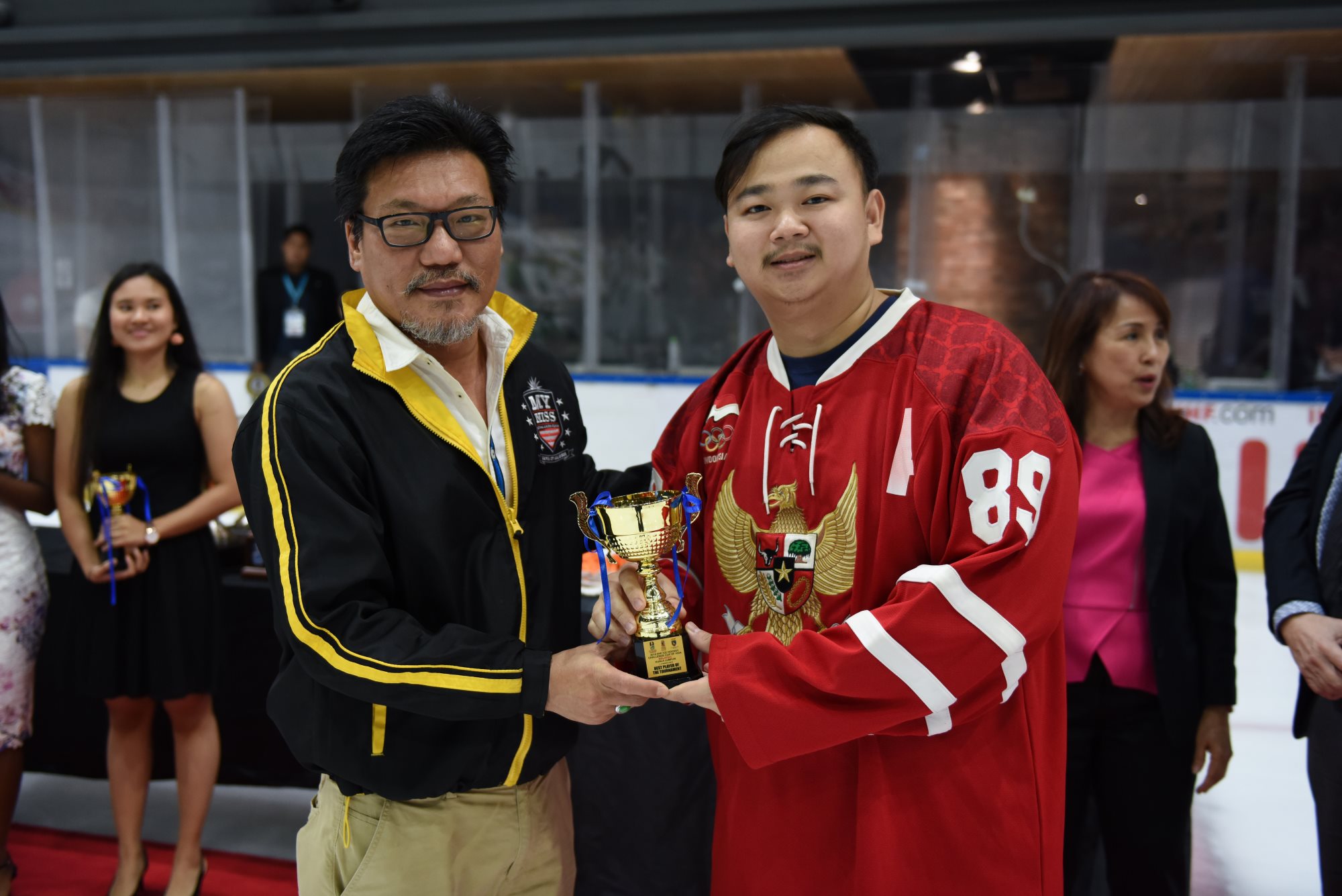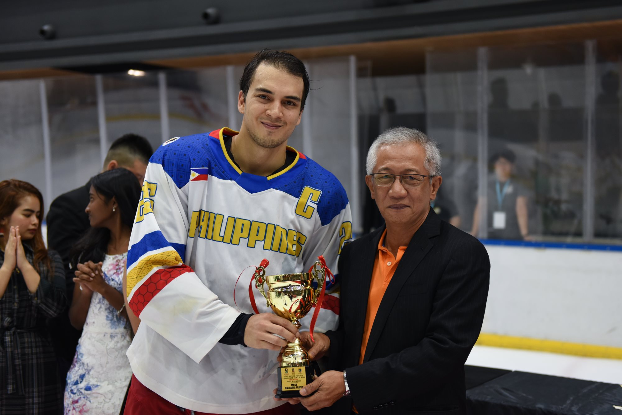 The individual honours saw Mongolia’s Ider crowned leading scorer, although Malaysia’s Brandon Tan tied him on 17 points. Ider got the verdict due to scoring more goals. John Steven Fuglister of the Philippines was third with 15 (7+8) points. The Philippines also had the most effective goalie of the competition; Spafford stopped 91.2% of the shots he faced, a fraction better than Oman’s Mohamed al Balushi on 91.16%. Spafford was selected as the tournament’s top goalie, Tan was the best forward and Fuglister earned the MVP award. Batgerel Zorigt of Mongolia was the rated the leading defenceman.