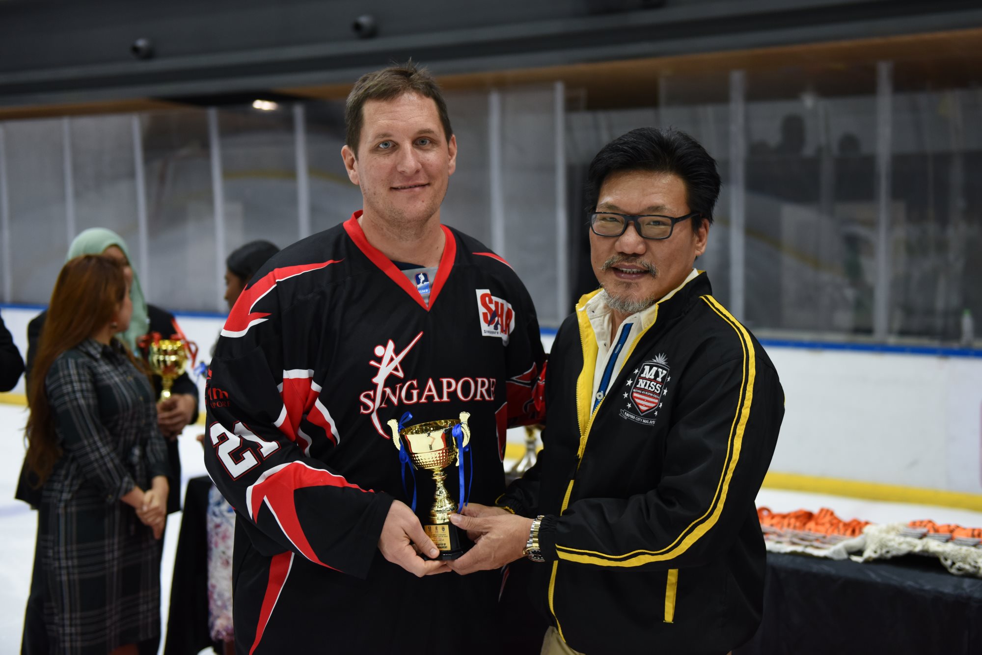 Earlier on Saturday, the host nation took on Singapore in the bronze medal game. However, the home team was unable to finish with a medal thanks to a fine goaltending performance from Kenny Liang. He made 23 saves to claim a shut-out as Singapore skated to a 4-0 win. James Kodrowski scored twice, Bryan Lee had a goal and two assists, Jiaju Ryan Tan was the other goalscorer.