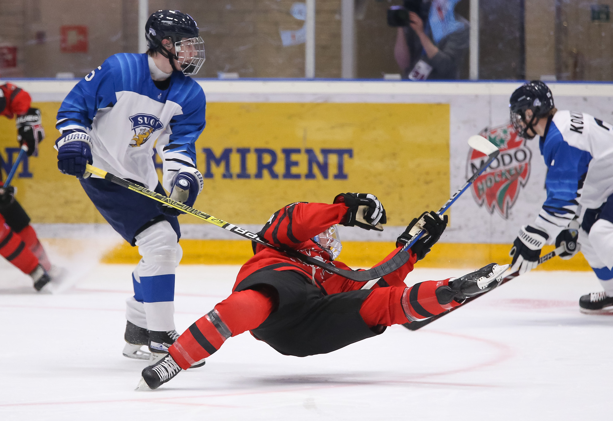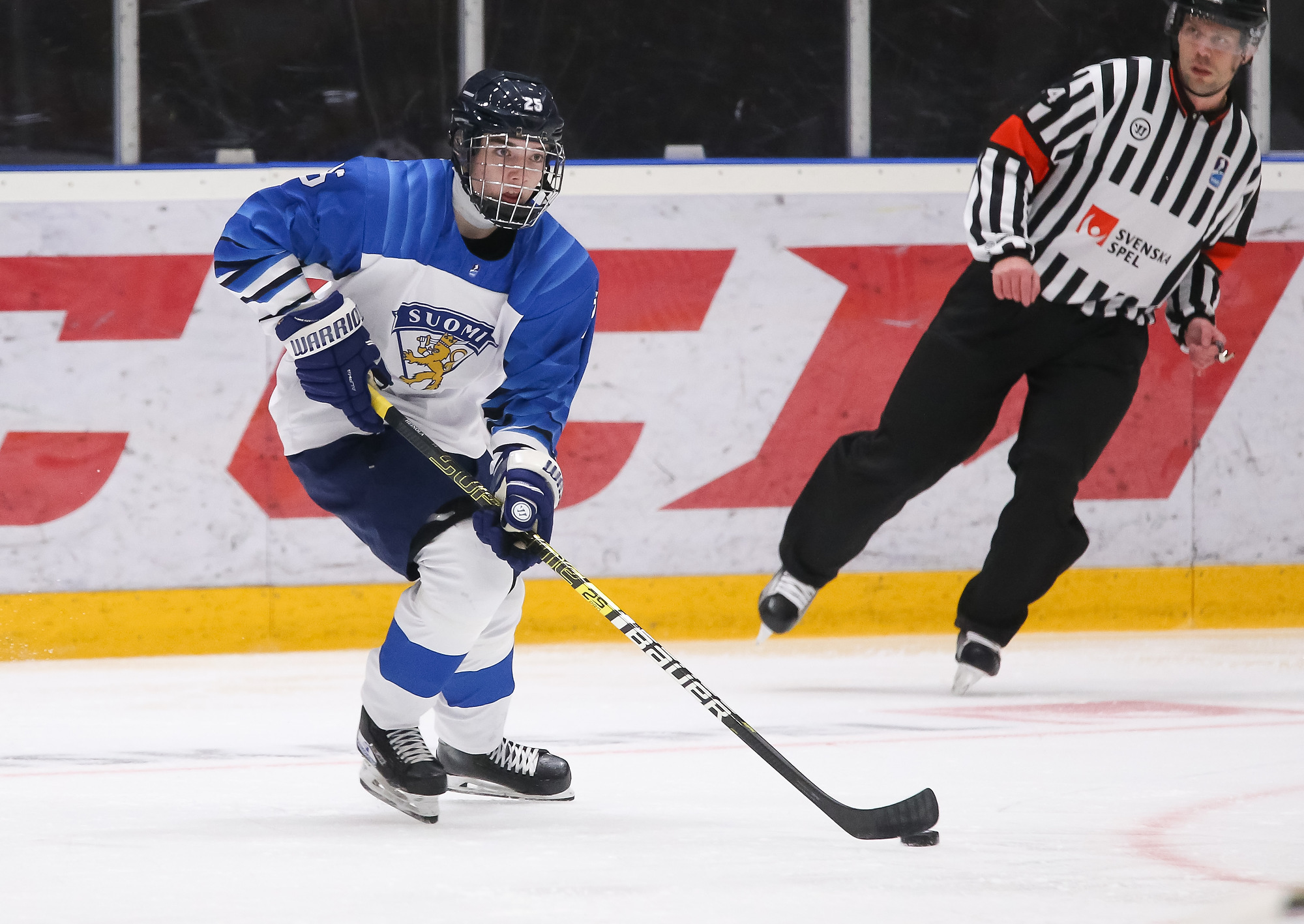 At 11:59, Suomi cashed in with a 5-on-3 man advantage for a 2-0 edge. Kasper Simontaival controlled the puck behind the net and centered it to an unguarded Saarela, who scored from the doorstep.