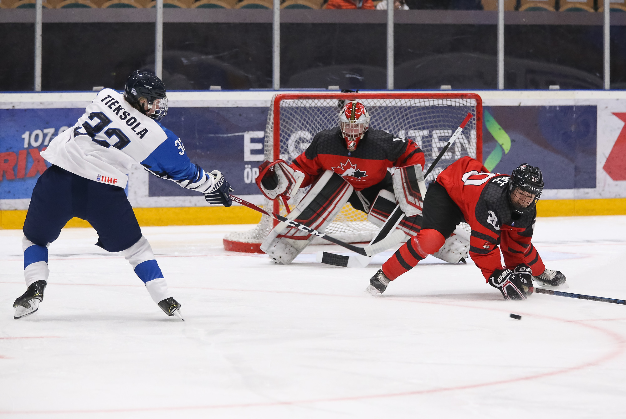 The two teams set a fabulous tempo out of the gate with few stoppages in play. Canada’s Keean Washkurak laid a solid hit on Finnish defenceman Santeri Hatakka on the forecheck. However, the Finns built control as the period went on, outshooting their opponents 20-12 and capitalizing on Canadian errors.