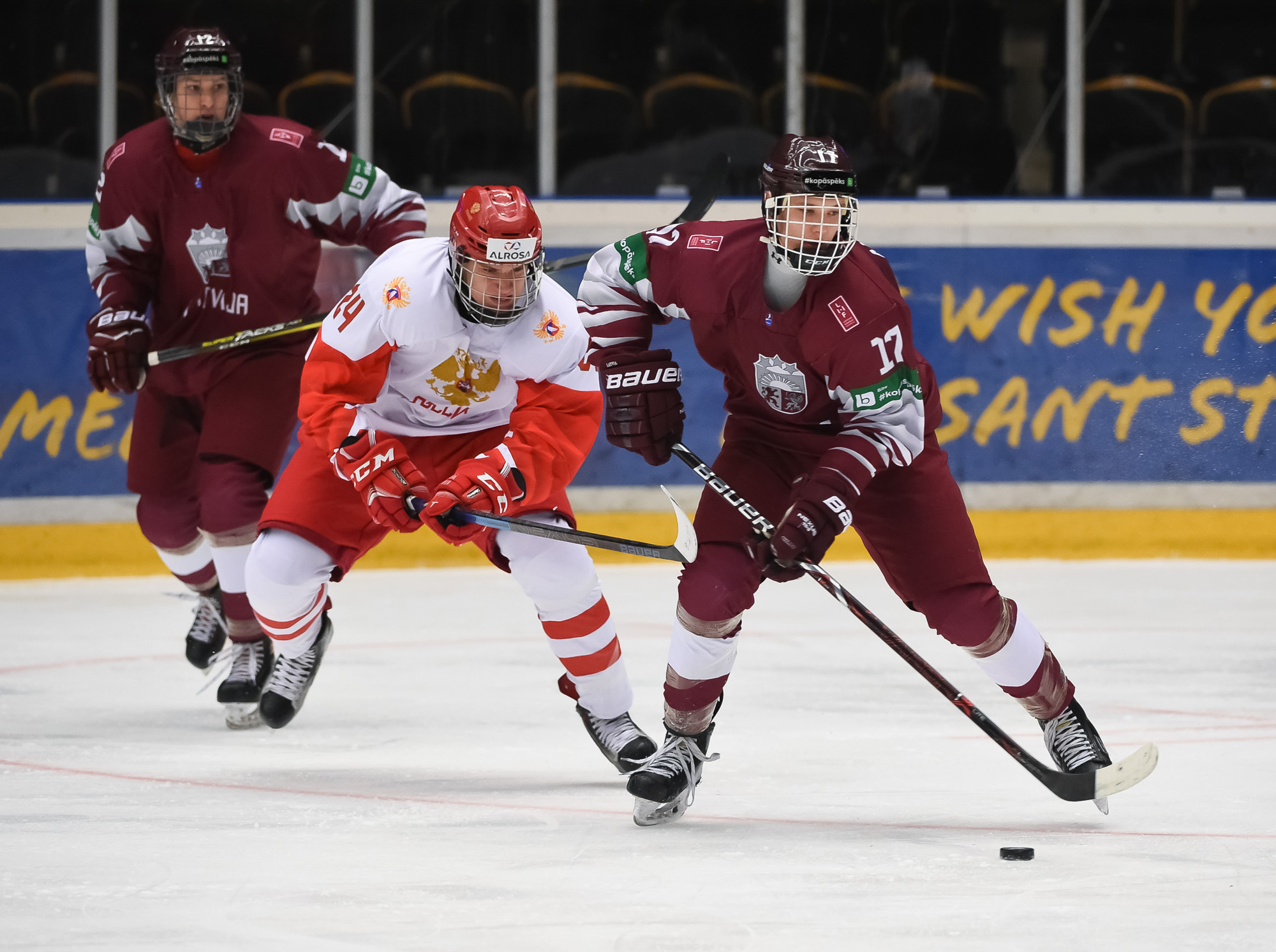 Latvian goaltender Arturs Silovs started in back-to-back games and had to be sharp as Russia looked to capitalize early. They almost scored at the end of an early power play, but Harijs Brants cleared the puck from the paint before a Russian stick could get to the puck.