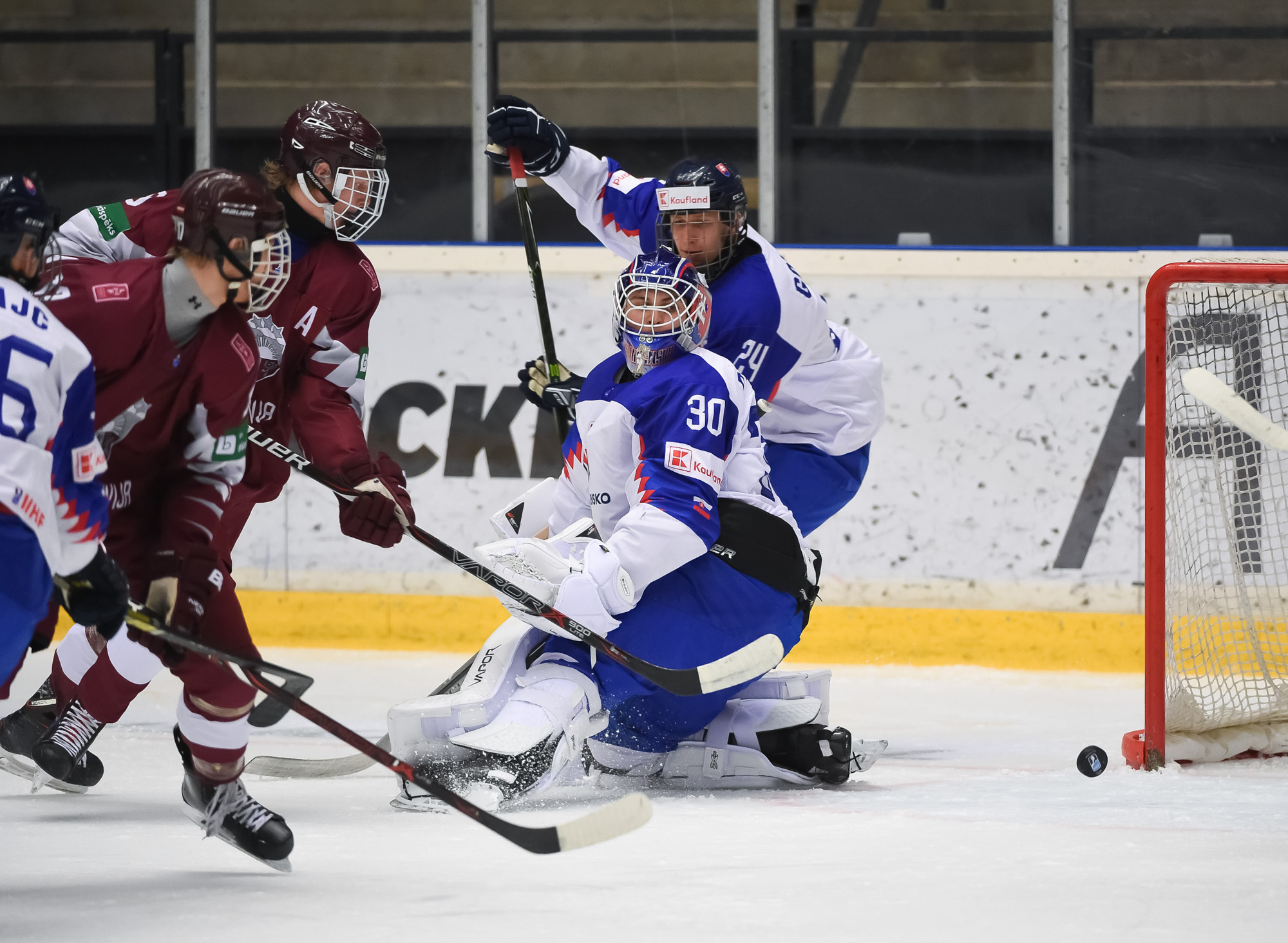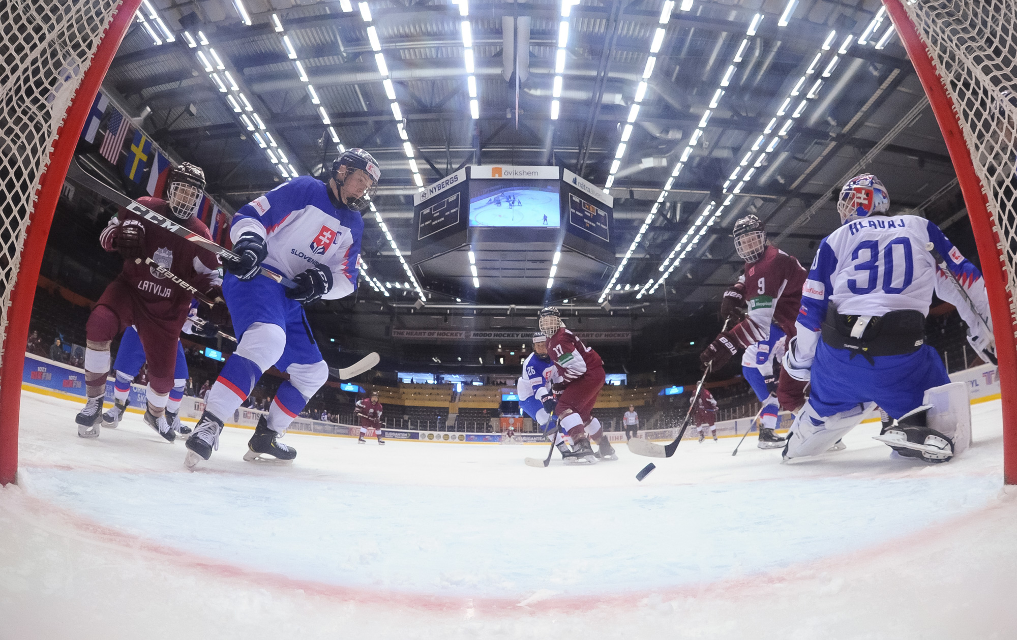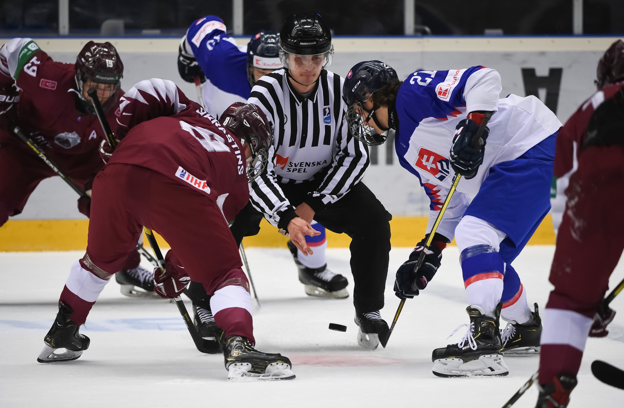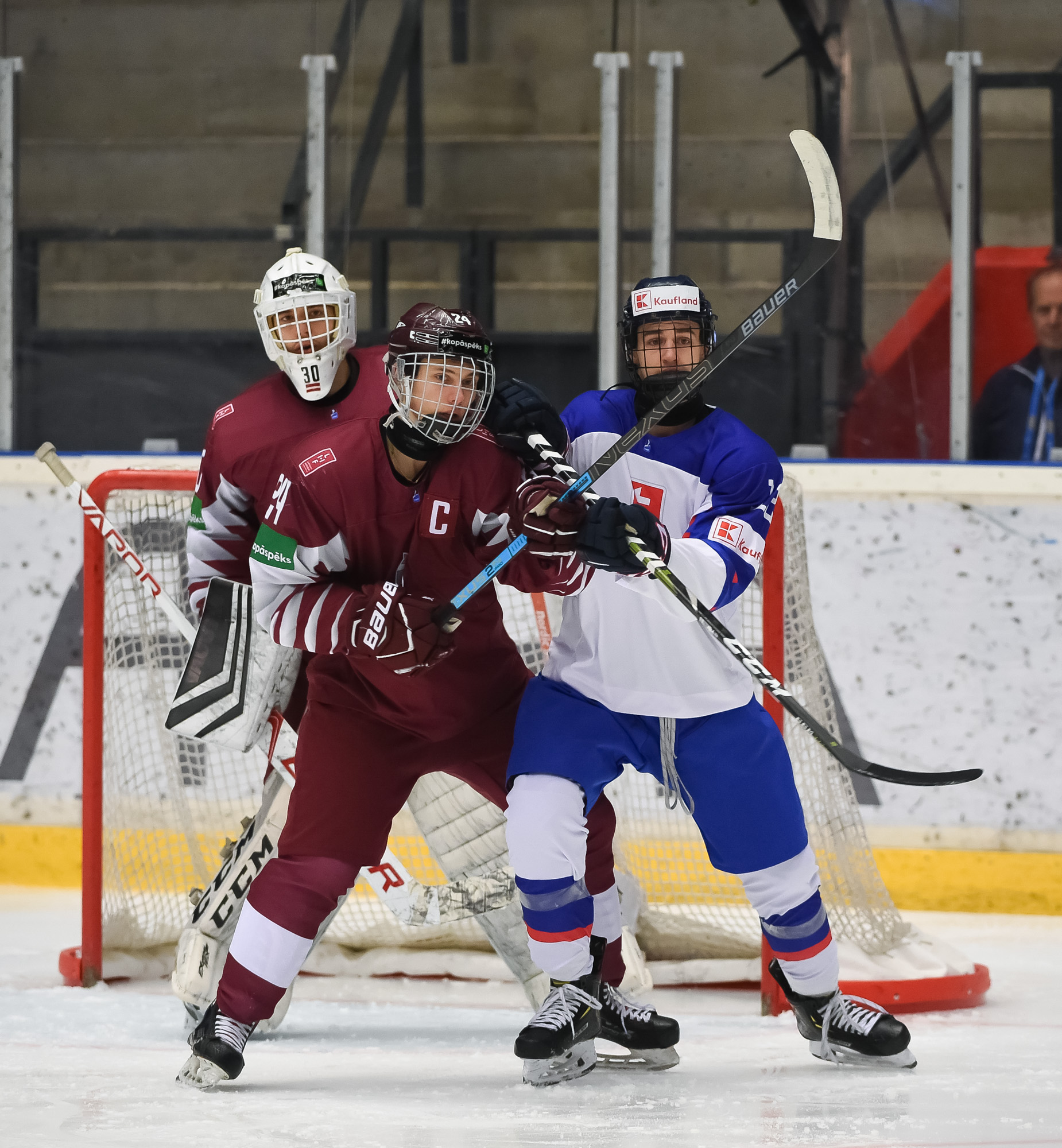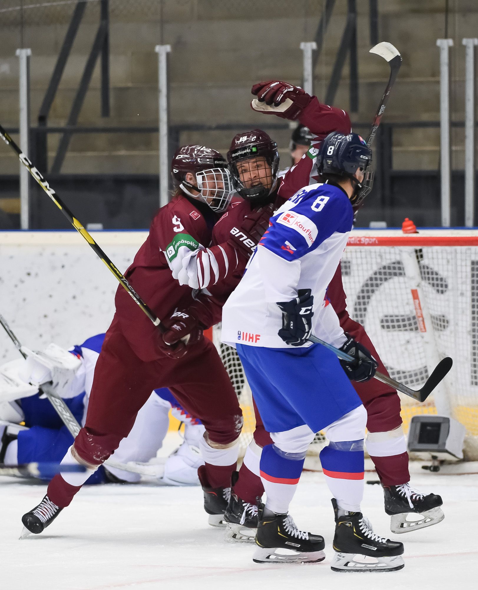 The Slovaks just couldn't find the range in the third period. When they tried to enter the Latvian zone, maroon jerseys converged on them.