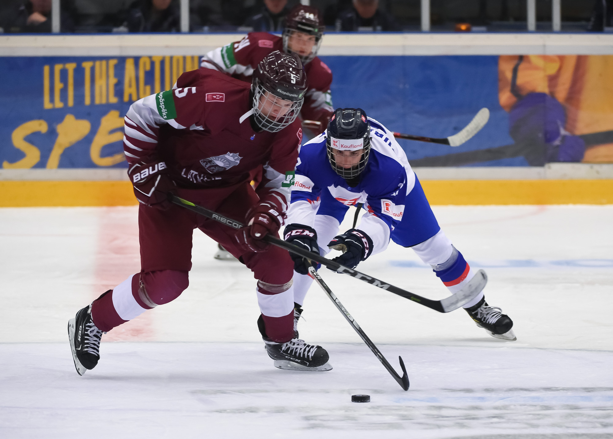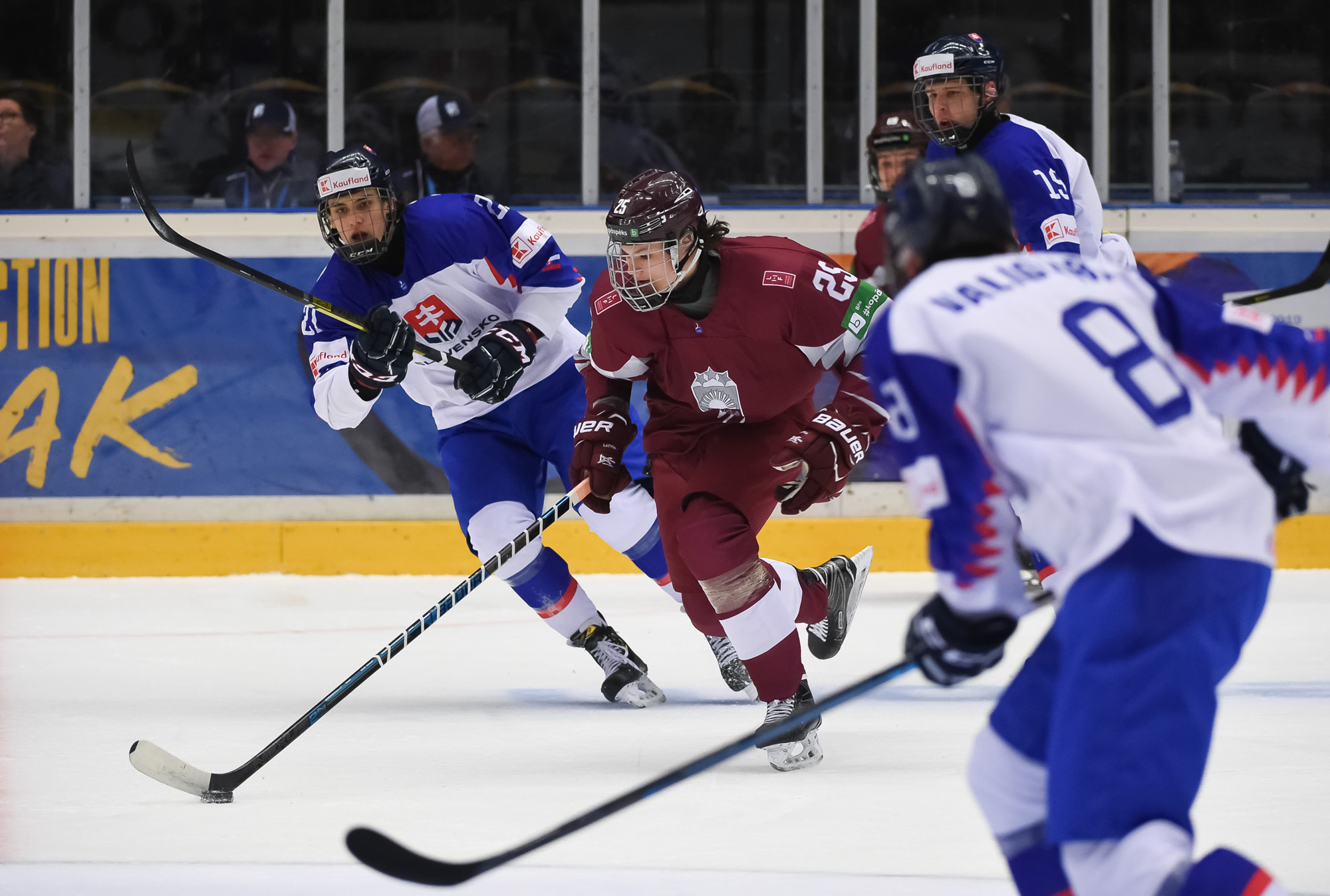 It's a huge win for a small hockey nation. Latvia blanked Slovakia 2-0 on Monday in Ornskoldsvik to earn a quarter-final berth at the 2019 IIHF Ice Hockey U18 World Championship.