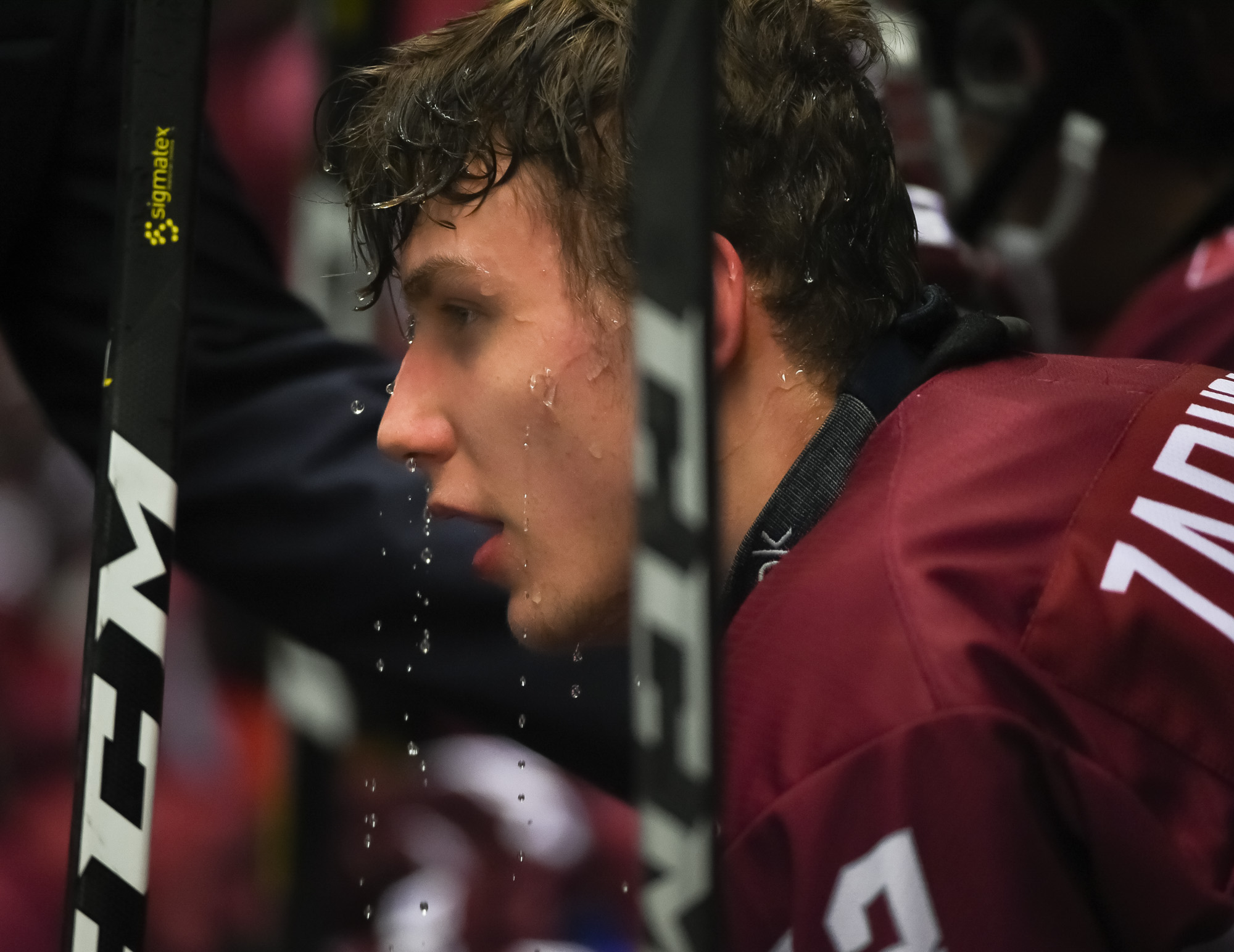 All fired-up, the Latvians continued to press. At 8:36, Jevdokimovs snared a loose puck and charged across the front of the net to slide in a backhander for a 2-0 lead.