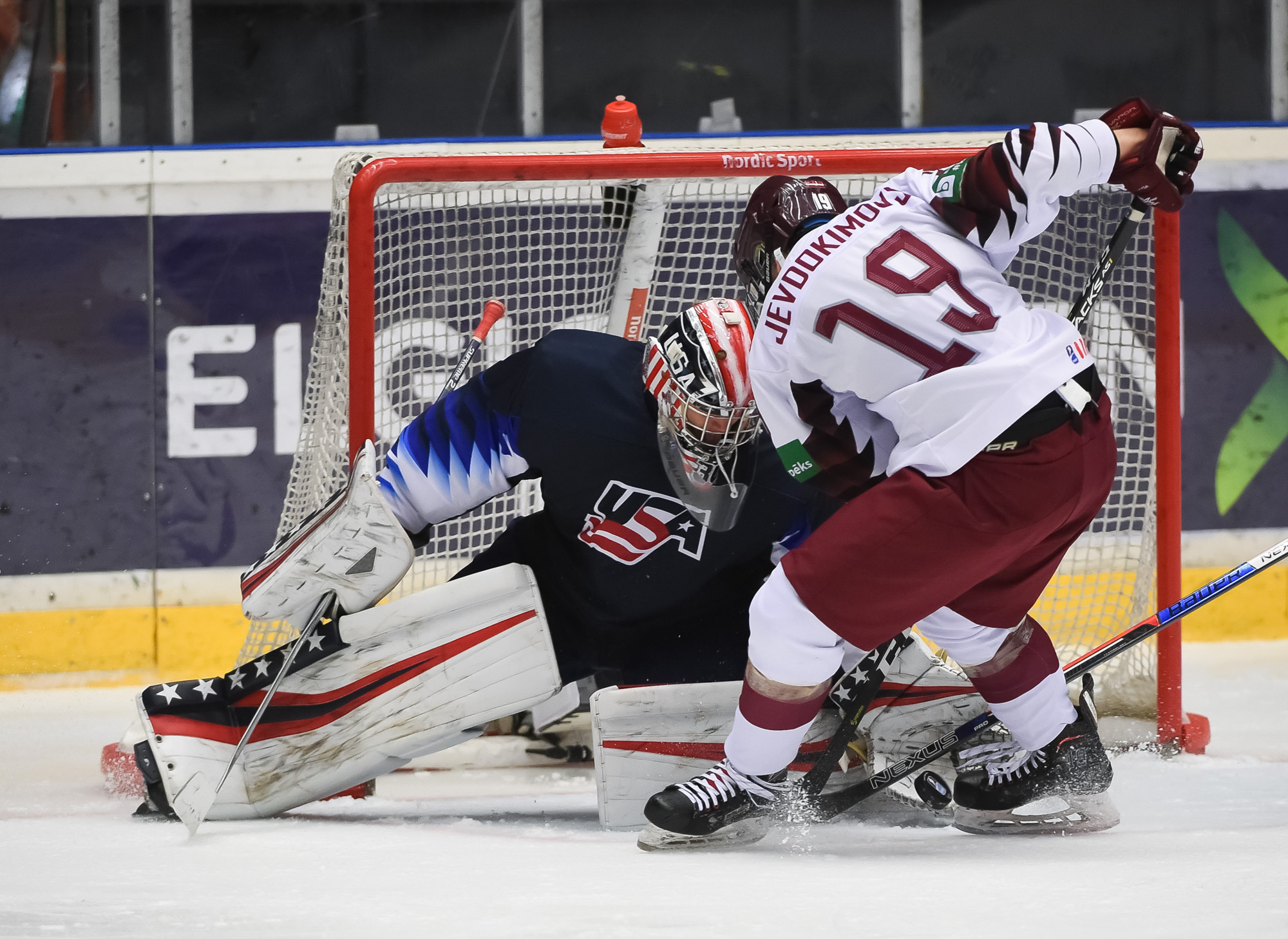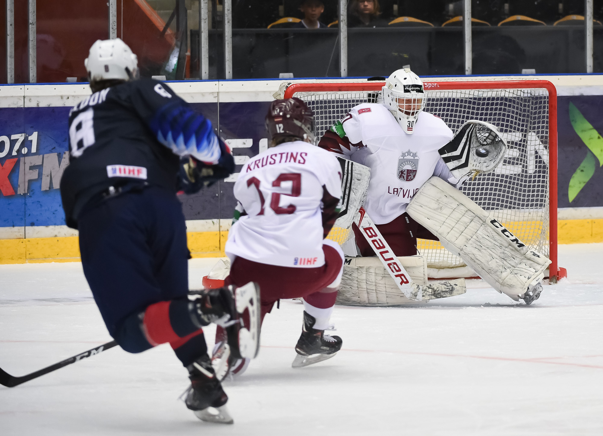Kristaps Skrastins had the only goal for Latvia, which was outshot 46-14.
