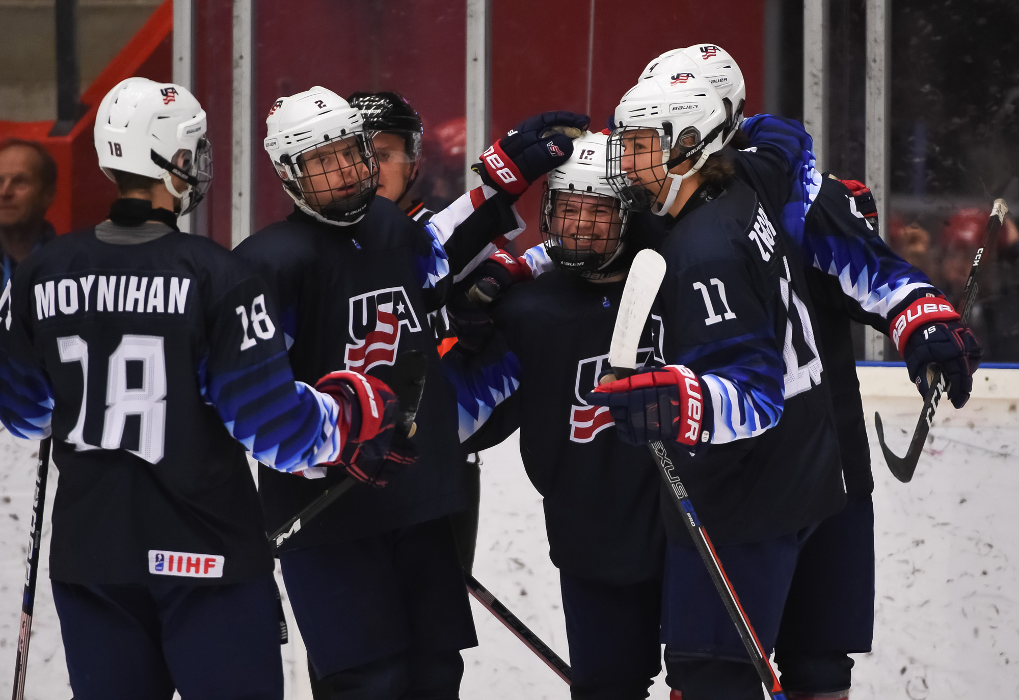Matthew Boldy and Bobby Brink had a goal and an assist apiece. Cam York added a single. Captain Jack Hughes, last year's U18 MVP and the likely #1 overall pick of the New Jersey Devils in June's NHL Draft, had two assists, as did Trevor Zegras.