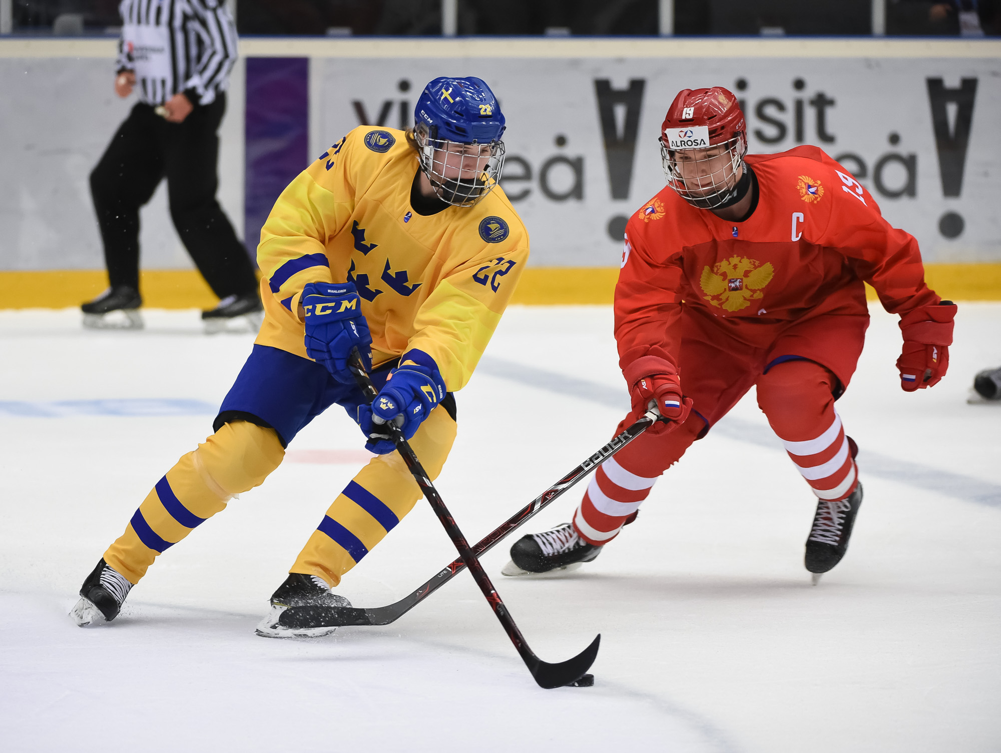 Russia simply spent too much time in the sin bin. Oscar Bjerselius almost extended Sweden’s lead with Russian captain Vasili Podkolzin off for holding, but rang it off the post. Podkolzin, considered a top-10 prospect for the upcoming NHL Draft, has had a quiet tournament with just one assist through four games.