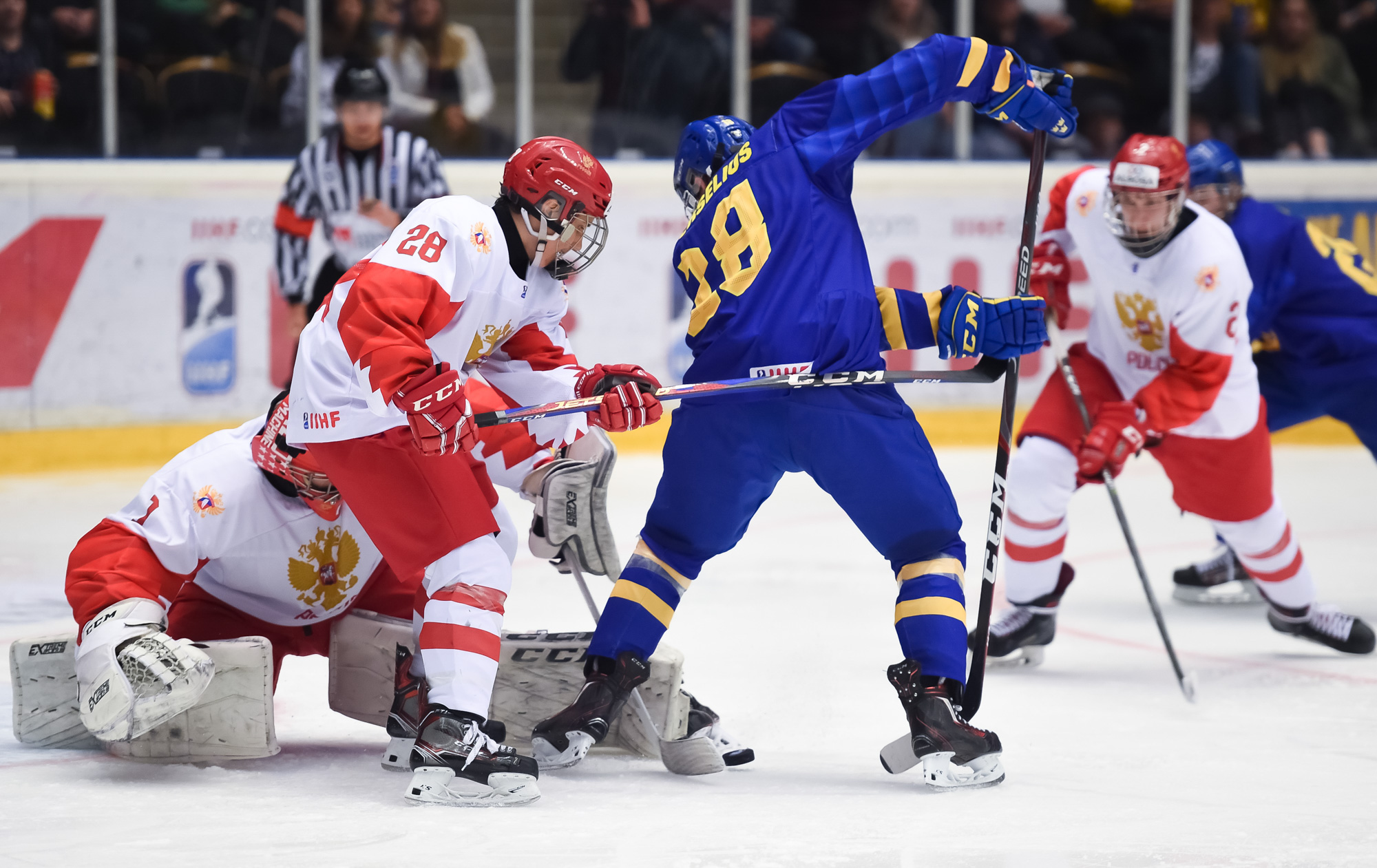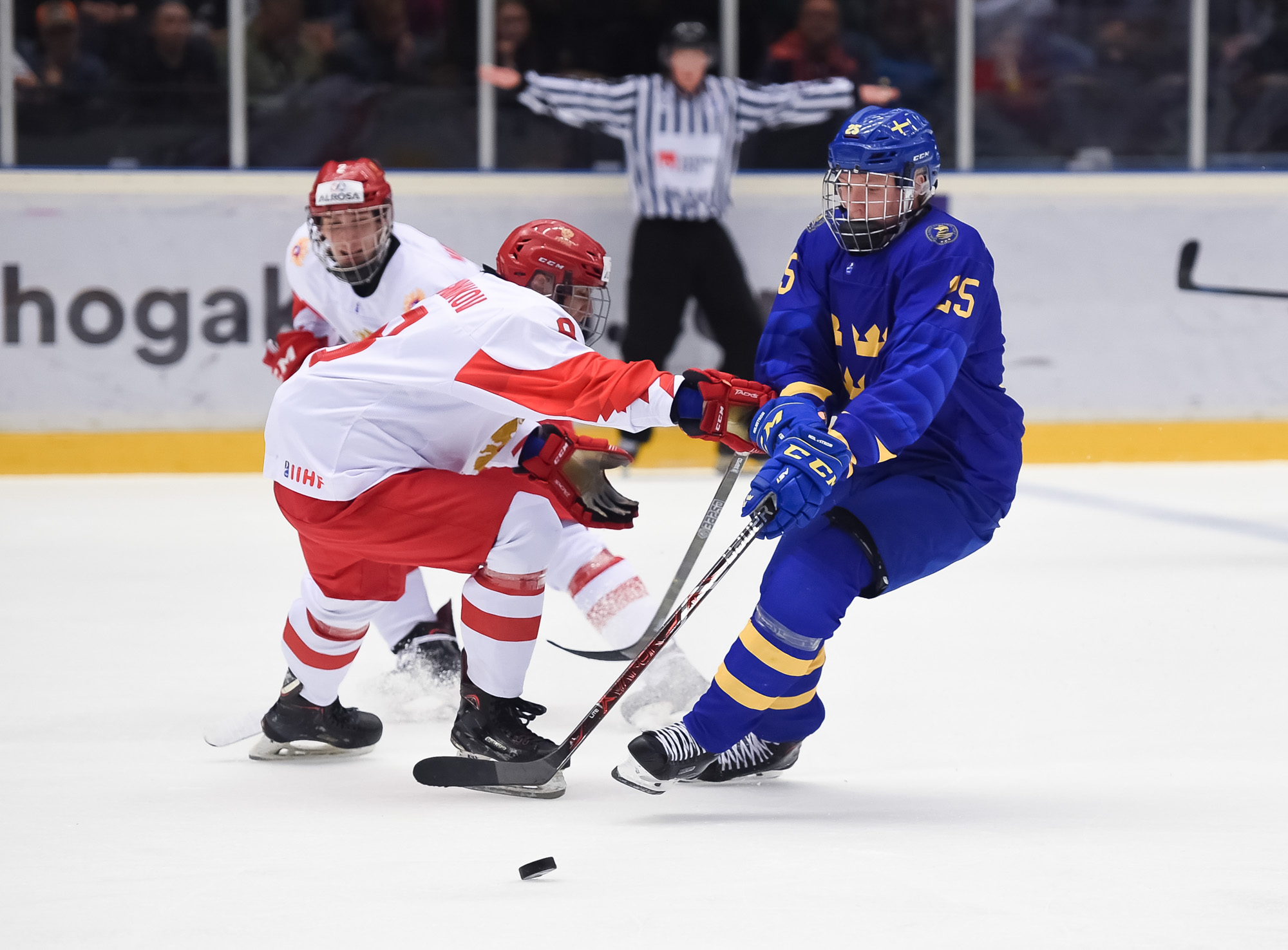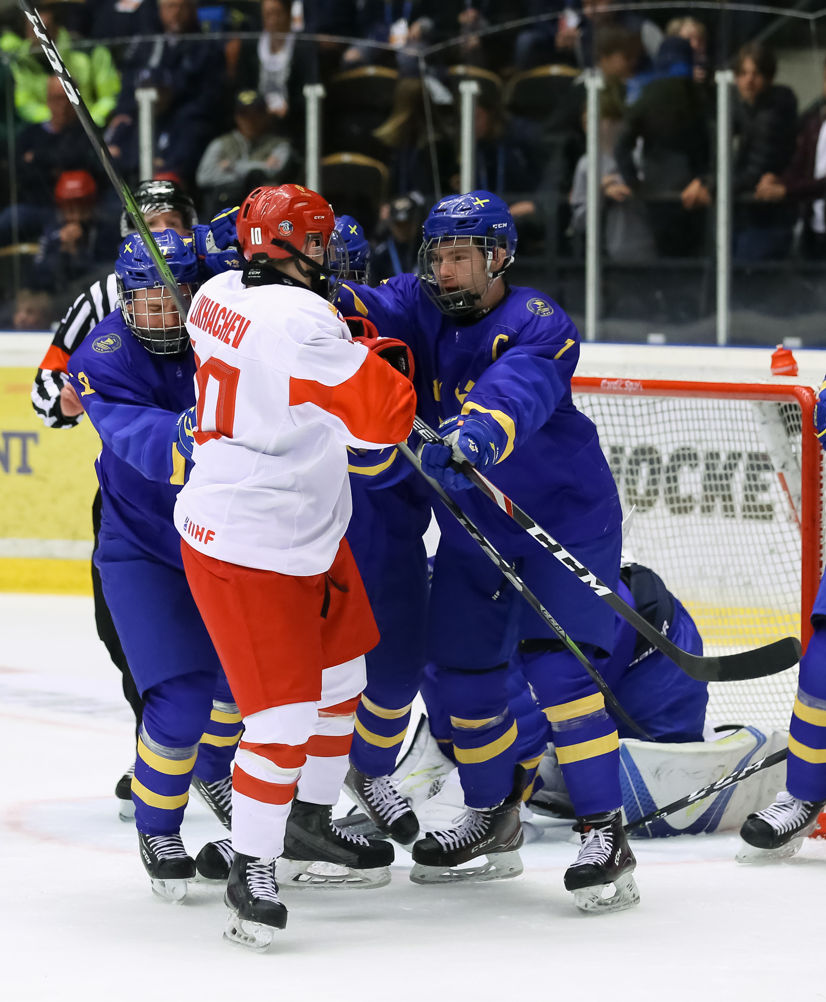 At 11:48, Podkolzin whooped it up after he got the puck from Amirov, cut to the net and beat Alnefelt with a power move. The officials initially waved the goal off and signalled for a goalie interference penalty. However, after a brief review, the call was reversed and the score was 2-1 Sweden.