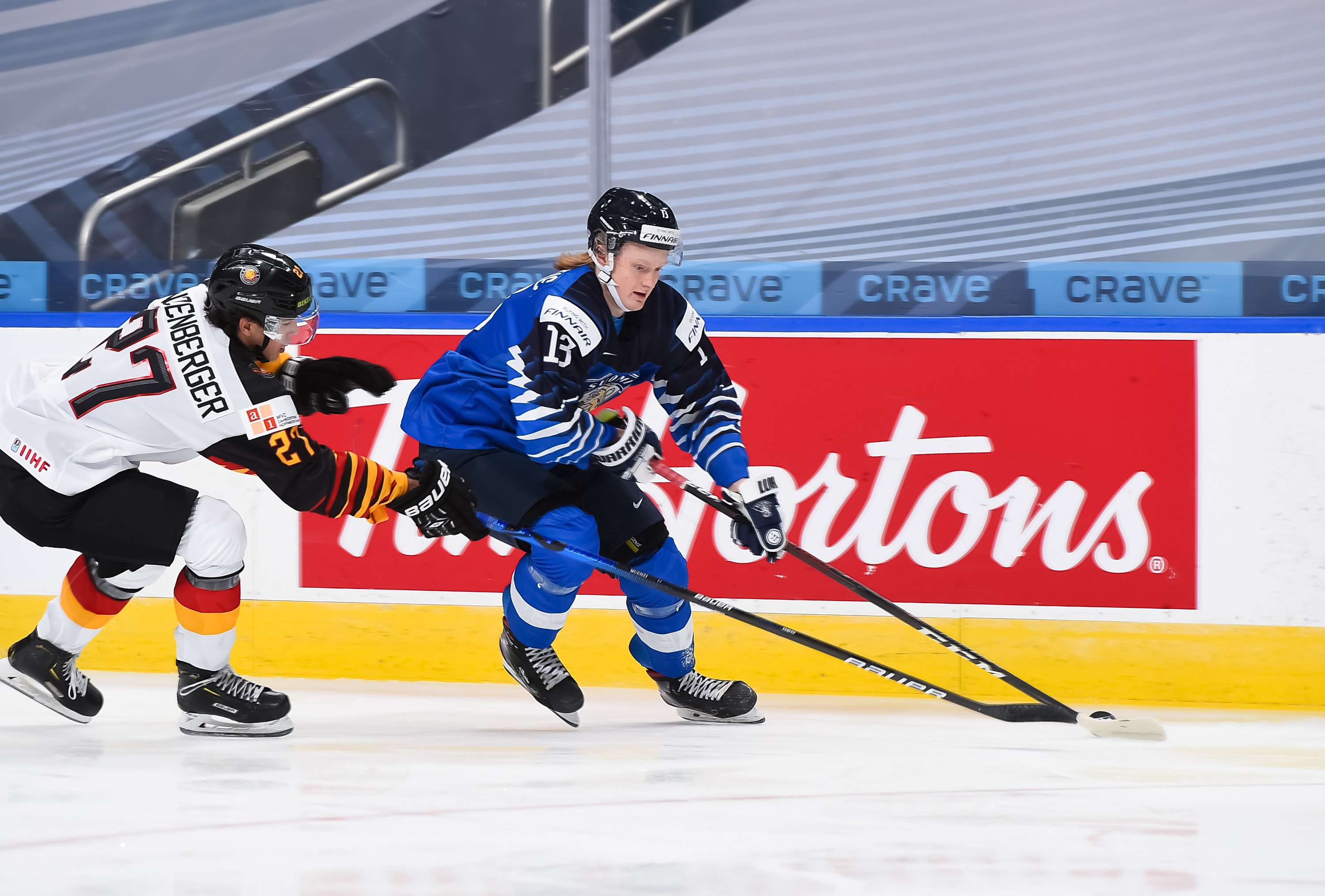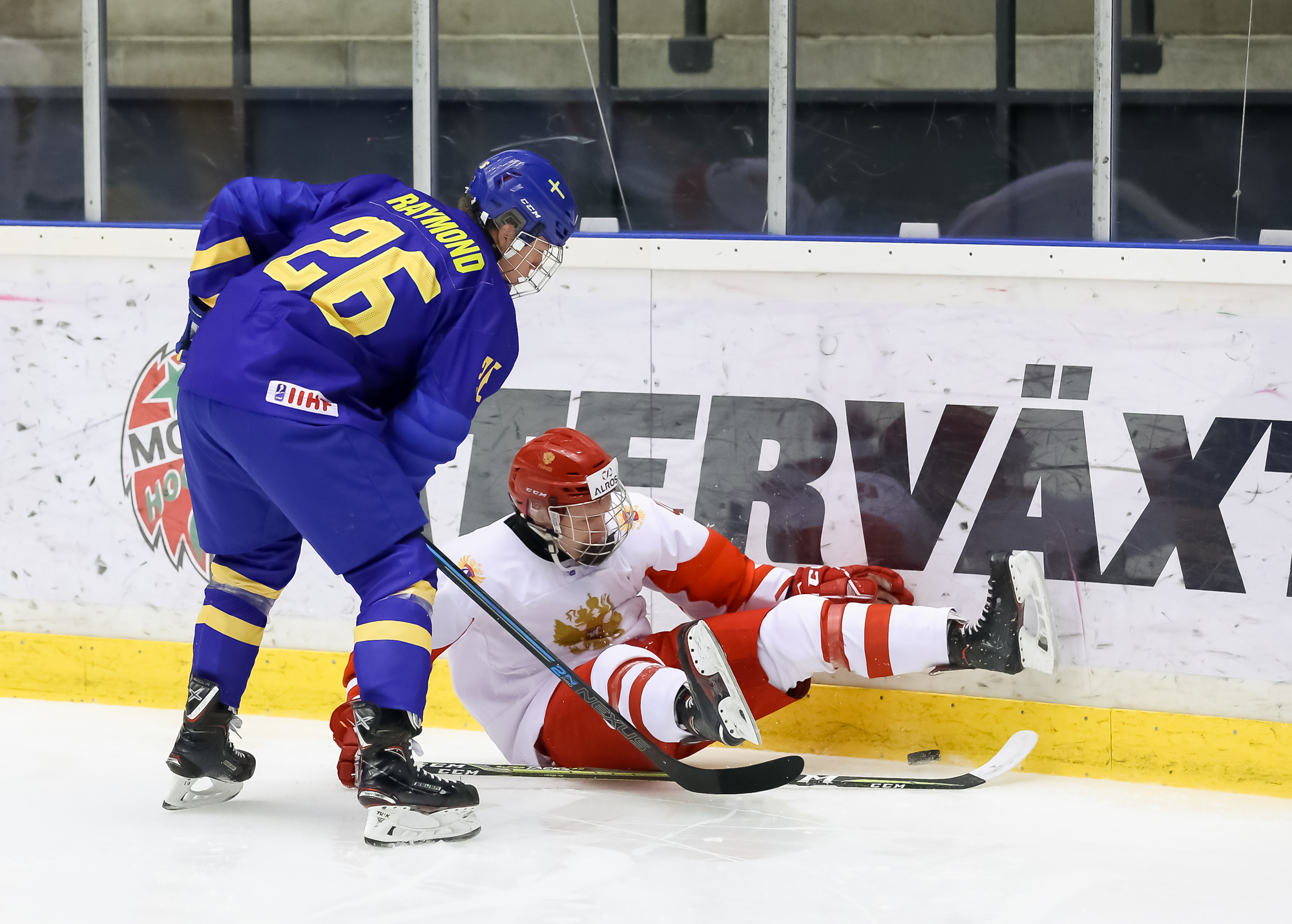It took a spectacular solo effort by Raymond to open the scoring and ignite the Fjallraven Center crowd of 5,602 at 9:30. Blitzing down left wing, he turned Russian defenceman Alexander Kirpichnikov inside out like some hybrid of 1980’s Edmonton Oilers star Glenn Anderson and a young Alexander Ovechkin. The 2002-born Frolunda Gothenburg forward zinged the puck high past Askarov’s stick side.