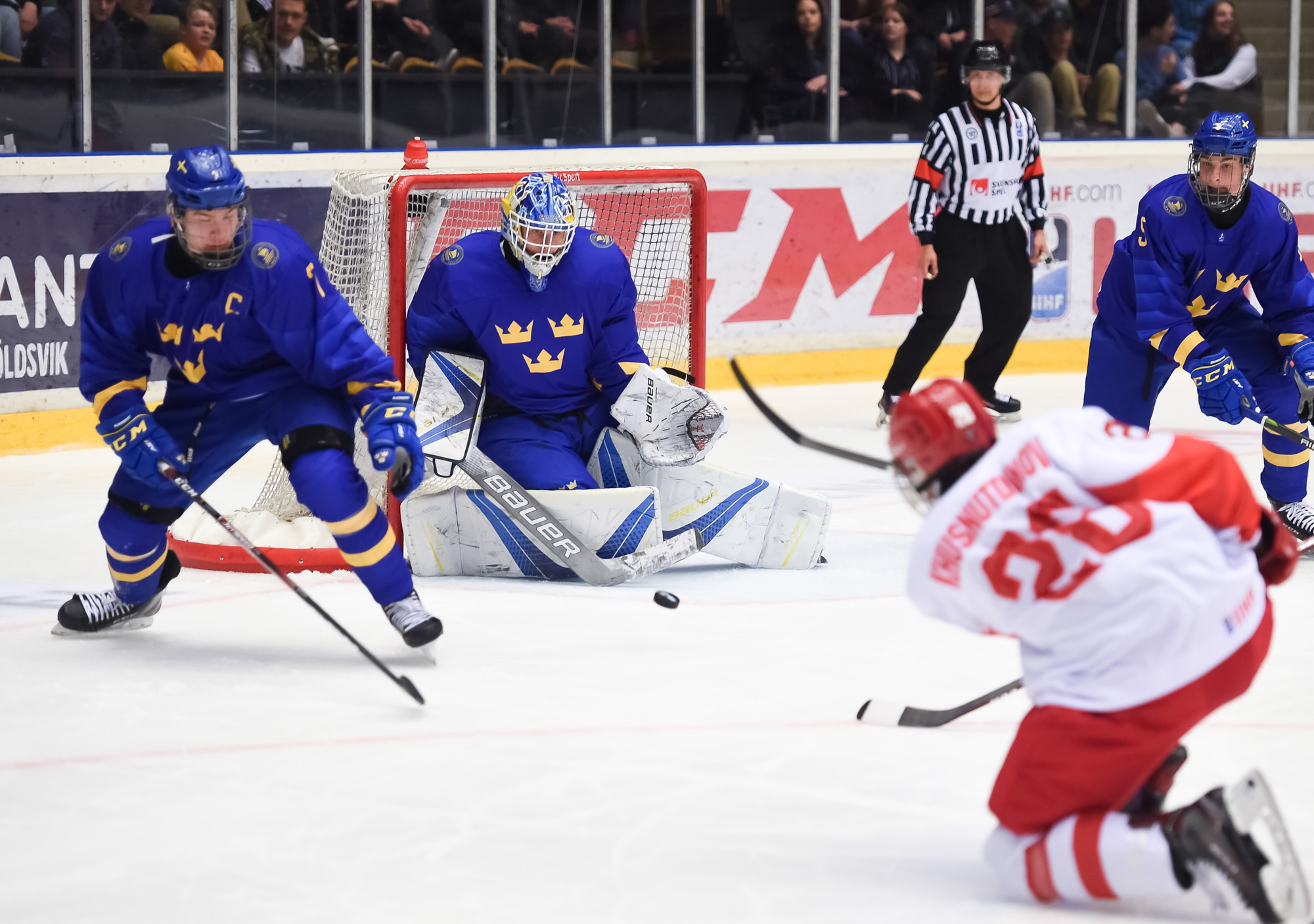 Sweden's Hugo Alnefelt shone in his goaltending duel with Askarov. The Russians outshot Sweden 38-30.