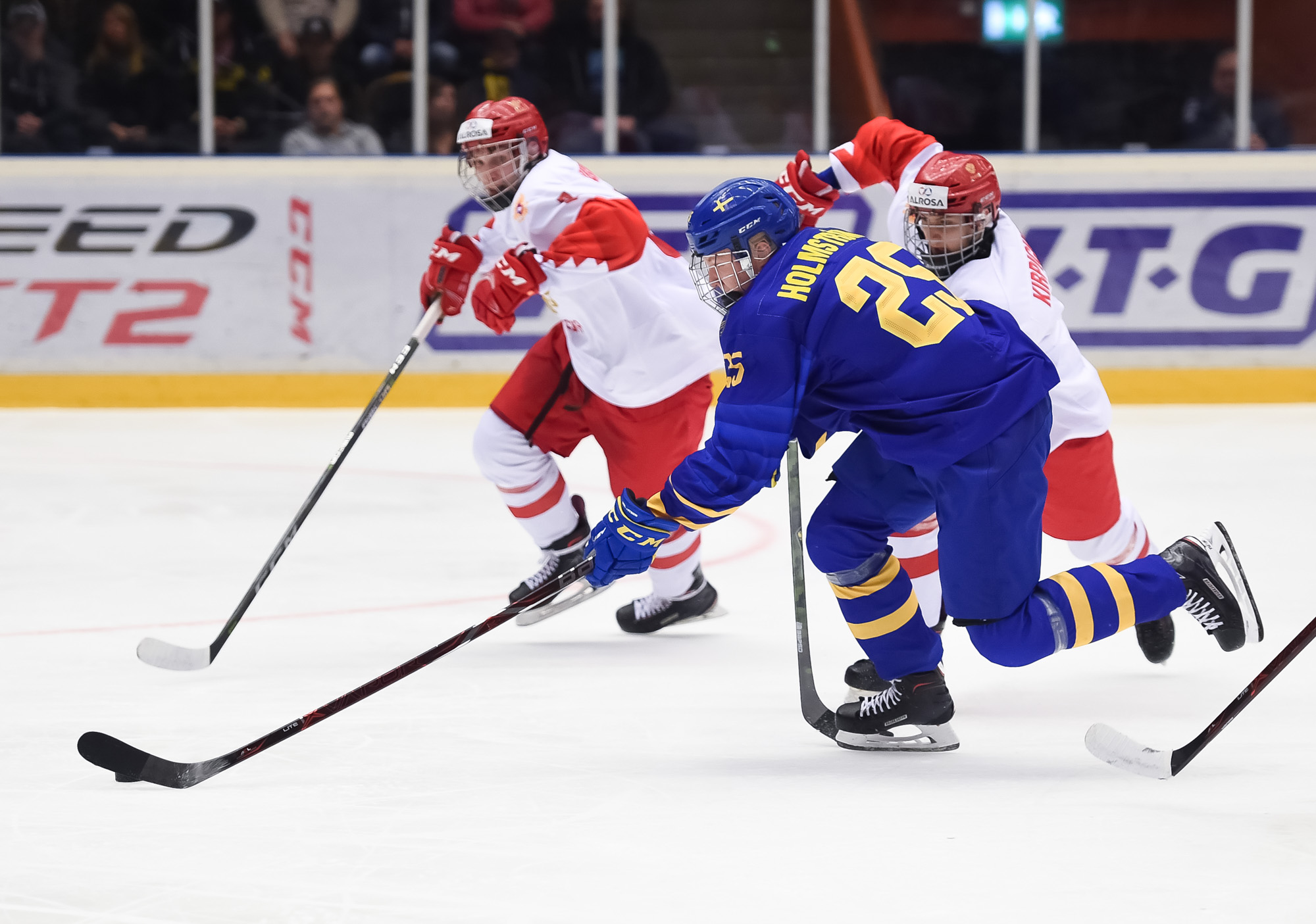 In regulation time, Simon Holmstrom also added a single for Sweden. Russian captain Vasili Podkolzin and team scoring leader Rodion Amirov had a goal and an assist apiece. Maxim Groshev scored, and defenceman Marat Khusnutdinov contributed two helpers.