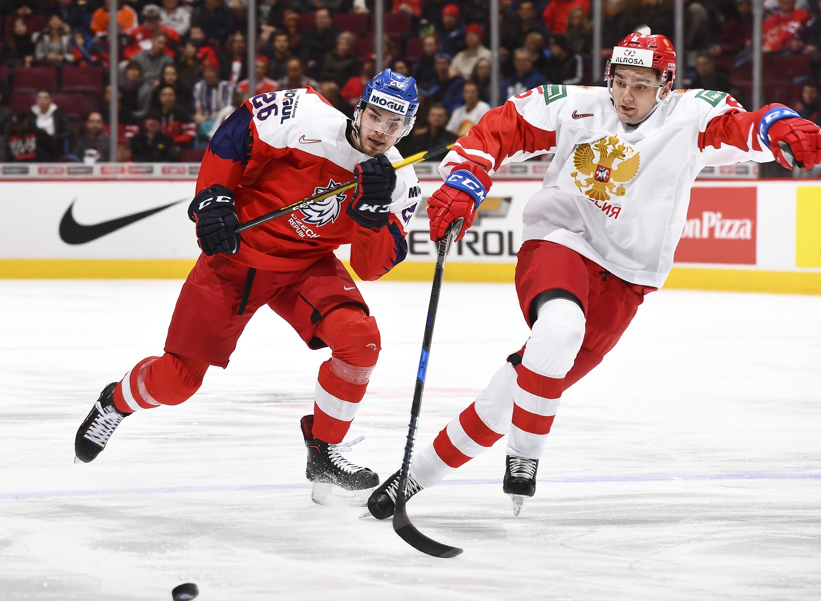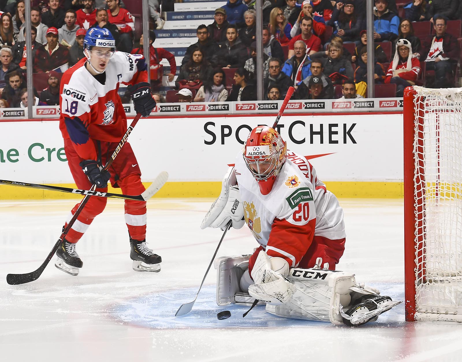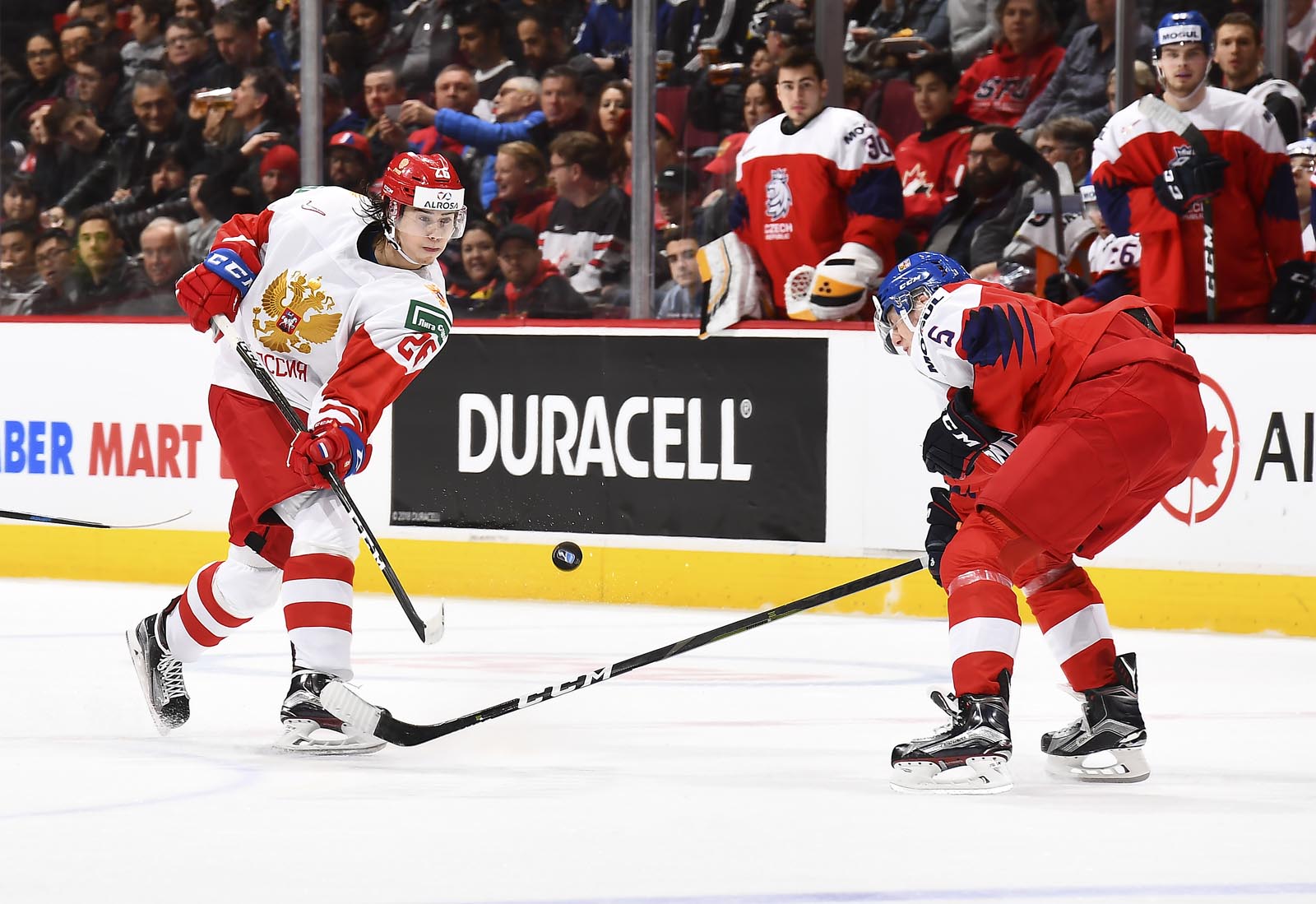 Russia scored two goals on Czech power plays to defeat the Czechs 2-1 at Rogers Arena this afternoon. The only game in Vancouver today at the 2019 IIHF World Junior Championship was enjoyed by an impressive crowd of 14,523.