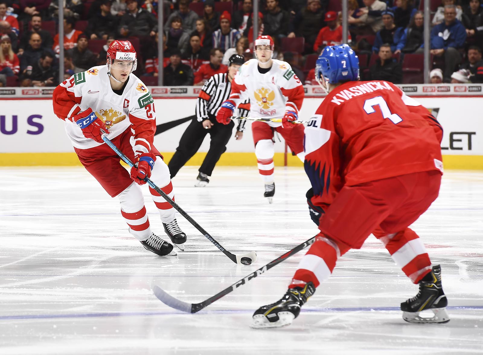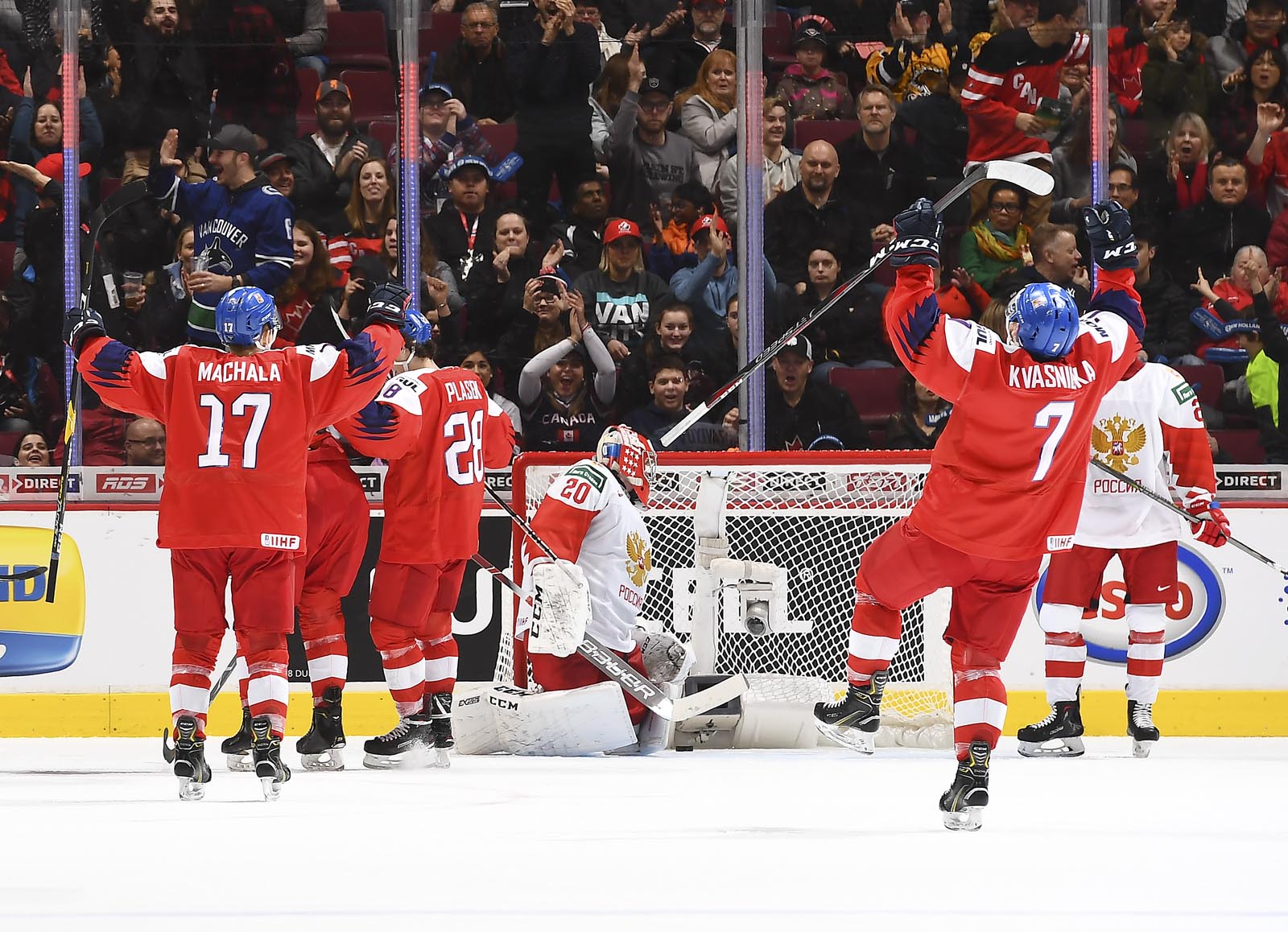 With the win, Russia stays a perfect 2-0-0-0, tied with Canada atop Group A, while the Czechs fall to 0-1-0-1 and remain in third place. The win ensures a spot in the quarter-finals for Russia.
