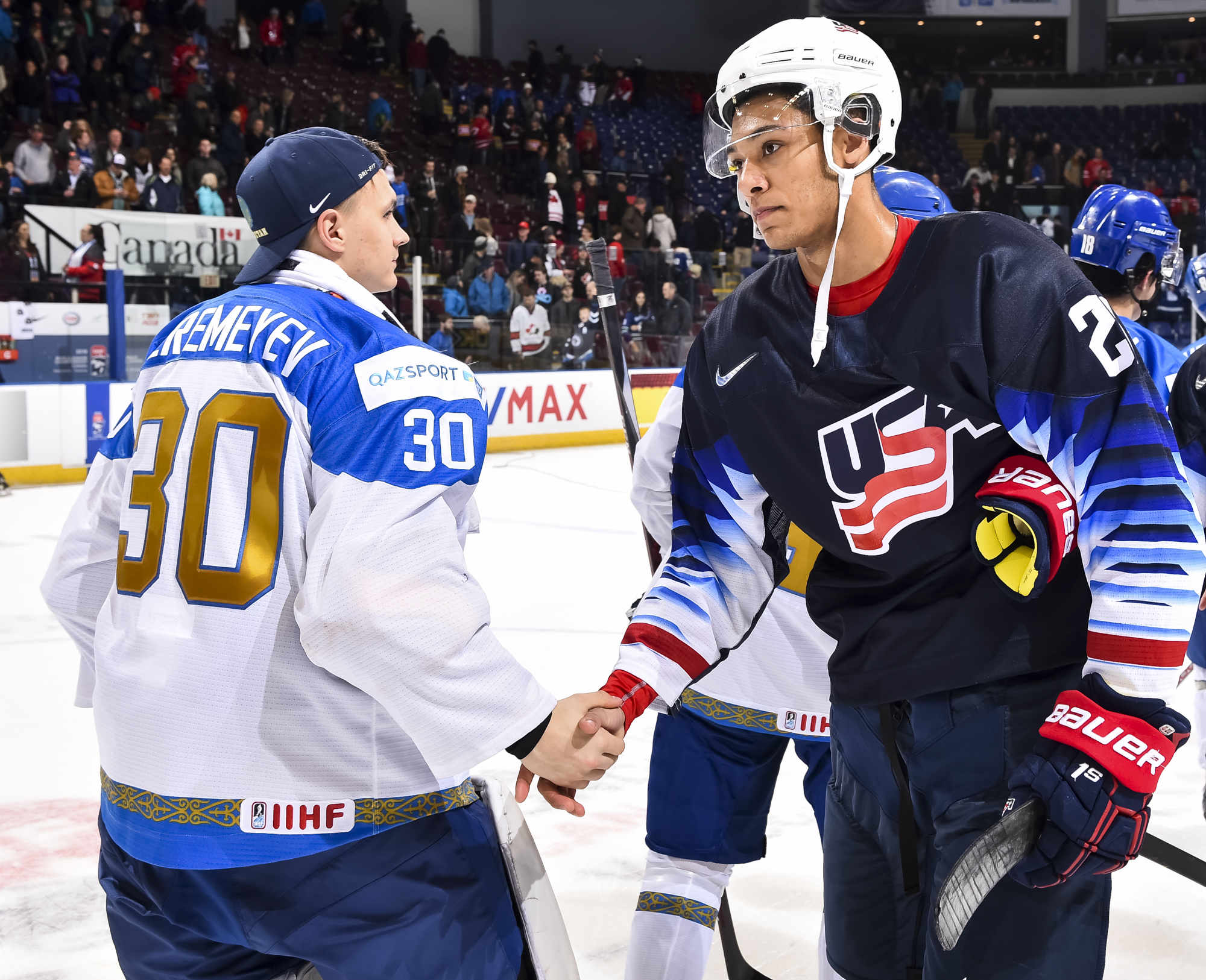 Even without superstar prospect Jack Hughes, the U.S. easily disposed of Kazakhstan on Friday night with an 8-2 victory in Victoria. Shots were 66-13 for the Americans.
