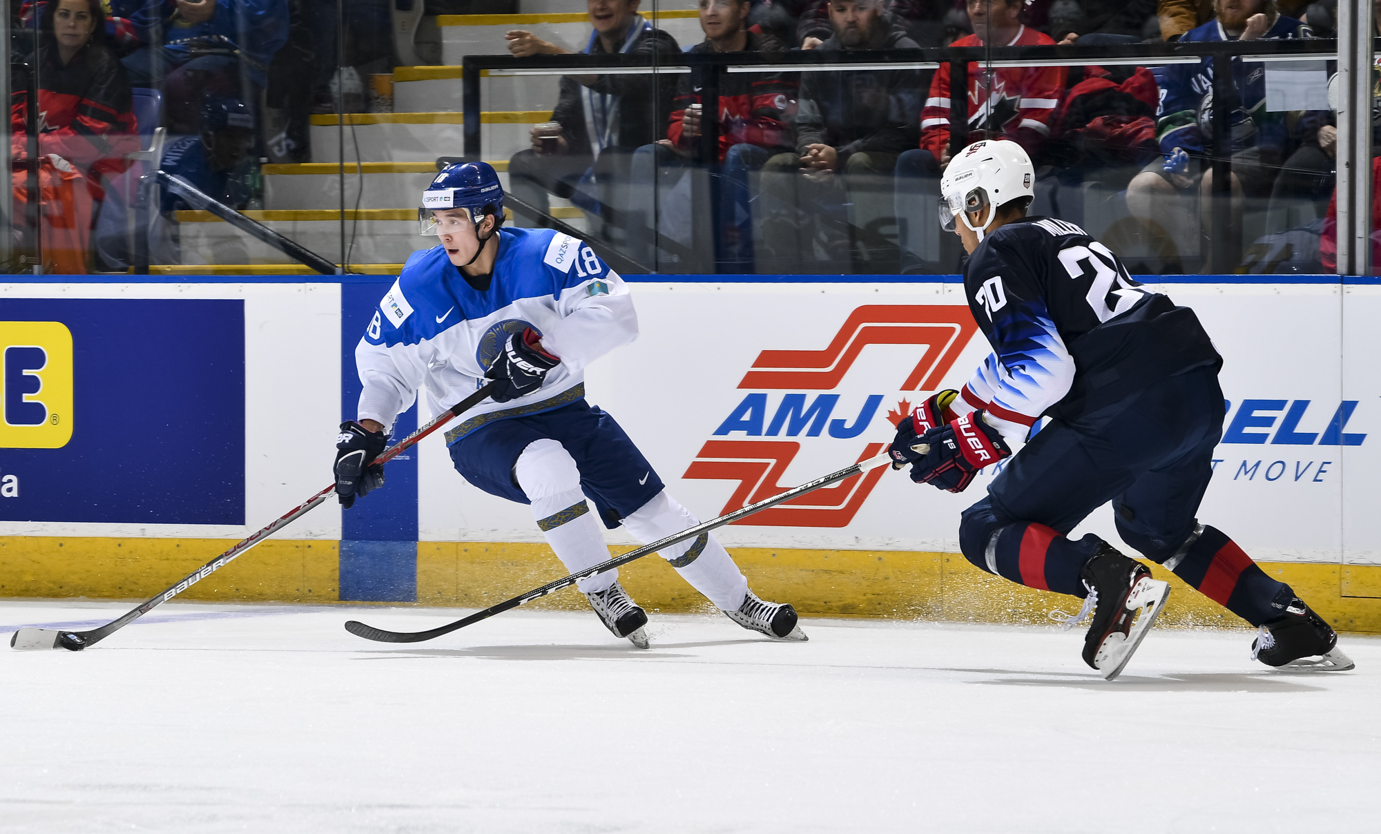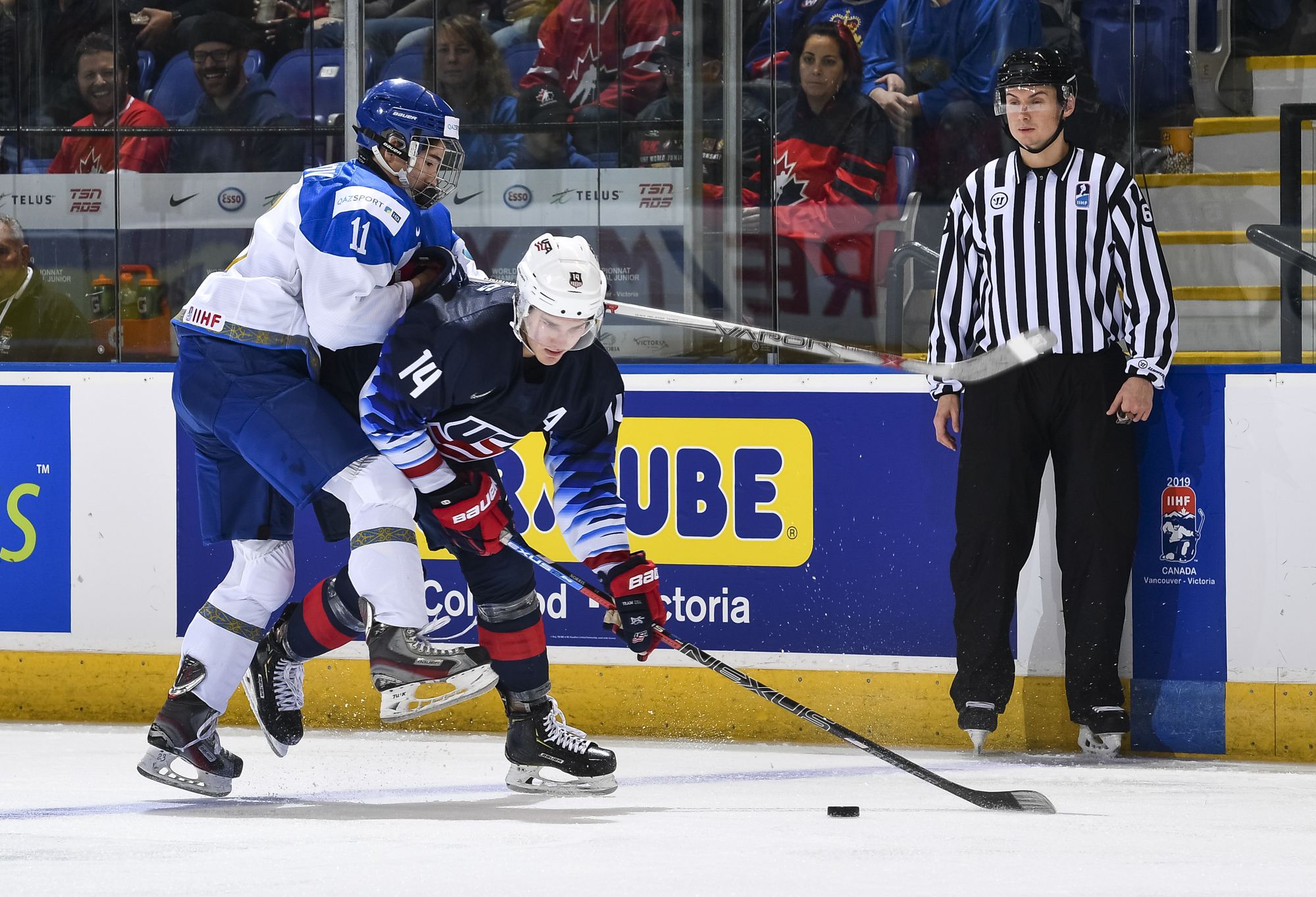 Jack Hughes, the presumptive #1 overall pick for the 2019 NHL Draft, was scratched for precautionary reasons. Team officials said Hughes was day-to-day. Fortunately, the MVP of the 2018 IIHF Ice Hockey U18 World Championship in Russia wasn't missed too much, since his linemates from that silver-medal U.S. squad filled in dominantly. As did the rest of the Stars and Stripes gang.