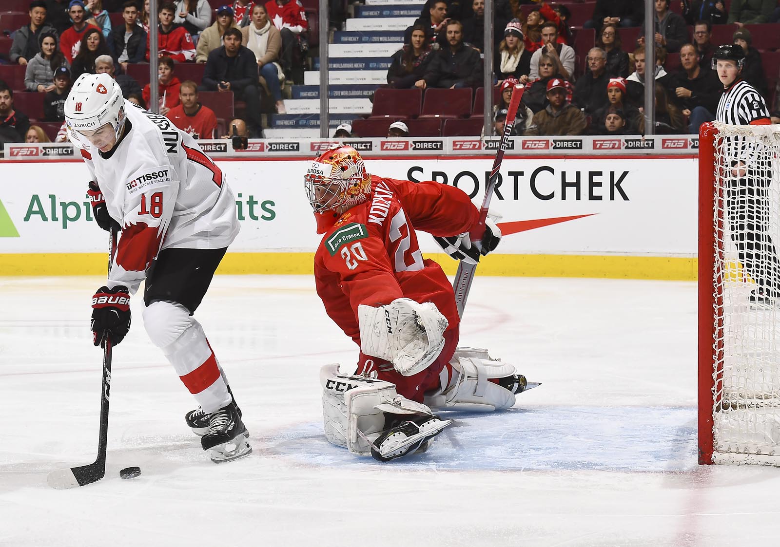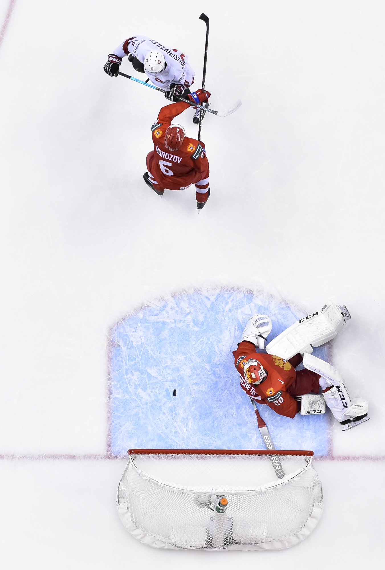 Early in the third period, the Swiss kept coming, but Kochetkov barred the door. And Slepets, in a classic display of Russian opportunism, split the Swiss defence in the neutral zone for a breakaway and slid a backhander through Hollenstein's legs at 6:33.