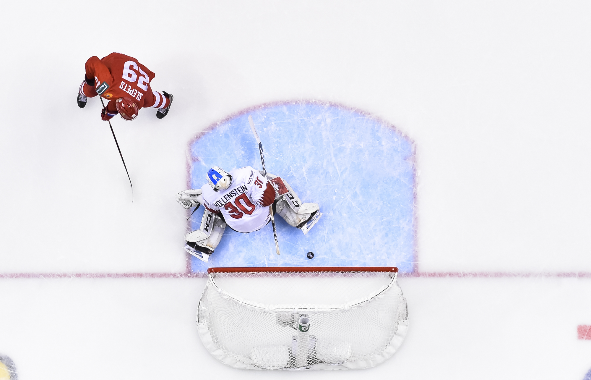 Slepets opened the scoring for Russia at 4:25. The Lokomotiv Yaroslavl forward got all kinds of time and space as he stickhandled off the right side boards and popped a forehand deke through Swiss starter Luca Hollenstein’s pads.