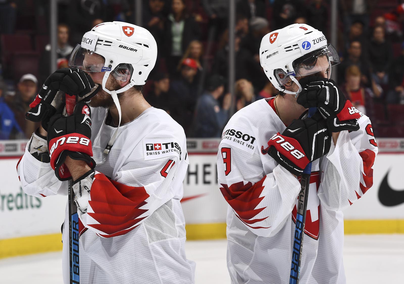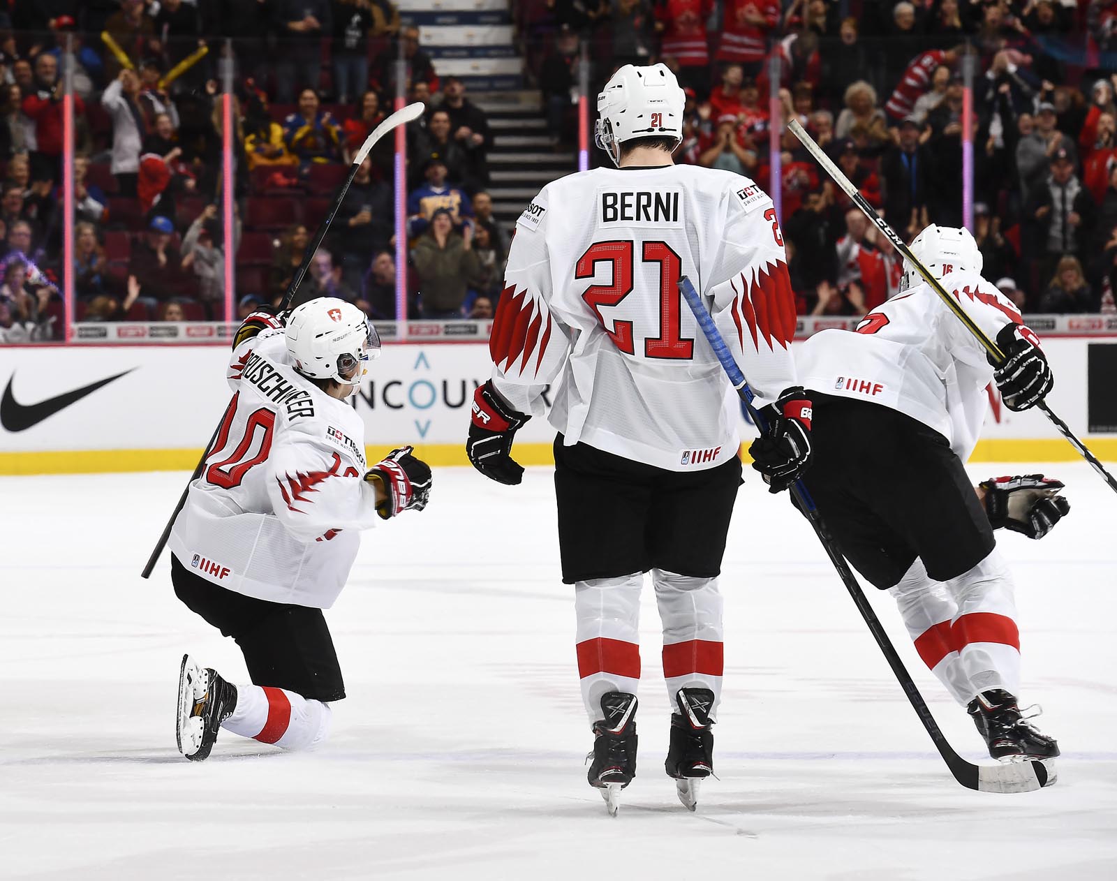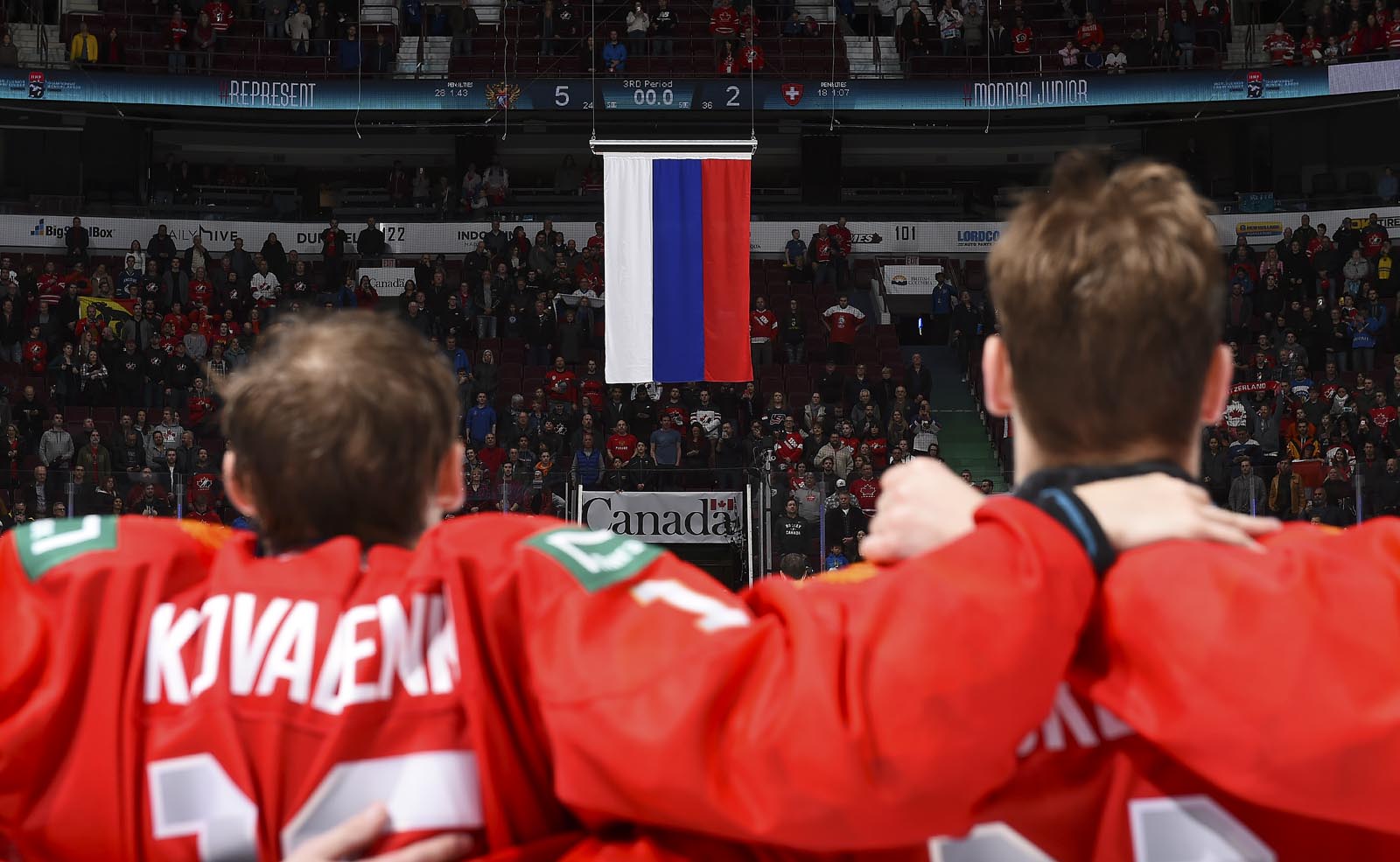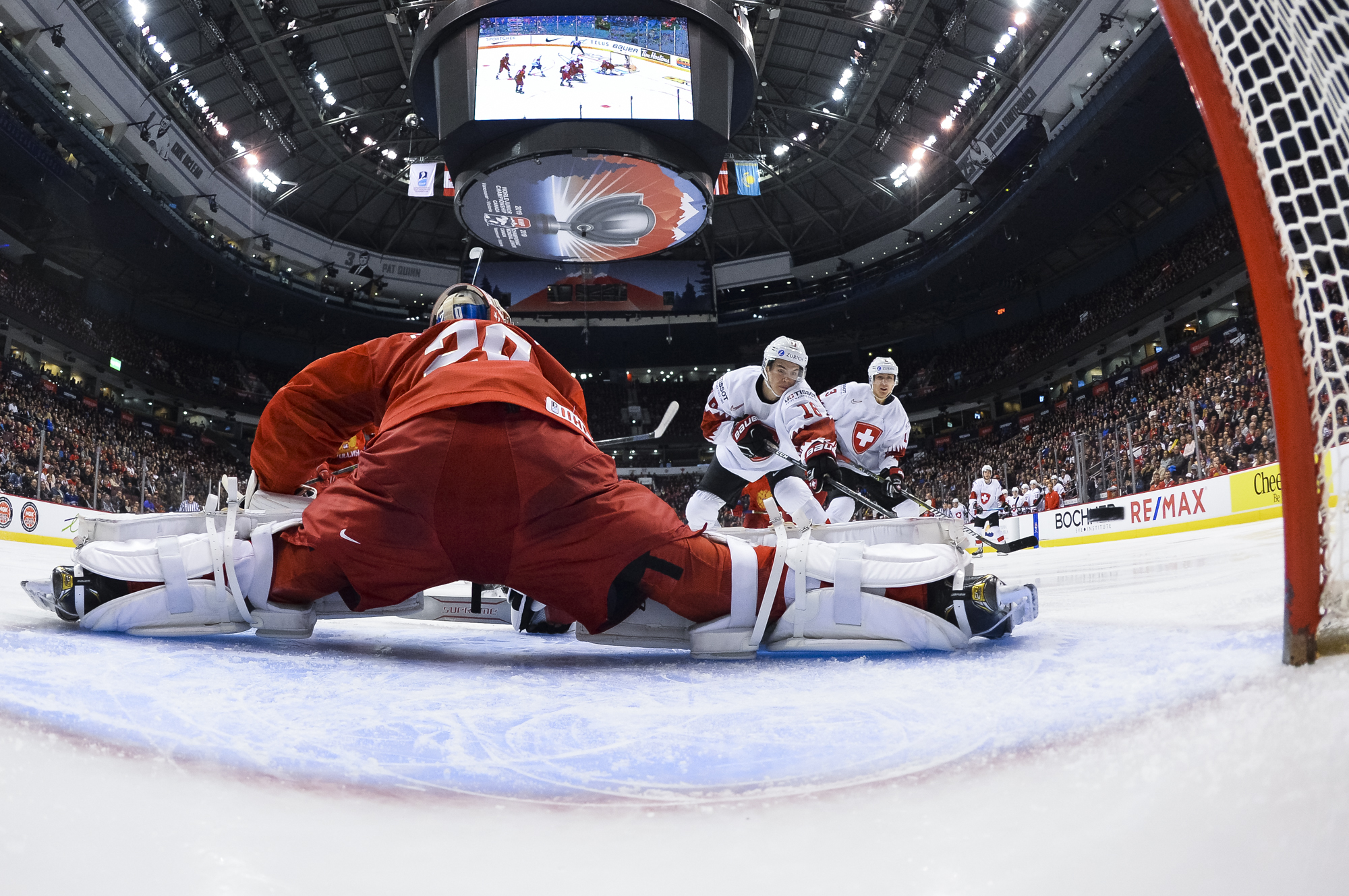 The red-and-white, predominantly Canadian fans urged the underdogs on with chants of "Let's go Switzerland!", plus "Defence!" during a mid-game Russian power play.