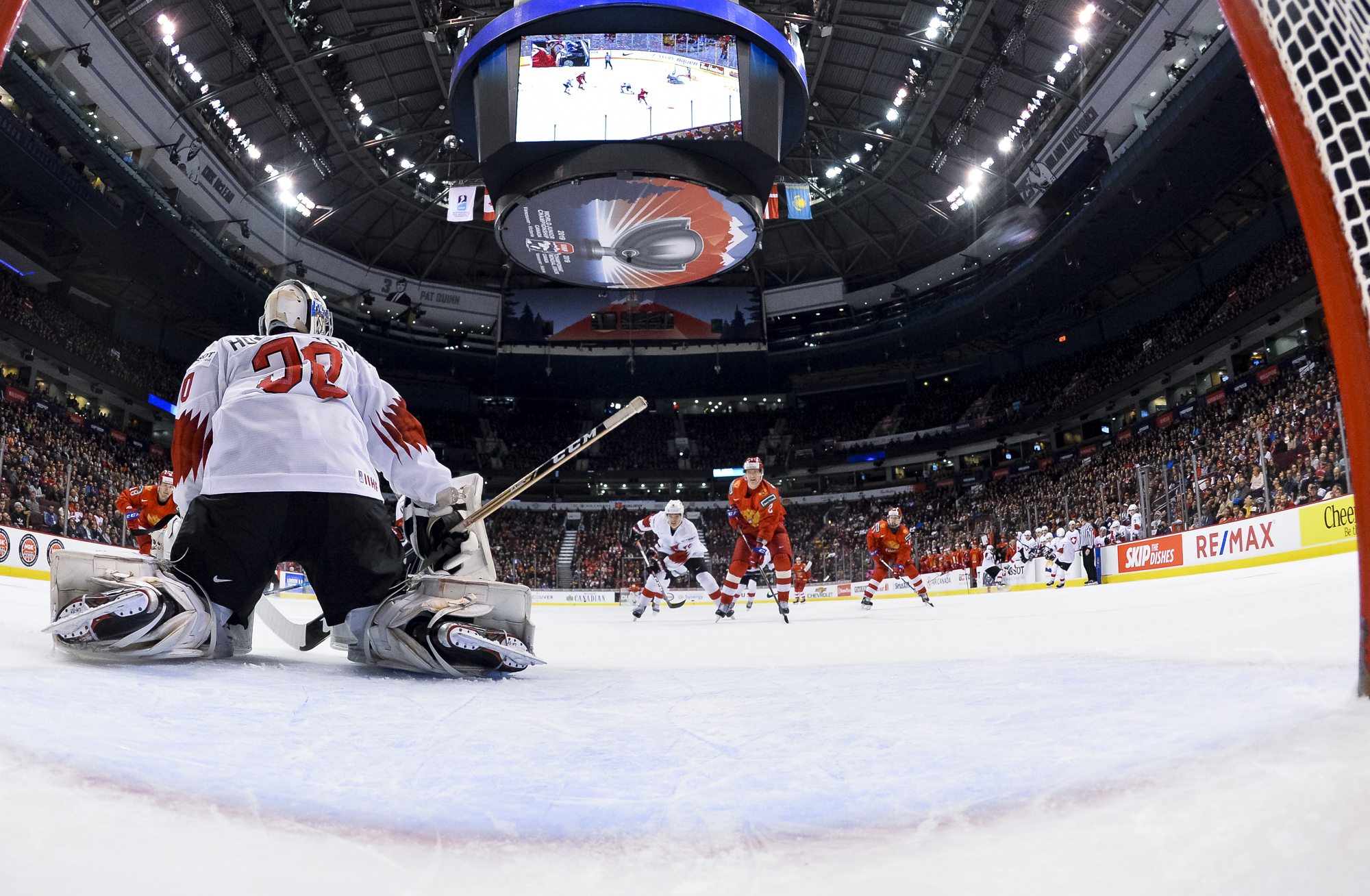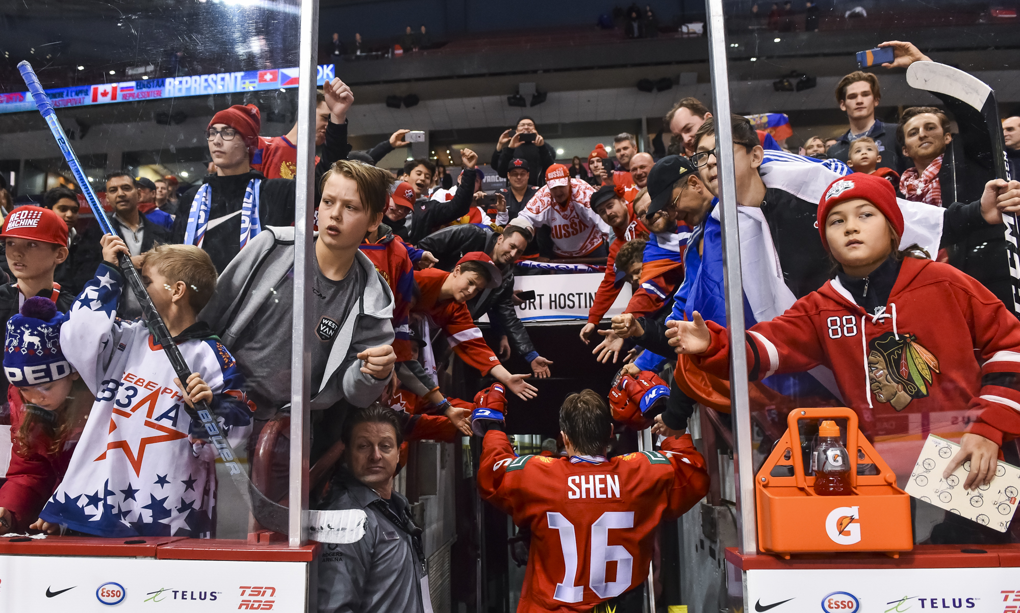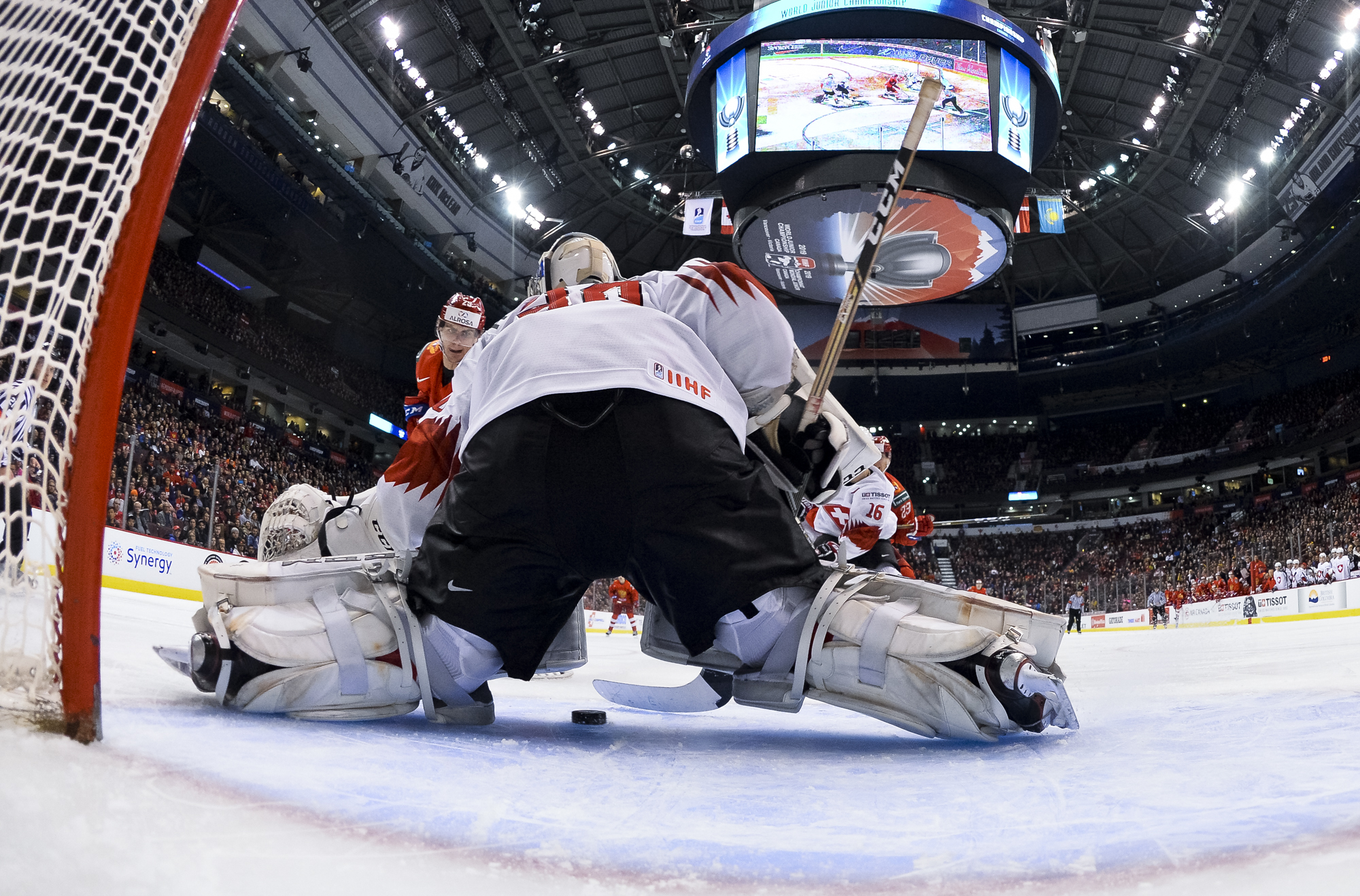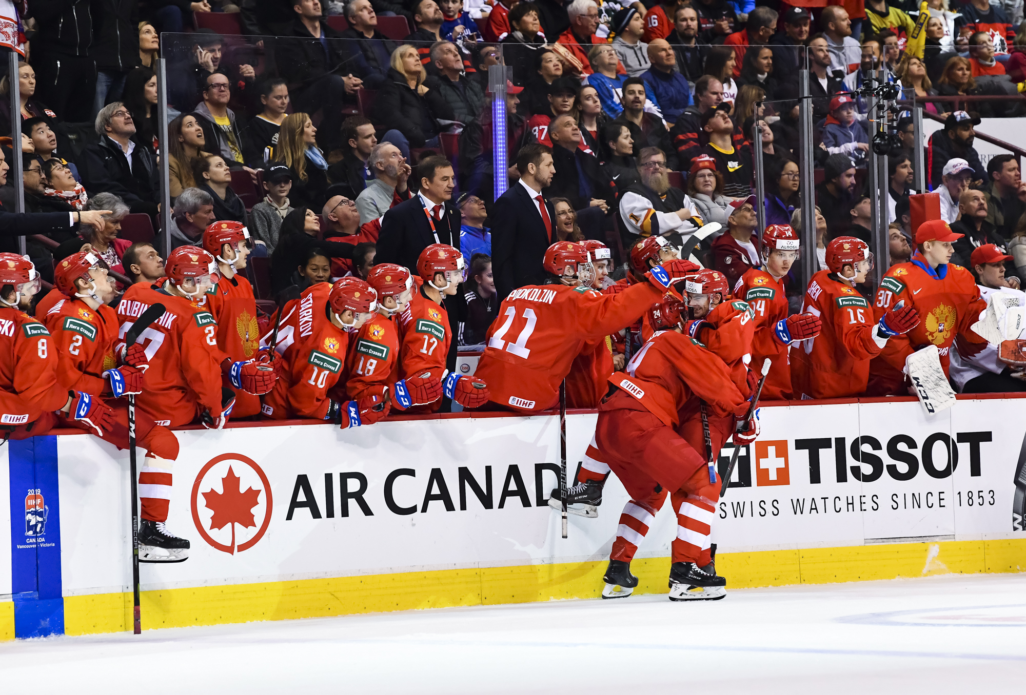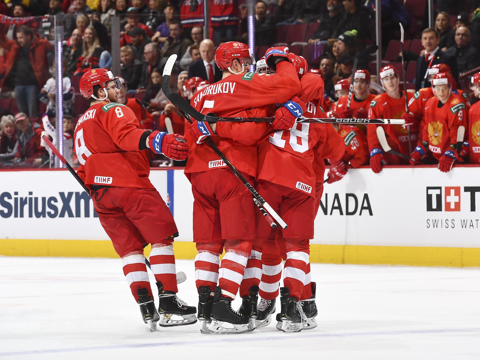 The red-and-white, predominantly Canadian fans urged the underdogs on with chants of "Let's go Switzerland!", plus "Defence!" during a mid-game Russian power play.