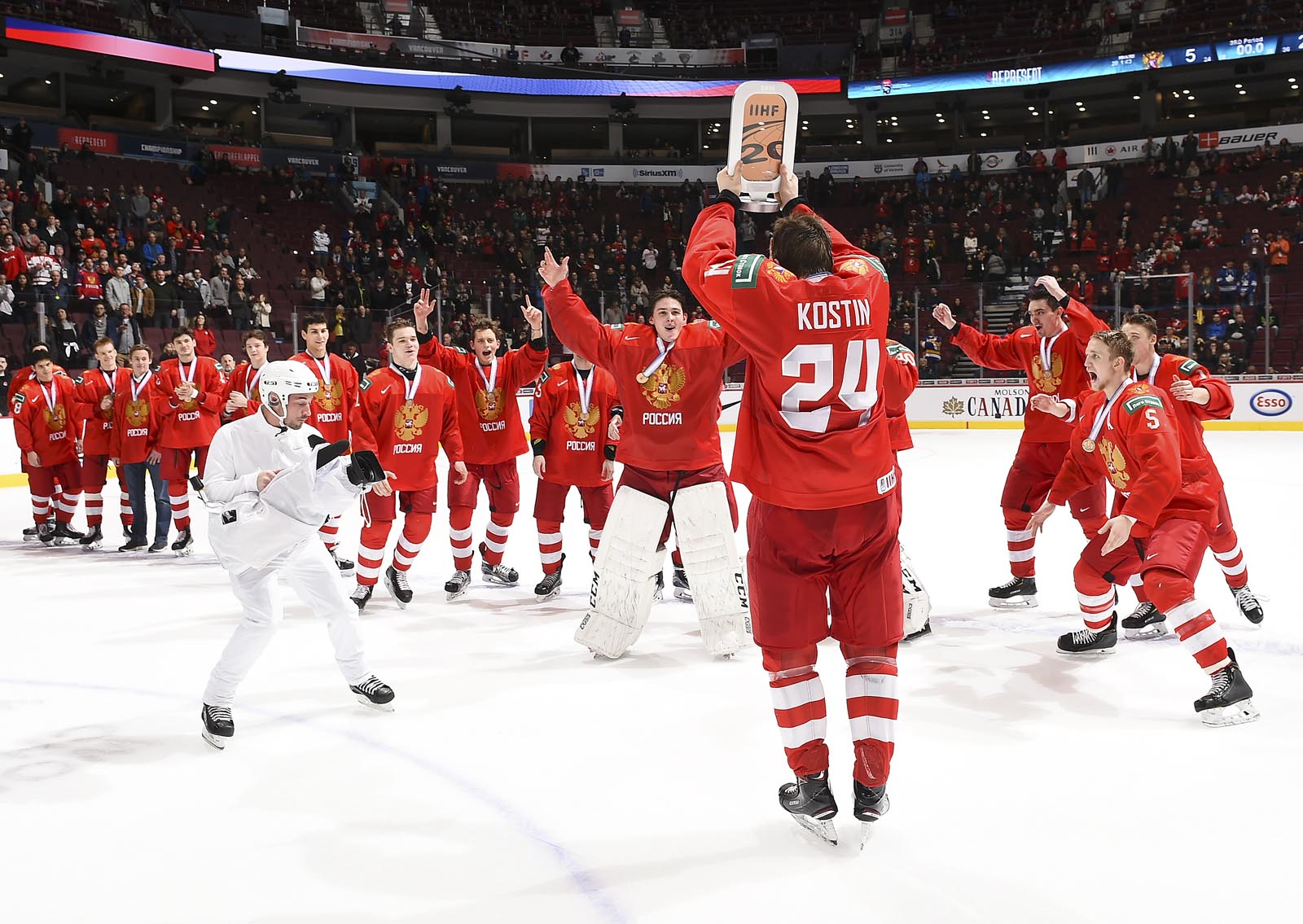 Kostin, who issued an apology on social media for behaving disrespectfully after the semi-final loss to the U.S., tallied his third goal of the tournament from the slot to put his team up 3-1 at 12:53. The 19-year-old celebrated by plugging his ears.
