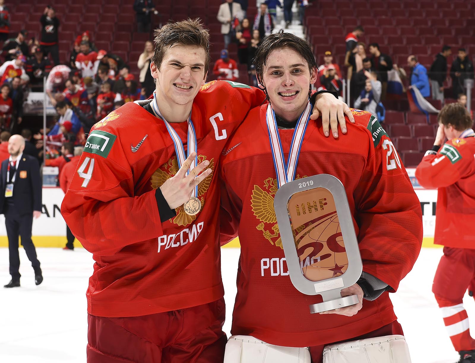"It feels pretty good," said Samorukov. "You win your last game, right? So it feels like gold. We can't find the words for it. You're family when you meet for two weeks, three weeks. It's unbelievable just to see guys and all this stuff. It's pretty special."