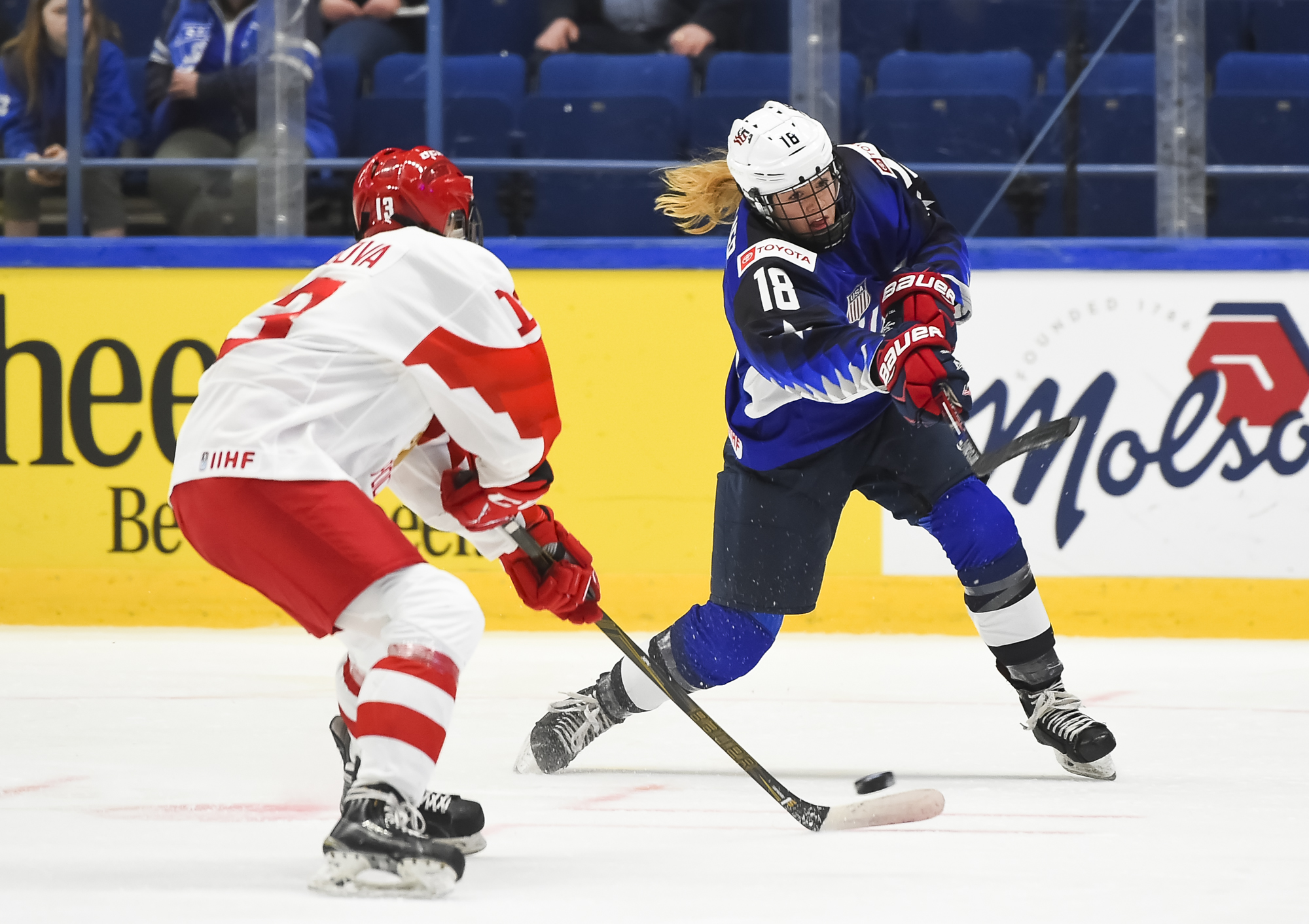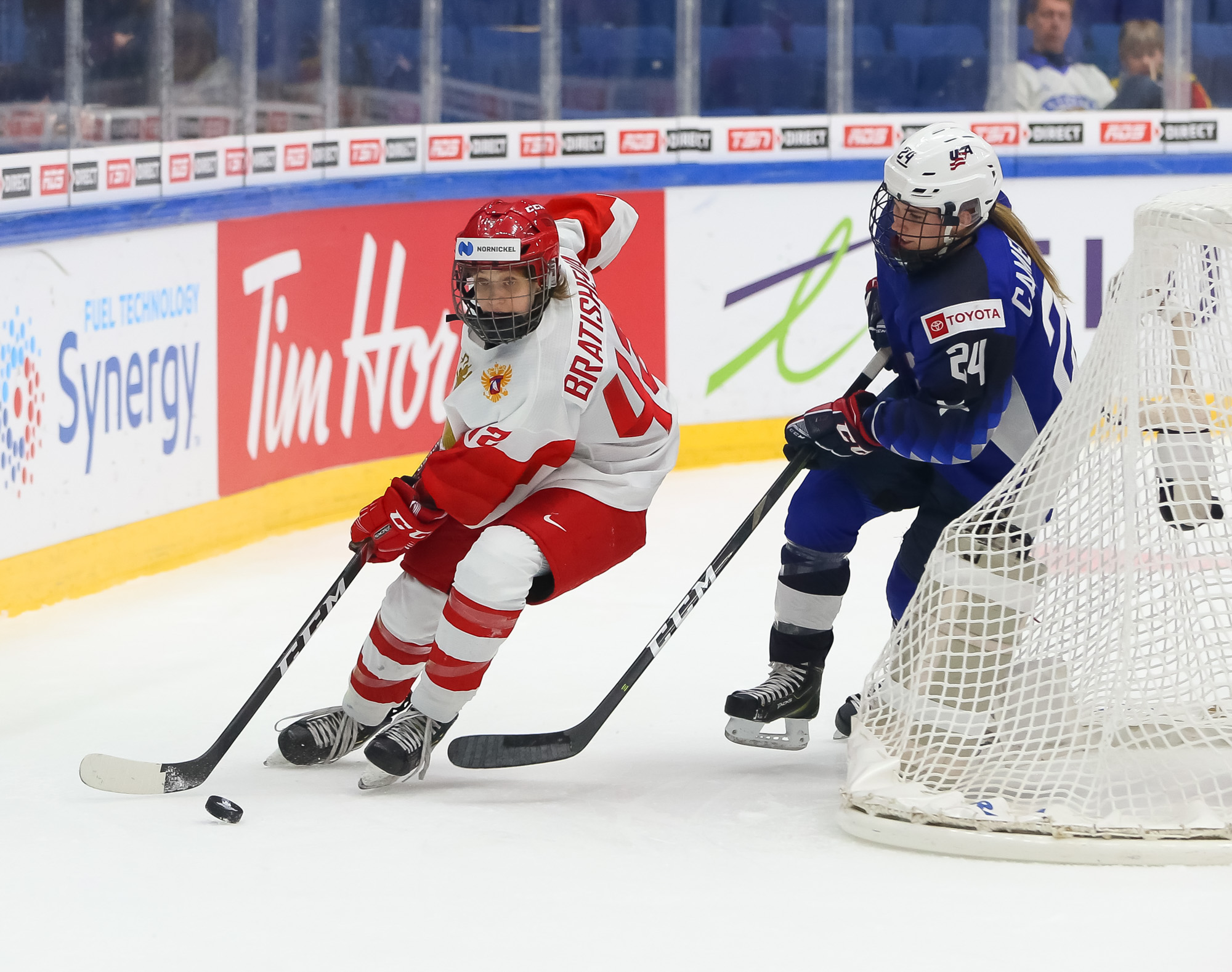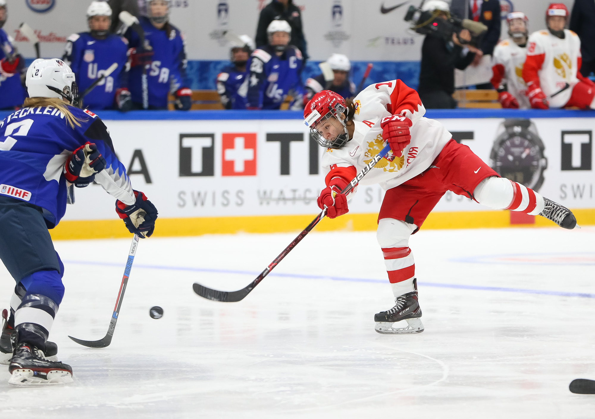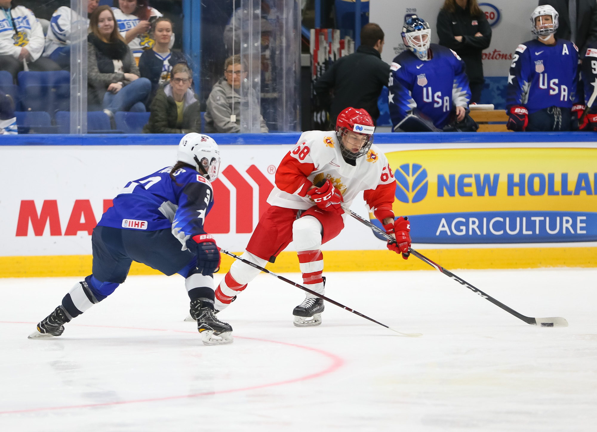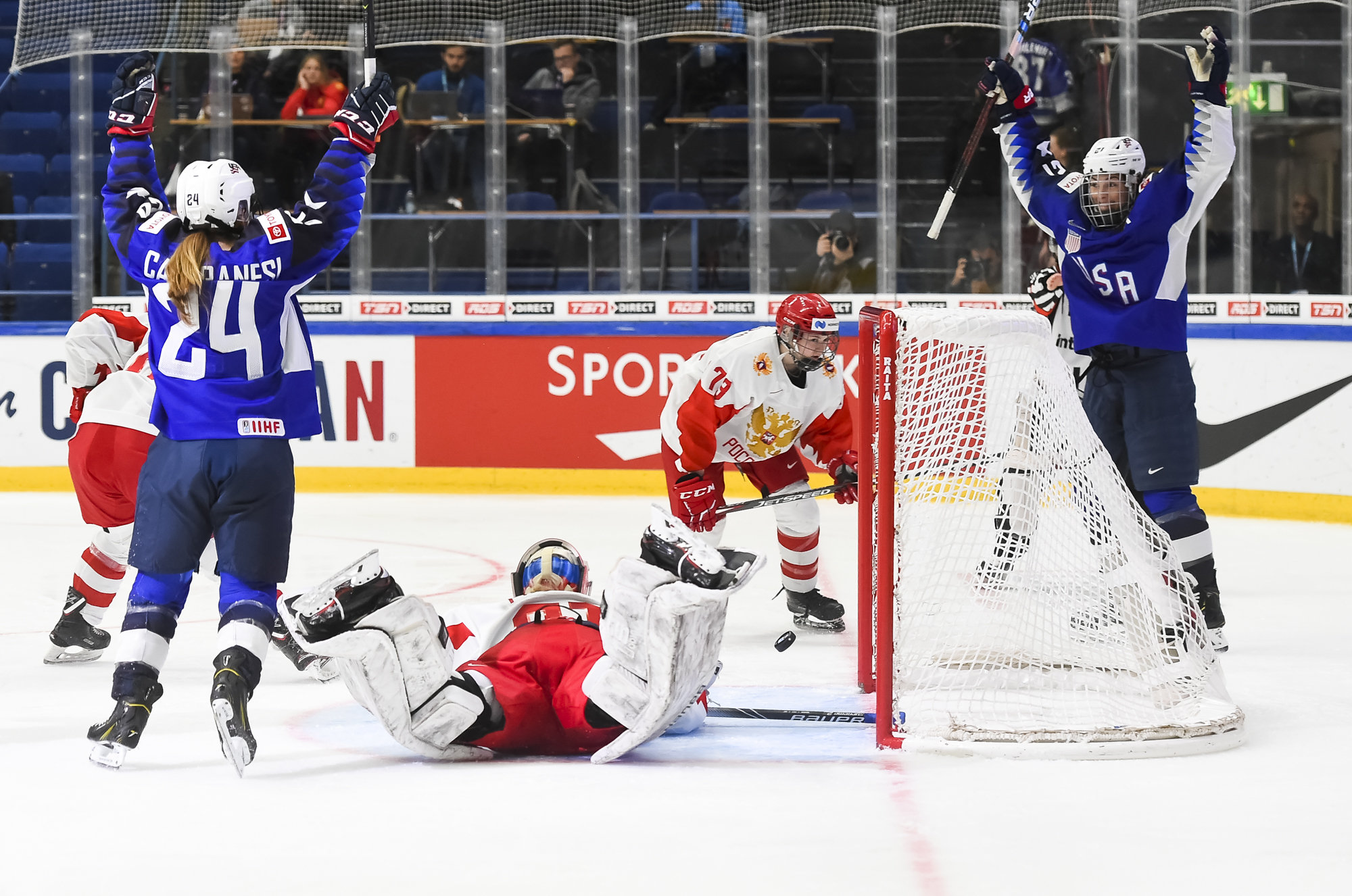 In the semi-final, the U.S., which has won seven of the last eight Women's Worlds, outshot the Russians 49-11, and the result was never in doubt. The porous Russian defence was overwhelmed.